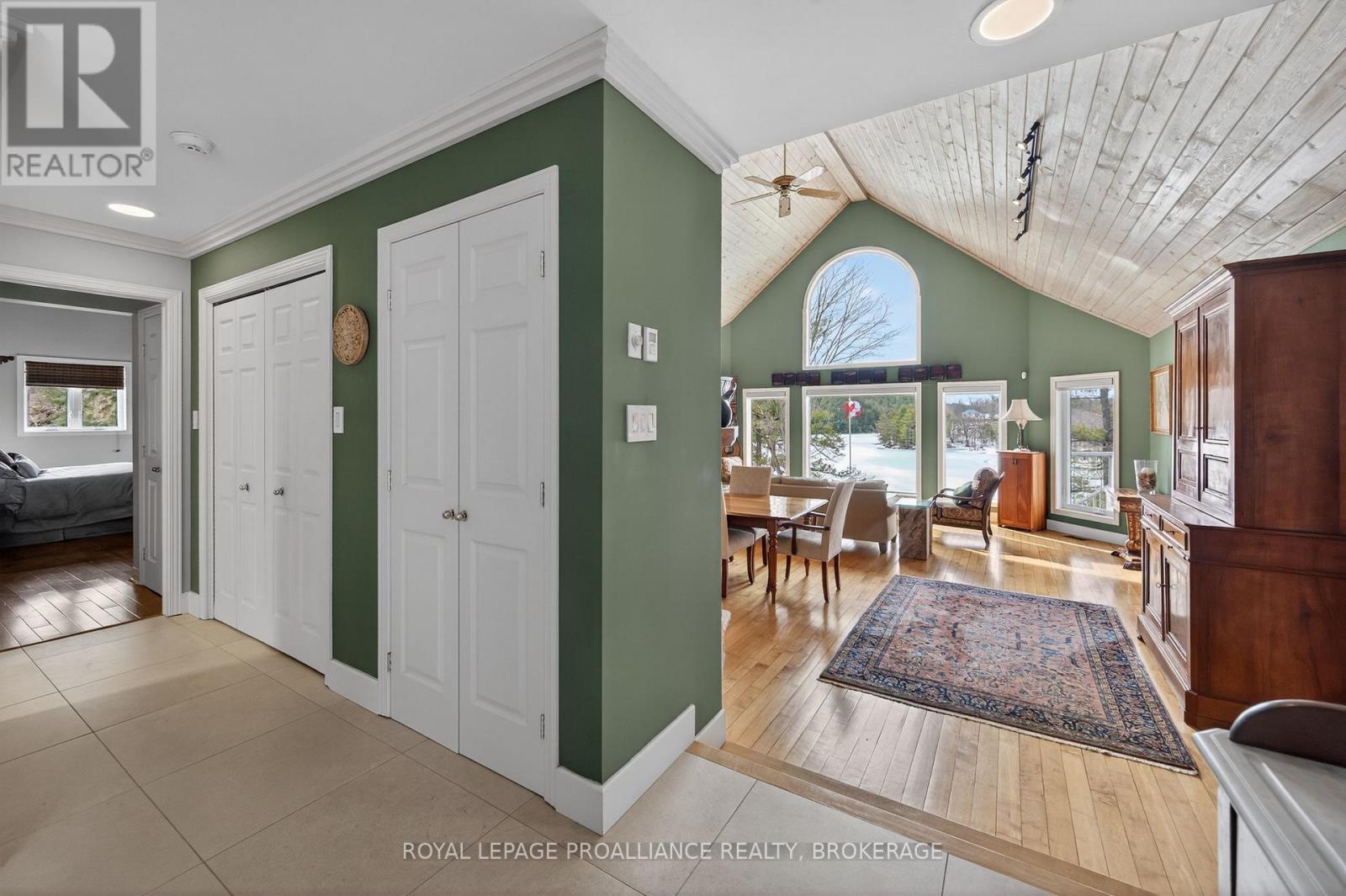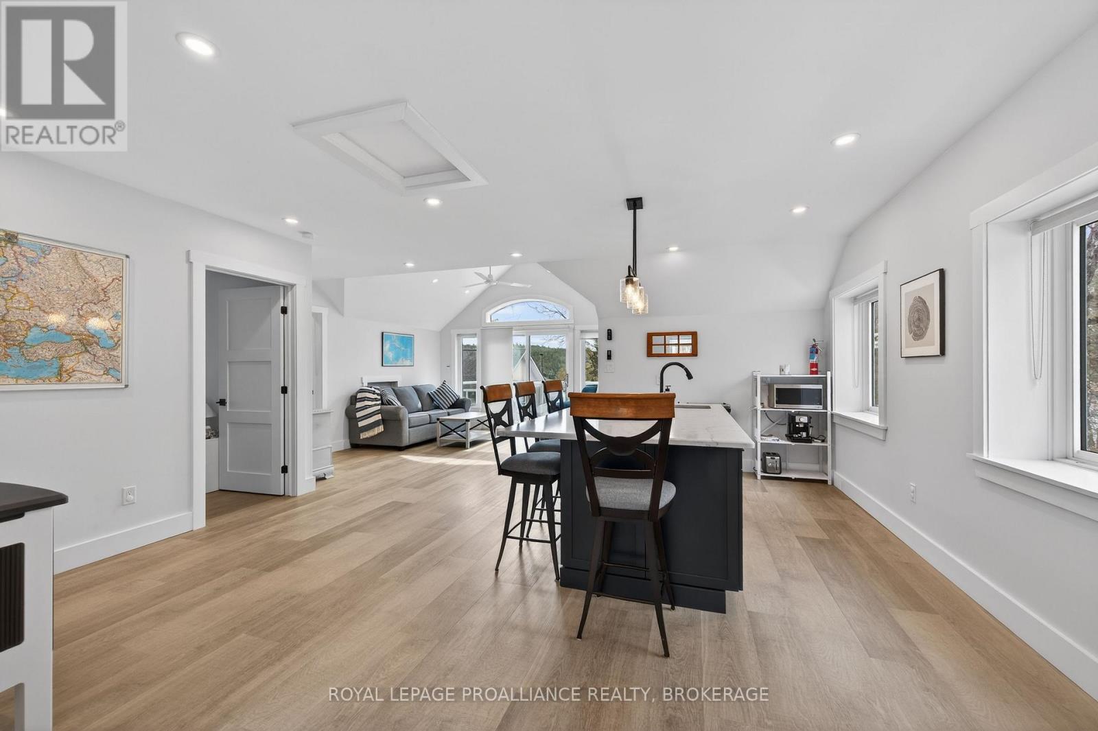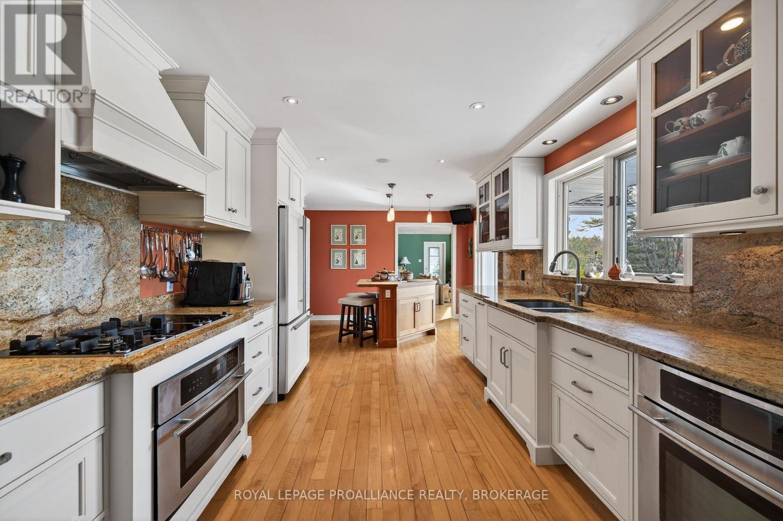 164A Deans Island Road offers a rare combination of expansive acreage, exceptional waterfront, and beautifully updated living spaces on the coveted Whitefish Lake-part of the Rideau Waterway. With approximately 500 ft of shoreline on the quiet channel leading into Morton Bay, this property delivers outstanding swimming, boating, and fishing, along with direct access to one of the region's most scenic stretches of the UNESCO designated Rideau system. Panoramic views of the lake and Rock Dunder create a breathtaking backdrop in every season. The main residence features vaulted ceilings and offers almost 3,000 sqft of well designed living space, featuring 4 bedrooms and 3.5 baths. The spacious primary suite offers the luxurious style ensuite you've been hoping for, with serene views and generous storage. A three season screened porch extends your living space outdoors, perfect for morning coffee or evening gatherings overlooking the water. A separate guest suite above the garage with approximately 1,000 sqft of living space features 1 bedroom and 1 full bath-ideal for extended family, visitors, or private workspace. The property includes both a 2 car attached garage and a second detached 2 car garage, plus a dedicated woodshed for year round convenience. Set on over 14 acres, the grounds are beautifully landscaped with stone features, rock gardens, and a charming herb garden. Outdoor living is enhanced by a striking stone fireplace, multiple seating areas, and natural pathways that lead toward the shoreline. Over the past decade, the owners have invested in a thoughtful series of upgrades that elevate both the home and the property-enhancing comfort, efficiency, and year round enjoyment while preserving the natural beauty and timeless character of this remarkable lakeside retreat. (id:64974)
