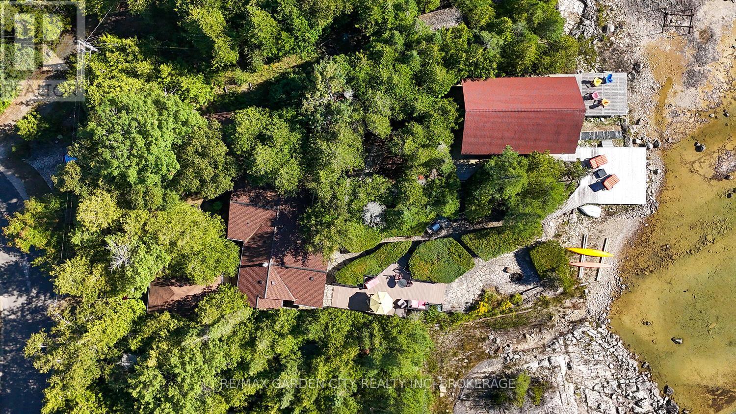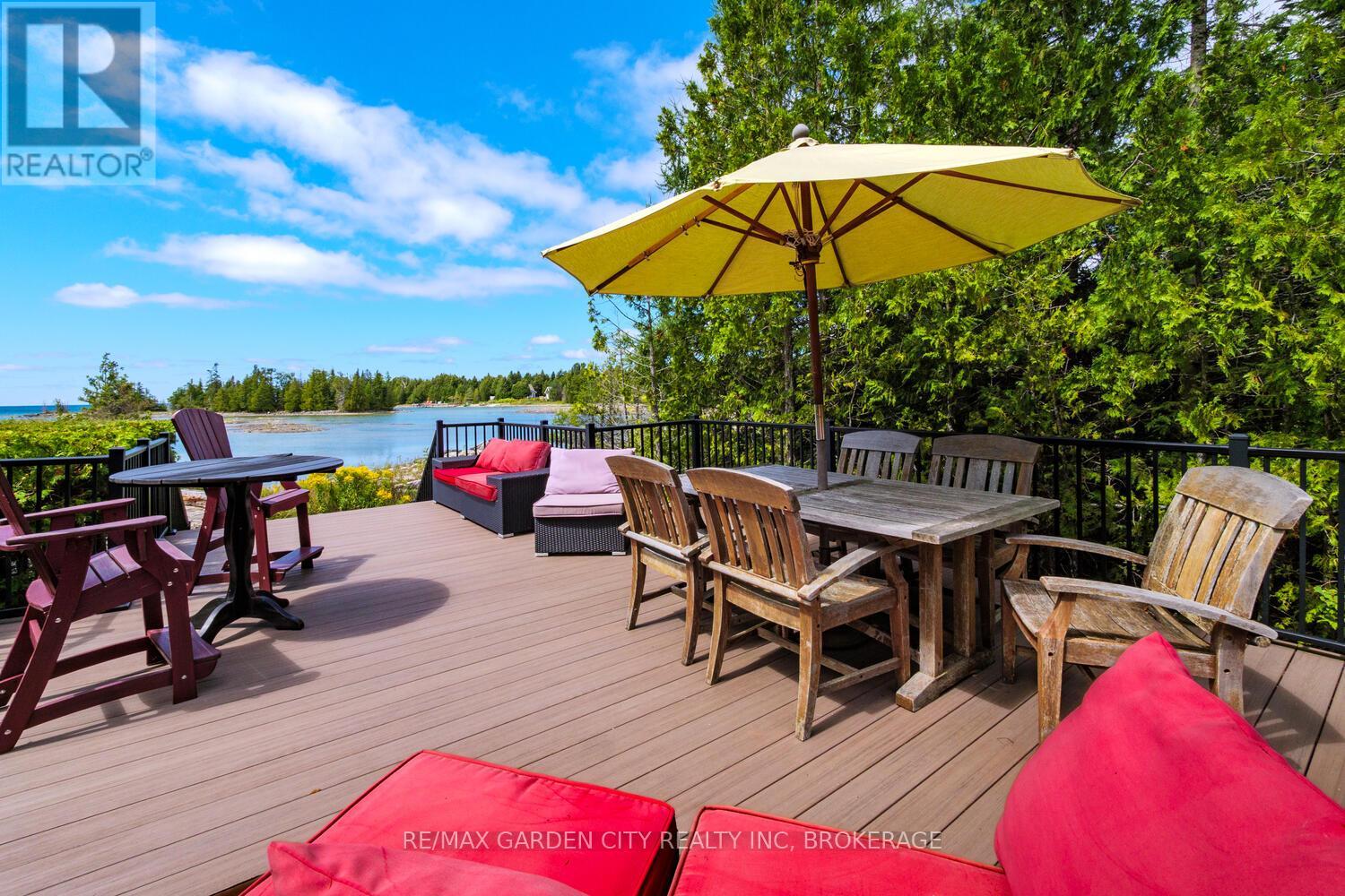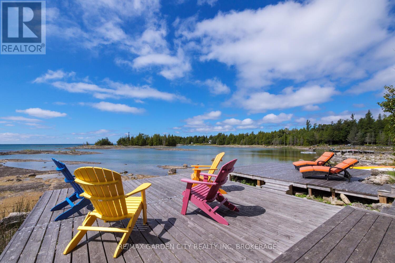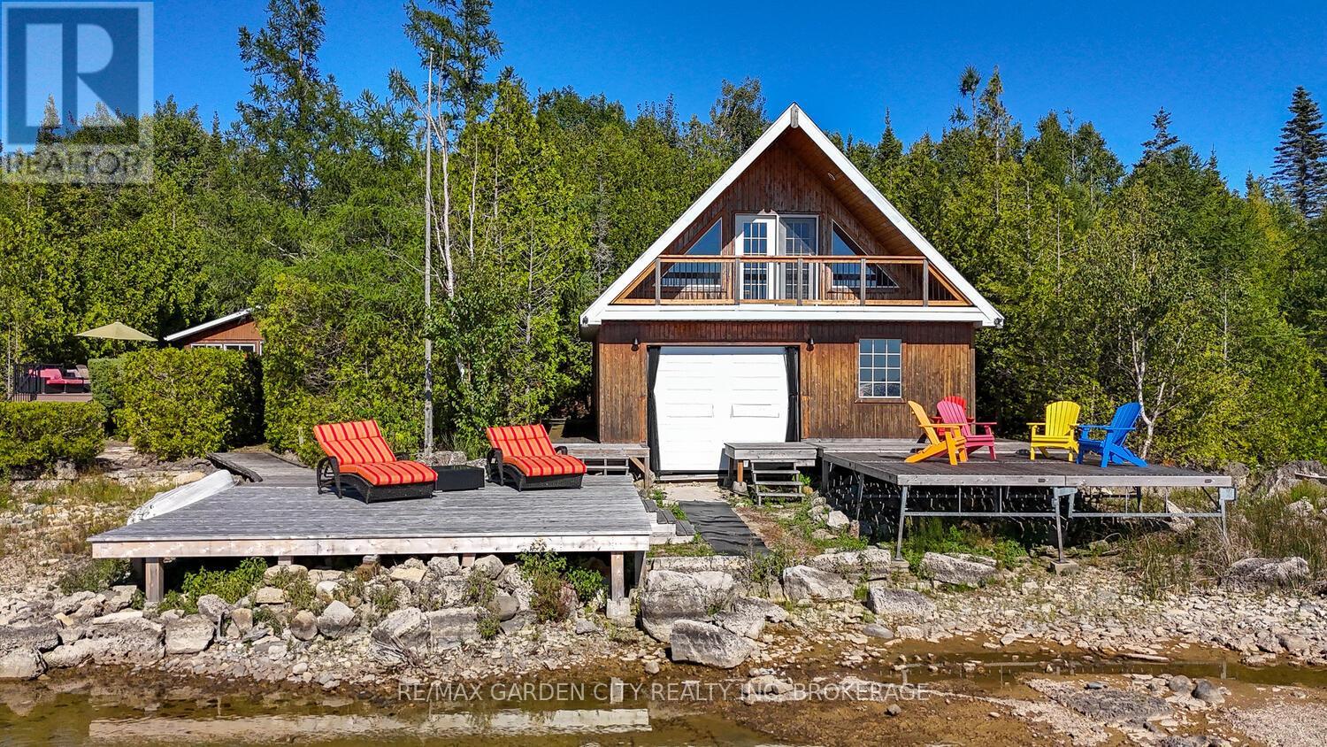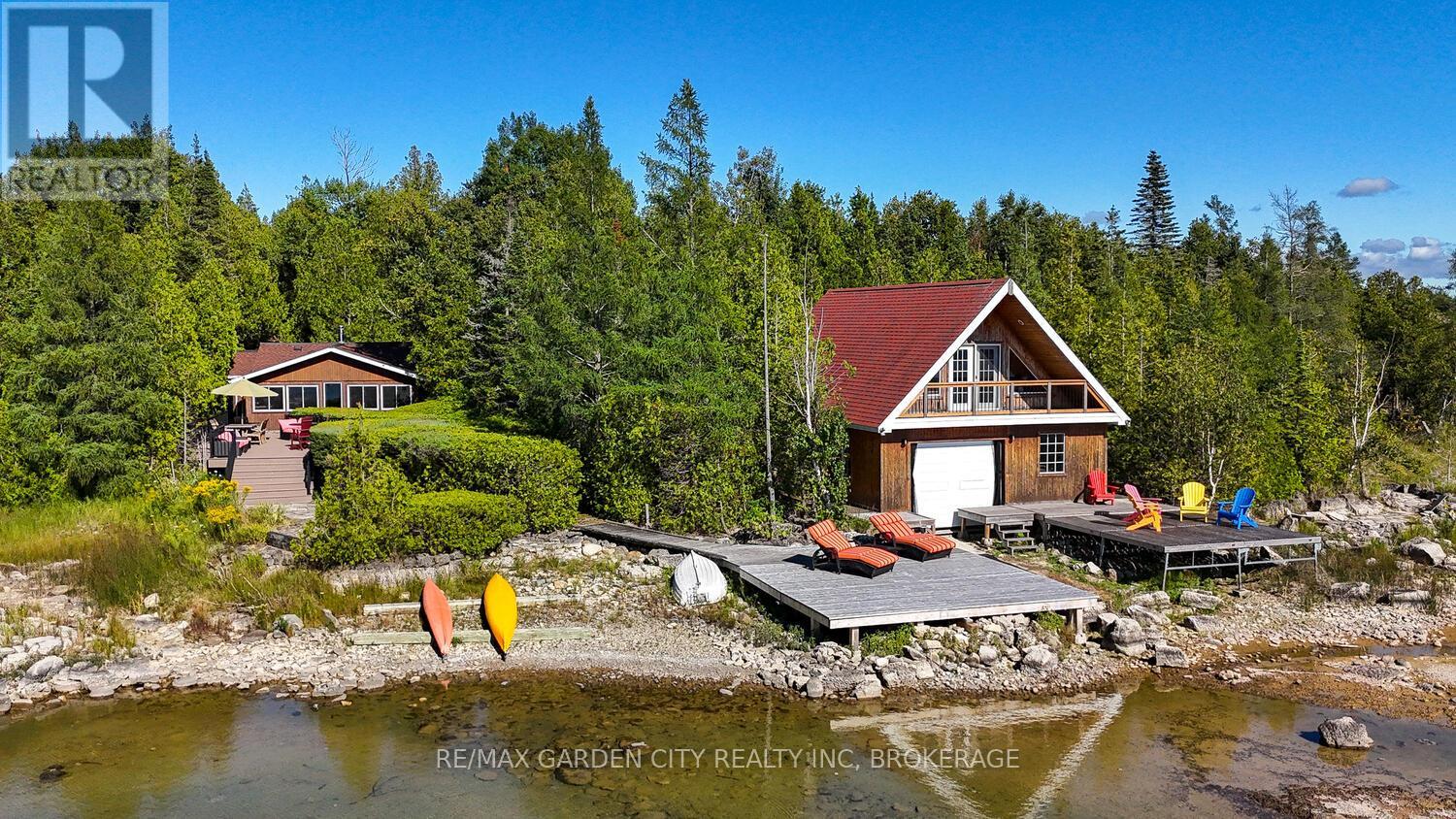 A Rare Waterfront Gem on Lake Huron! Don't miss this exceptional opportunity to own a four-season home or cottage on the pristine shores of Lake Huron. With 170 feet of gradual shoreline, this beautifully maintained property offers the perfect setting for unforgettable lakeside living. The main residence, 1179 sq. ft. of thoughtfully designed space, features one-level living with 3 bedrooms and a 4-piece bath. An open concept living and dining area is filled with natural light, showcasing picturesque lake views and a cozy woodstove. The modern kitchen includes stone countertops, under-cabinet lighting, and convenient built-in laundry. This turn-key retreat also includes a dry boathouse, detached garage, and charming guest accommodations. The boathouse is a perfect place to unwind, relax, or play games - rain or shine. The upper-level suite offers panoramic lake views from a private balcony, ideal for guests or extended family. The additional bunkies with hydro provide extra comfort and versatility. Outdoor living is at its finest here! Entertain with ease using the outdoor grill station, or relax along stone pathways that lead through landscaped grounds, designed for privacy and beauty. Swim, kayak, or simply take in the stunning sunsets over the lake - the clean, rocky shoreline is perfect for it all. Located just a short drive from Tobermorys shops, restaurants, and recreational attractions, this property offers a unique blend of serenity and convenience. Whether you're seeking a peaceful getaway or a place to host family and friends, this Lake Huron retreat is ready to welcome you. Are you ready to explore? (id:64974)