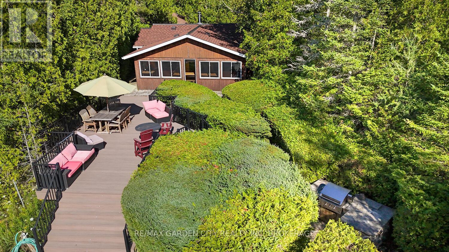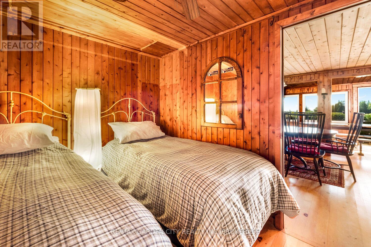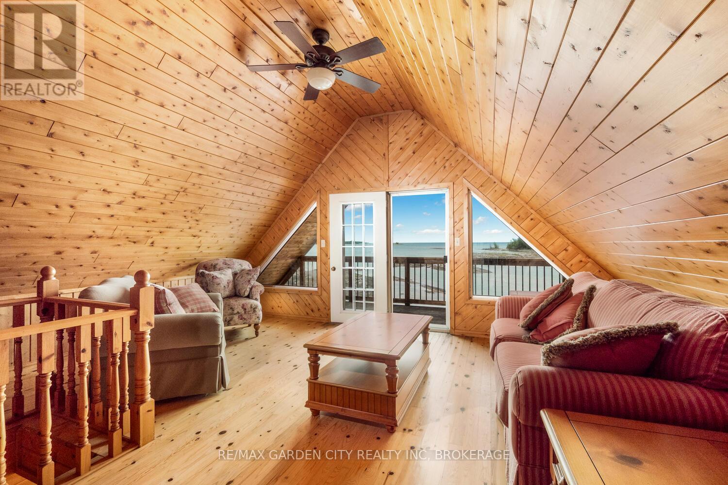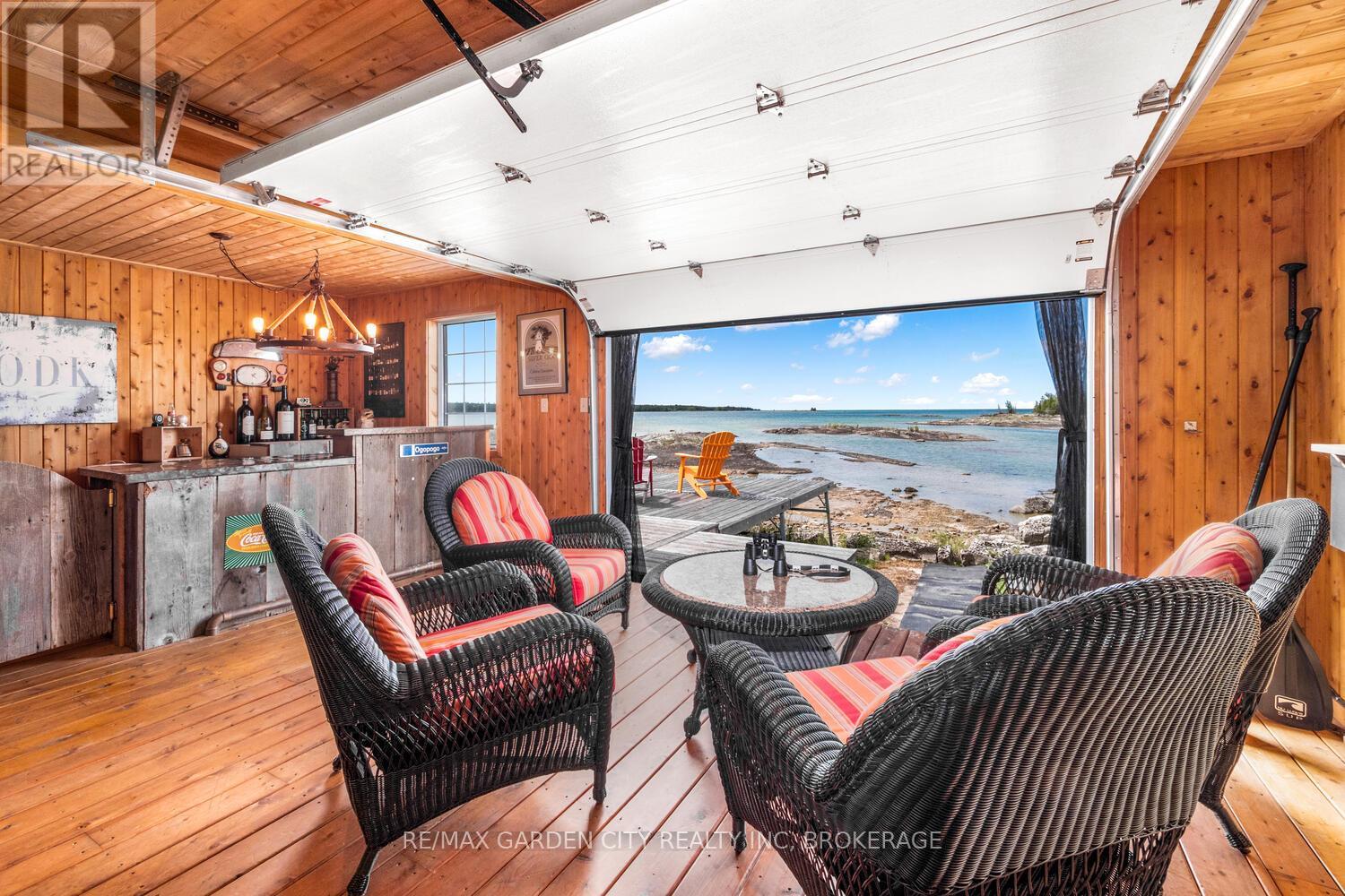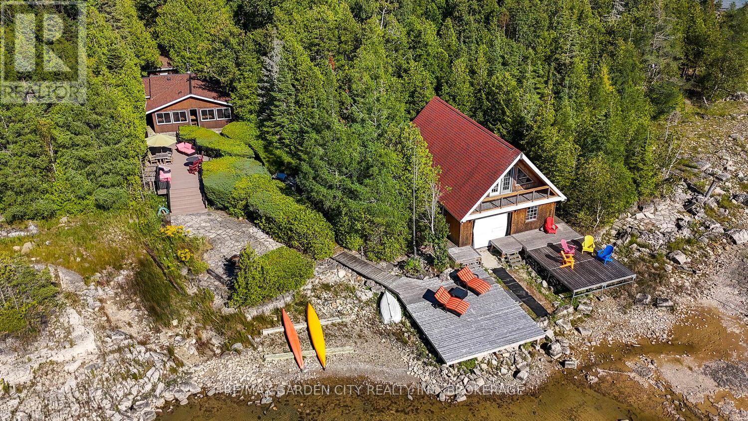 A Rare Waterfront Gem on Lake Huron! Don't miss this exceptional opportunity to own a four-season home or cottage on the pristine shores of Lake Huron. With 170 feet of gradual shoreline, this beautifully maintained property offers the perfect setting for unforgettable lakeside living. The main residence, 1179 sq. ft. of thoughtfully designed space, features one-level living with 3 bedrooms and a 4-piece bath. An open concept living and dining area is filled with natural light, showcasing picturesque lake views and a cozy woodstove. The modern kitchen includes stone countertops, under-cabinet lighting, and convenient built-in laundry. This turn-key retreat also includes a dry boathouse, detached garage, and charming guest accommodations. The boathouse is a perfect place to unwind, relax, or play games - rain or shine. The upper-level suite offers panoramic lake views from a private balcony, ideal for guests or extended family. The additional bunkies with hydro provide extra comfort and versatility. Outdoor living is at its finest here! Entertain with ease using the outdoor grill station, or relax along stone pathways that lead through landscaped grounds, designed for privacy and beauty. Swim, kayak, or simply take in the stunning sunsets over the lake - the clean, rocky shoreline is perfect for it all. Located just a short drive from Tobermorys shops, restaurants, and recreational attractions, this property offers a unique blend of serenity and convenience. Whether you're seeking a peaceful getaway or a place to host family and friends, this Lake Huron retreat is ready to welcome you. Are you ready to explore? (id:64974)