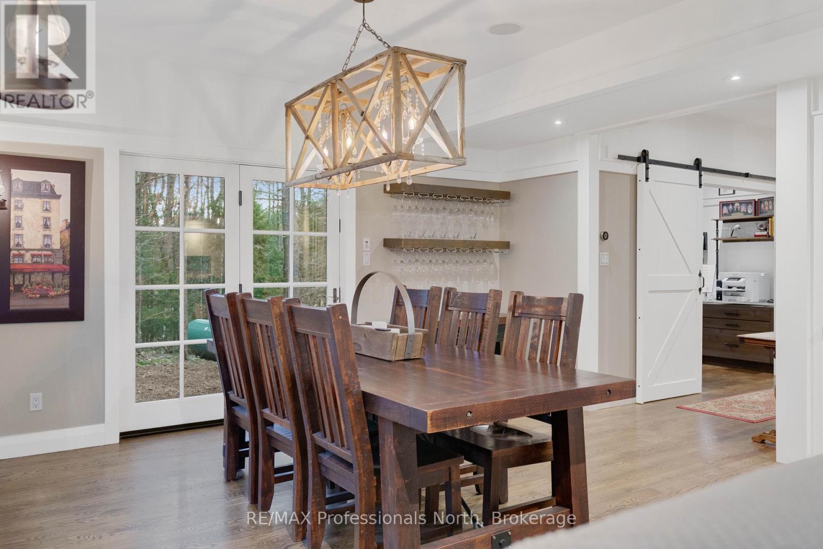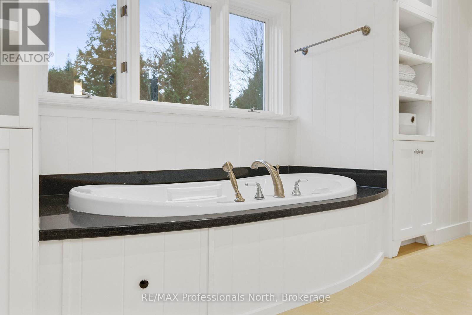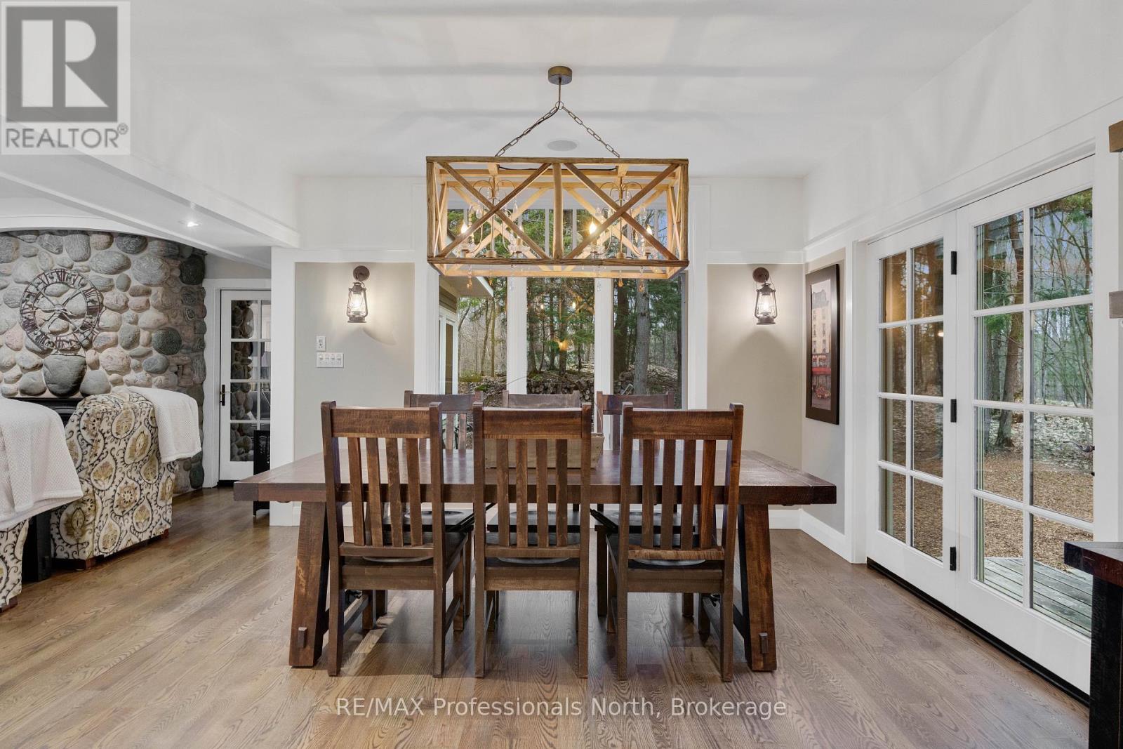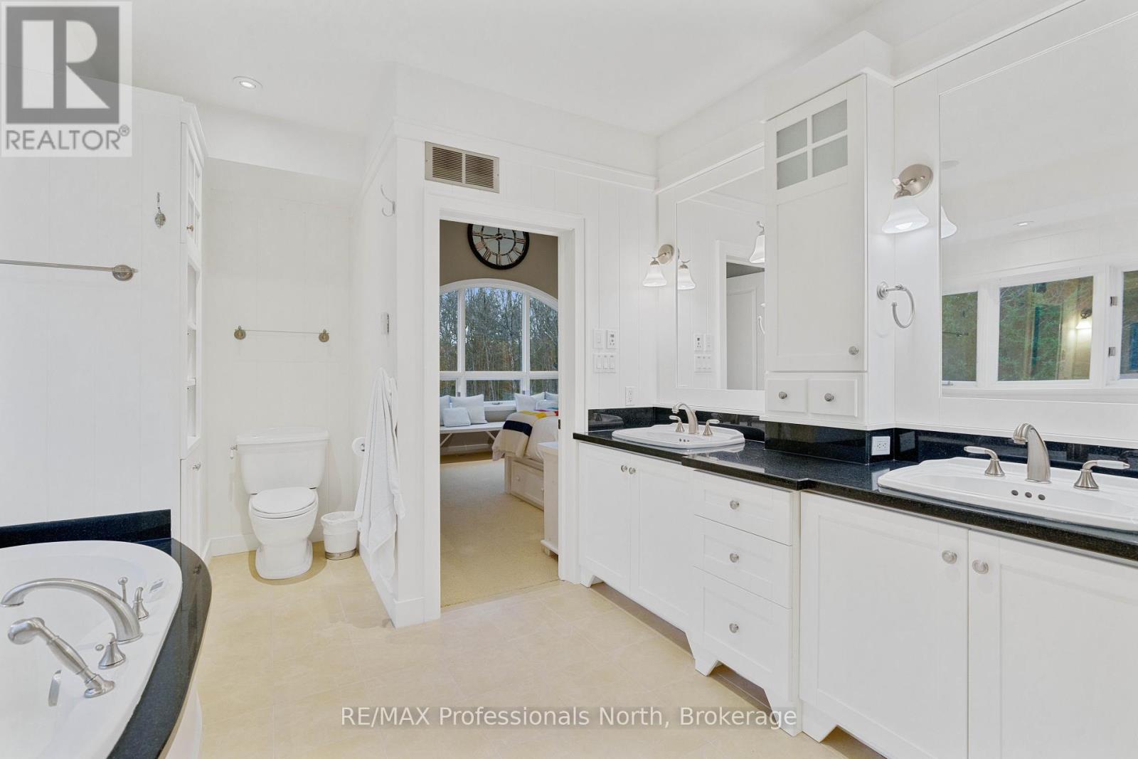 Welcome to an extraordinary private estate in the heart of Muskoka, where refined design meets the natural beauty of the surrounding landscape. Offering over 7000 square feet of thoughtfully crafted living space, this impressive property includes a 1000 square foot heated garage with floor drains and a finished loft above, along with three fully finished levels designed for elevated everyday living. At the centre of the home is a custom kitchen with premium appliances and exceptional attention to detail, seamlessly opening into the main living area where a stunning custom stone wood burning fireplace creates a striking focal point. Just beyond, the Muskoka room offers a peaceful escape surrounded by windows that draw the outdoors in, complete with a wood burning fireplace for year round comfort. A dedicated main floor office provides the perfect balance of productivity and connection. The second level hosts three spacious bedrooms, each with vaulted ceilings, walk in closets, and private ensuites with heated floors, while a fourth bedroom with its own bathroom is located on the lower level. The fully soundproofed lower level is designed for entertainment, featuring an eight seat tiered theatre, wet bar, and versatile bonus space ideal for a studio, gym, or playroom. Set on 16.74 acres of private land, the property features approximately half a kilometre of professionally built trails, three serene ponds for paddling or skating, and an invisible dog fence covering five acres. An automatic Kohler generator powers the entire home for added peace of mind. Located along Muskoka Beach Road, one of the region's most iconic drives known for its stunning fall colours, this property offers a rare blend of privacy and convenience just minutes to Bracebridge and Gravenhurst and close to several renowned golf courses. Floor plans and feature sheet available. (id:64974)