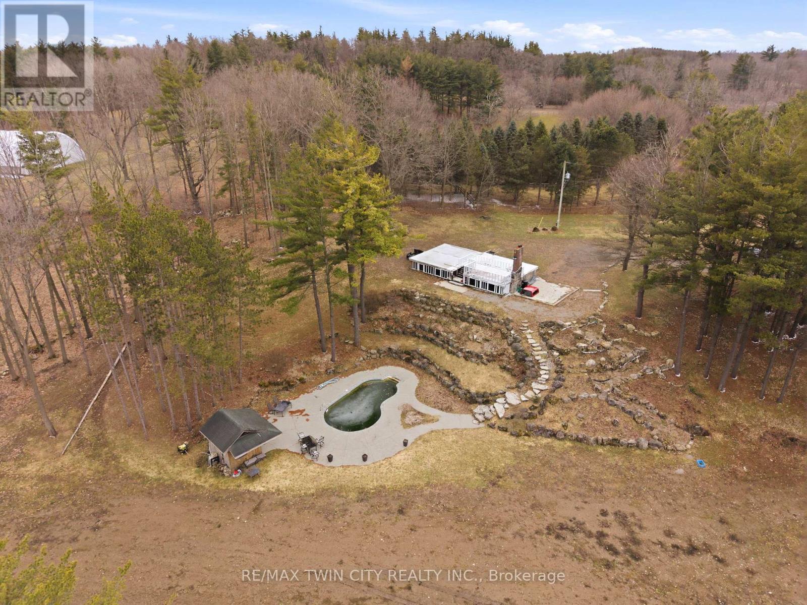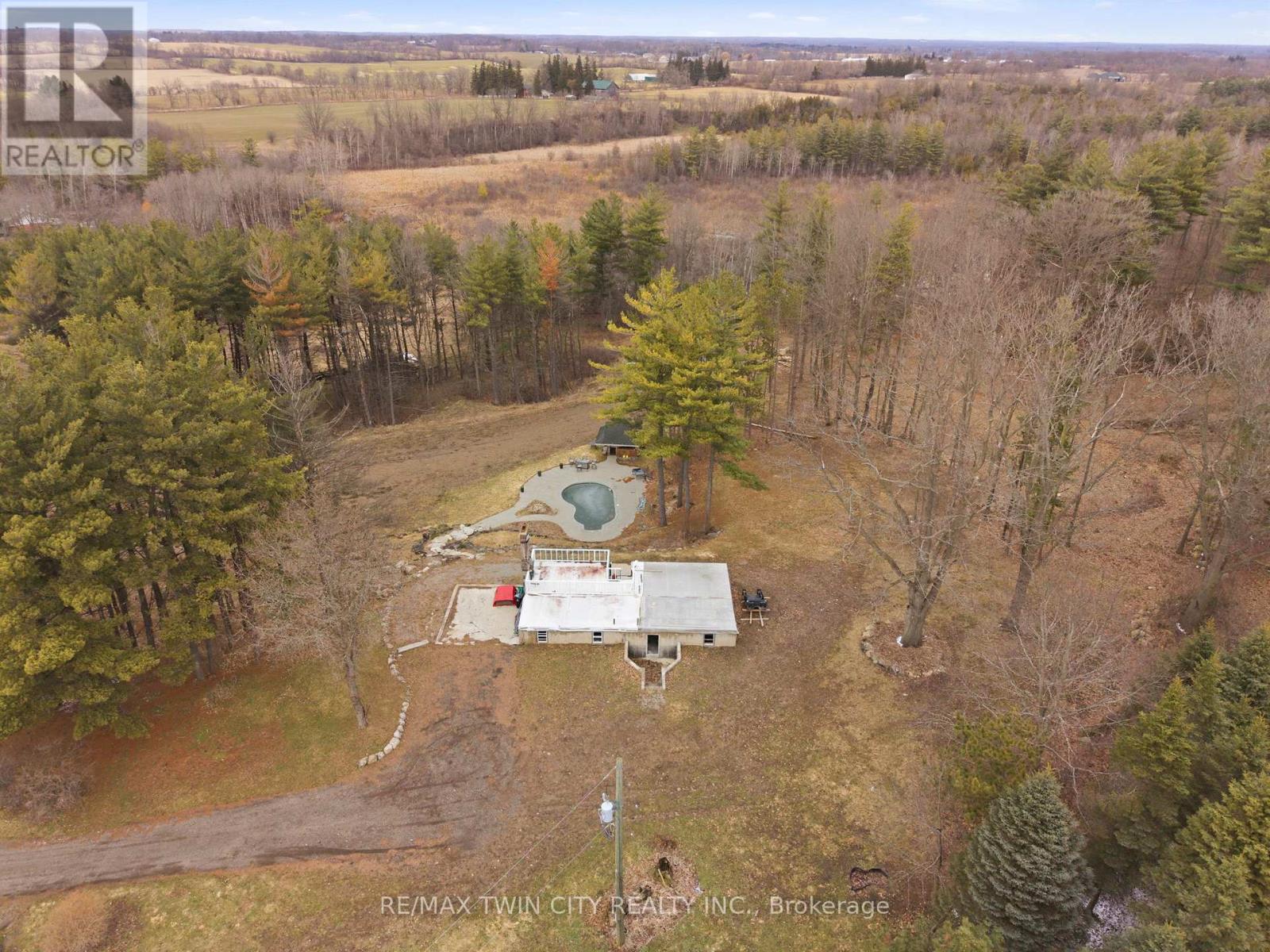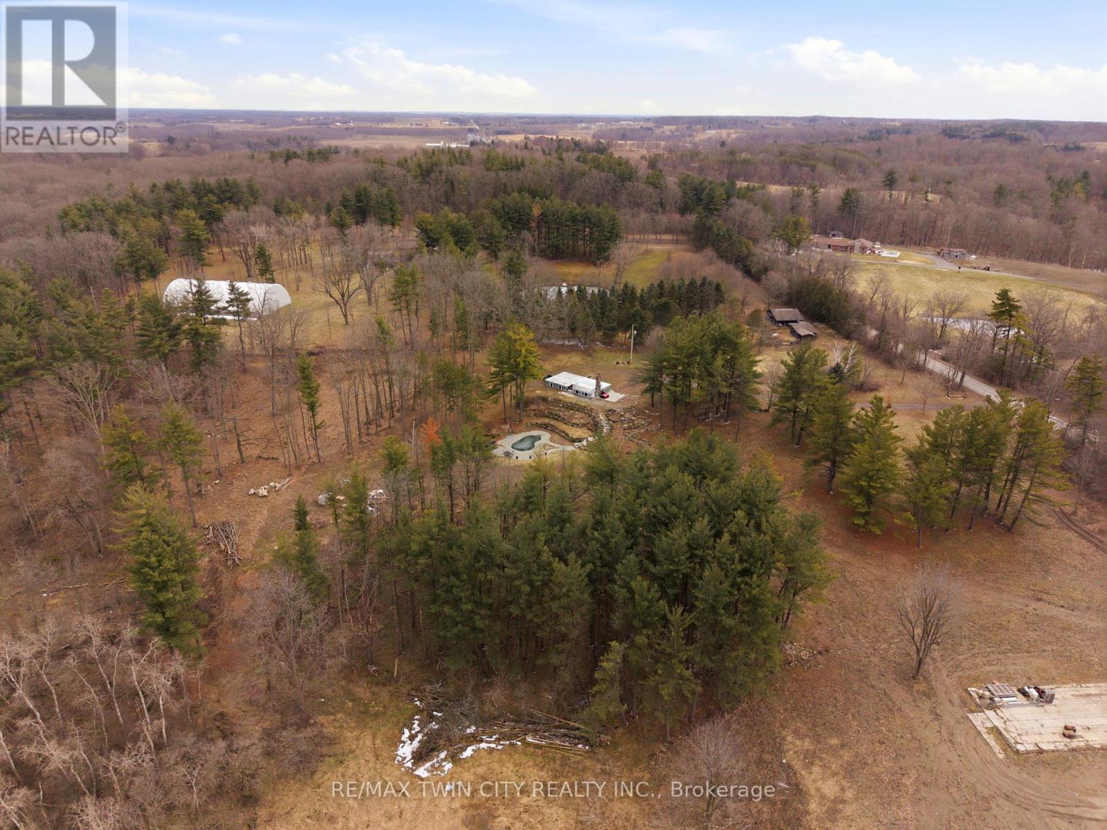 Build your future on this remarkable 25-acre property, ideally situated in a scenic rural setting just minutes from Cambridge. Set at 1657 Cheese Factory Road, this picturesque parcel offers an inspiring natural landscape of rolling hills, mature trees, wooded areas, trails, wetlands, and open space, creating an exceptional backdrop for a wide range of possibilities. A number of existing improvements already in place make it easier to bring your vision to life. At the height of the property sits the foundation of the former home, positioned to take advantage of the elevated setting and surrounding views. Below, a terraced armour stone garden leads to the in-ground pool and pool shed, adding both character and functionality to the landscape. The property also features graded areas, thoughtfully placed mature trees, three separate driveways, natural gas service, two owned hydro poles, an existing well complete with a Grundfos SQE pump and control module, and an existing septic system. Adding even more versatility is the impressive 34' x 155' barn, accompanied by a matching 34' x 155' concrete slab and serviced with gas and hydro. With its own separate civic address, the barn is currently being renovated into three substantial shop spaces ranging from approximately 1,250 to 1,600 square feet, along with an additional 680 square foot storage or utility area. This setup offers outstanding flexibility for hobby use, storage, workspace, or potential rental income. Don't miss out on your opportunity to create a truly special rural property that combines natural beauty, existing infrastructure, and exceptional flexibility just minutes from the city. (id:64974)