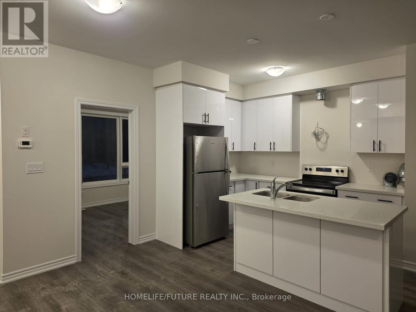 Brand New In Freehold Townhome by Fernbrook Homes Hygge Community 3+1 bed (Main floor).Enter the house through either the front, garage or backyard. Bright, open-concept main floor with ~9-foot ceilings and large windows for abundant natural light. Chef's kitchen with Upgraded quartz countertops, stainless steel appliances including self-cleaning range. Open concept Dine in Kitchen combined with living with Cozy Electric Fire place -Hardwood floor throughout bedrooms & hallway. Primary bedroom with two walk-in closets . Ensuite featuring a glass shower, and a tub. Plenty of sun light thru out the day. Extras: HRV system & high-efficiency gas furnace with humidifier. Future customizable Driveway & community landscaping to be completed per the builder's schedule Location & Lifestyle: Close to nature, parks, and the Scugog River Easy access to schools, shopping, hospitals, and major routes Perfect for families and professionals seeking a clean, modern home in a growing neighborhood. All appliances and blinds to be installed by the owner prior to move in (id:64974)