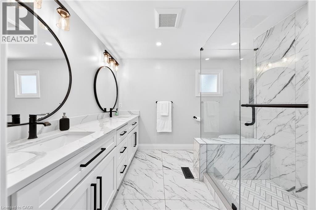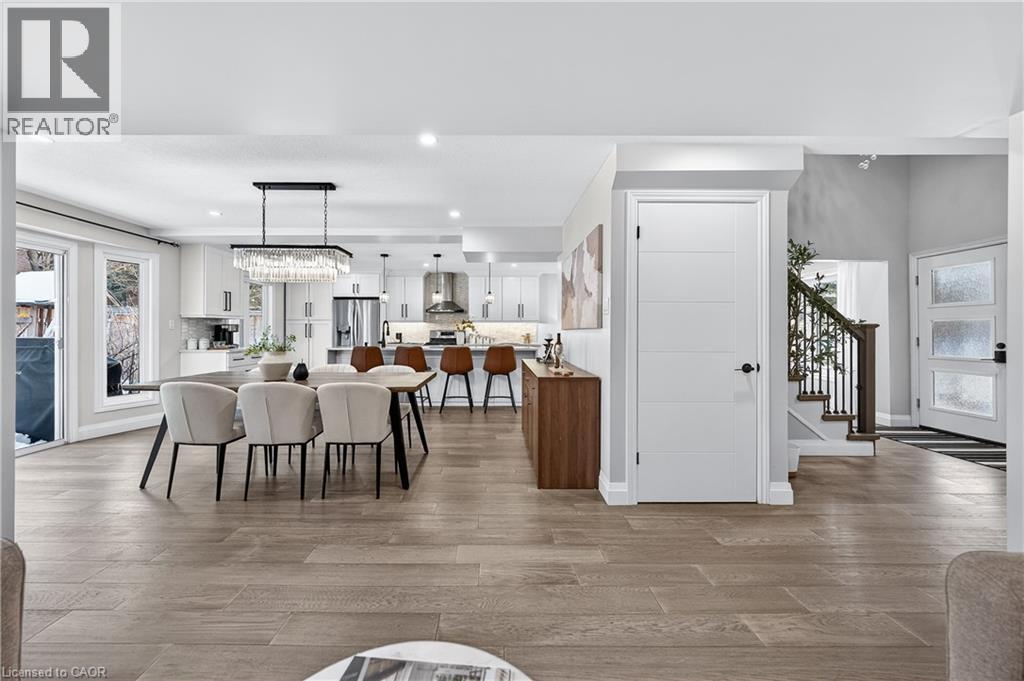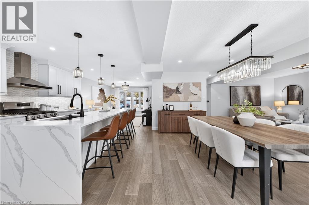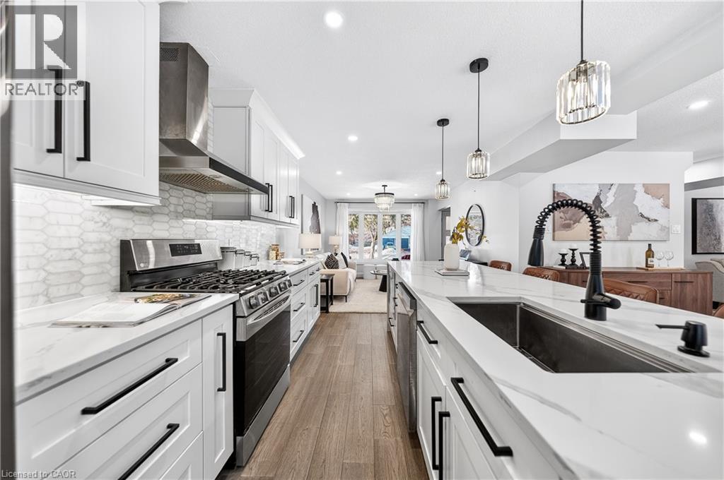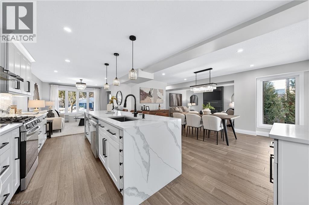 This is the Westvale home you’ve been waiting for. Stunning & fully transformed through $300,000+ in professional renovations (2022-engineered & permitted) & thoughtfully enhanced since, 166 Westvale Drive offers 3,300+ SF of refined, move-in ready living space in one of Waterloo’s most established & family-oriented neighbourhoods. Designed for modern family living, the bright open-concept main level balances sophistication & everyday function. A grand 2-storey foyer creates a strong first impression, while a formal living rm overlooking the mature streetscape adds elegant front-of-home presence. The heart of the home is a stunning chef’s kitchen featuring a dramatic 10' quartz waterfall island, dedicated coffee bar, marble backsplash, under-cabinet lighting & premium appliances, seamlessly connected to the integrated dining area & great rm with gas fireplace & dual backyard access. A spacious mudrm/laundry with garage/side-yard access & a 2-pc bath complete the main level. Upstairs offers 4 generous bedrms, including a spacious primary retreat with walk-in closet & spa-like 4-pc ensuite with dual sinks & tiled glass shower. A 4-pc updated main bath serves the additional bedrms, while a bonus upper-level family rm with vaulted ceilings adds flexibility for a 5th bedrm, office, gym, or playroom/teen lounge. The finished basement extends the home’s versatility with a lrg rec rm, kitchenette, office/den & full bath-ideal for multi-gen living/long-term flexibility. Beyond the cosmetic transformation, major systems were updated, including electrical (ESA certified), plumbing, ductwork, A/C, windows & doors. Set on a mature, tree-lined street with timeless curb appeal, covered front porch & private backyard with deck, this home blends executive presence & established neighbourhood charm. Prime location: walk to parks & schools, mins to shopping at The Beechwood Centre, The Boardwalk Shops & amenities, Costco, universities, Uptown Waterloo, & Westmount Golf & Country Club. (id:64974)