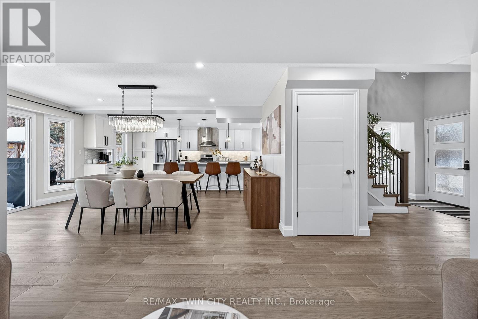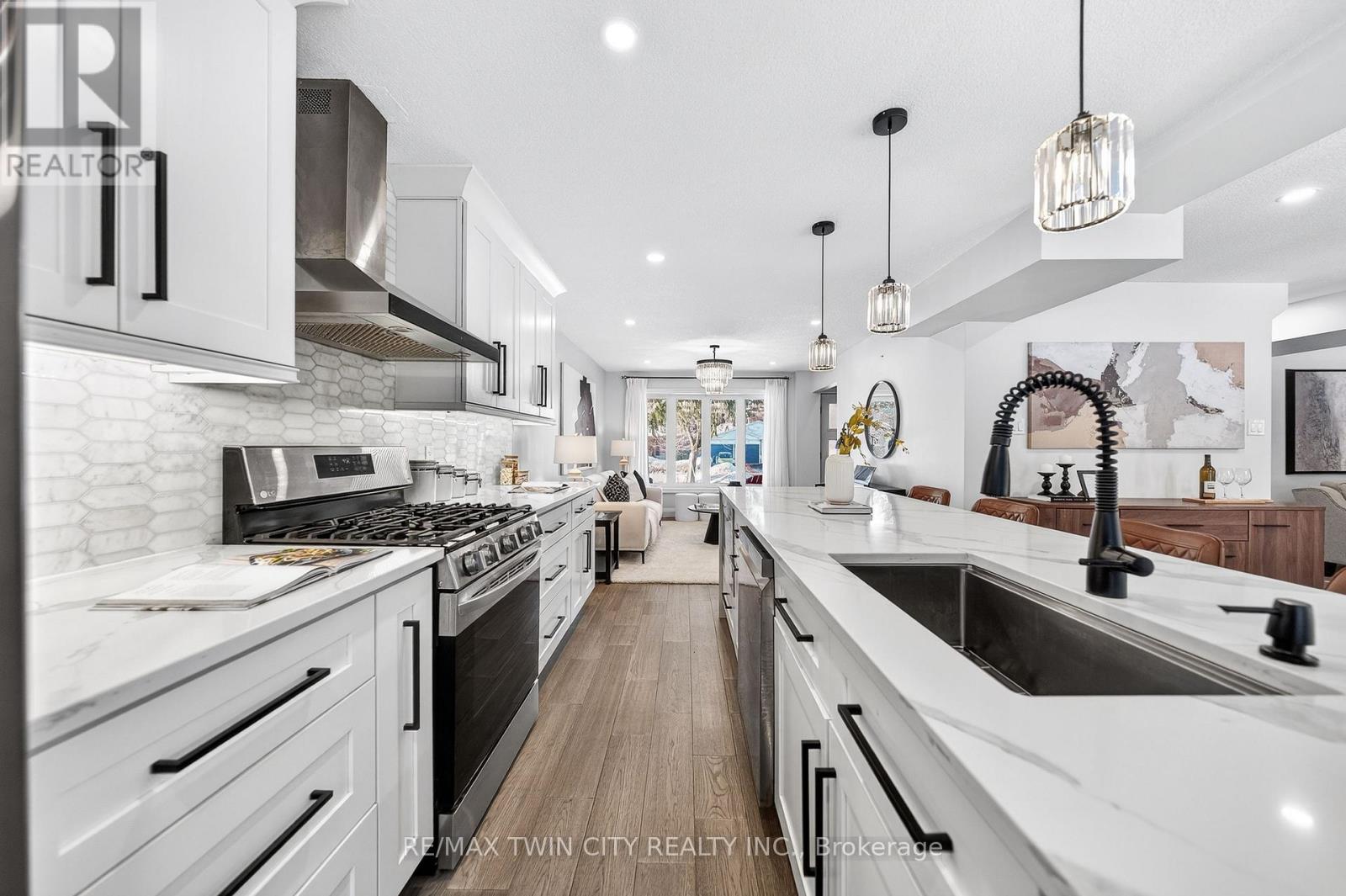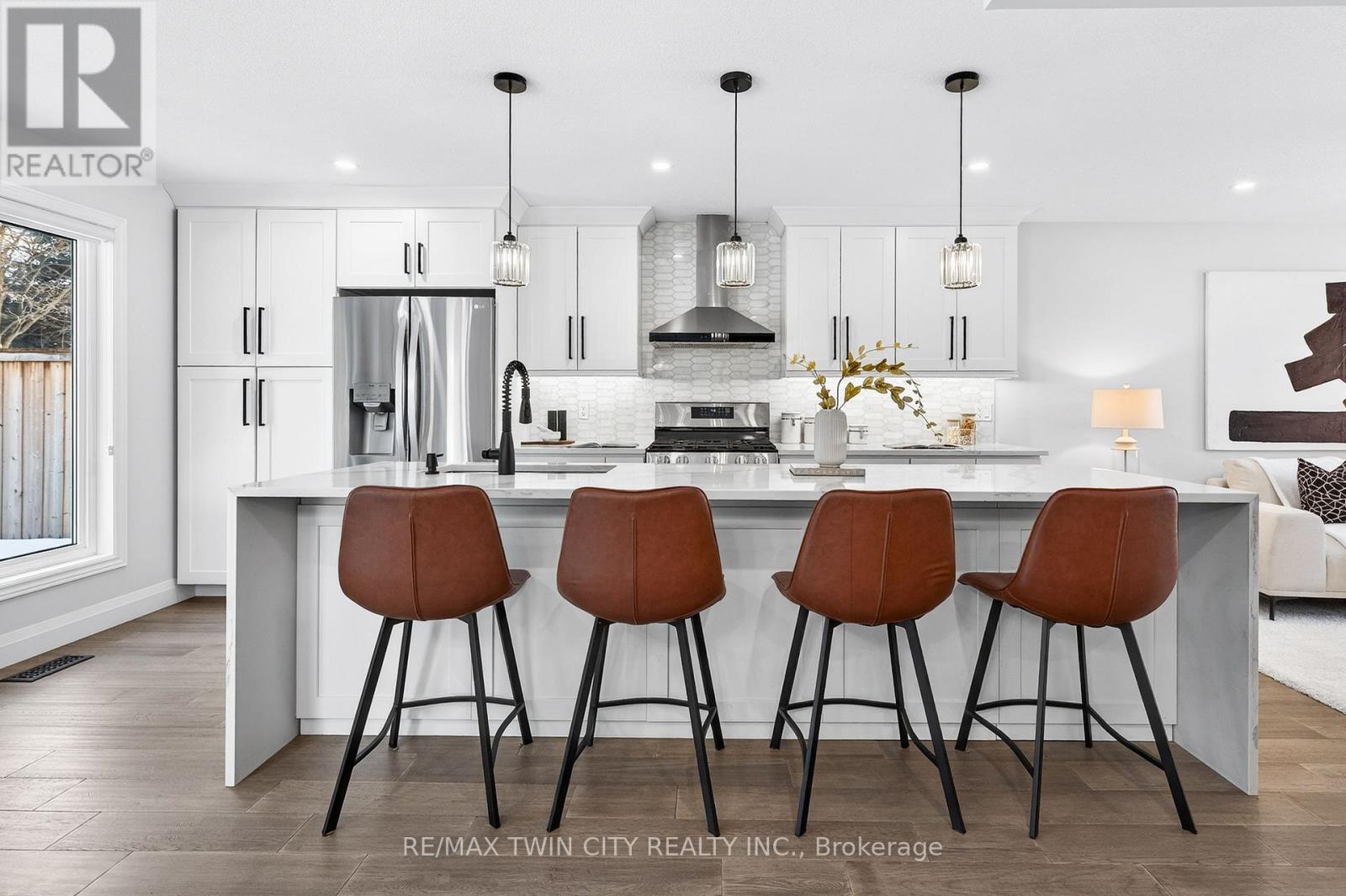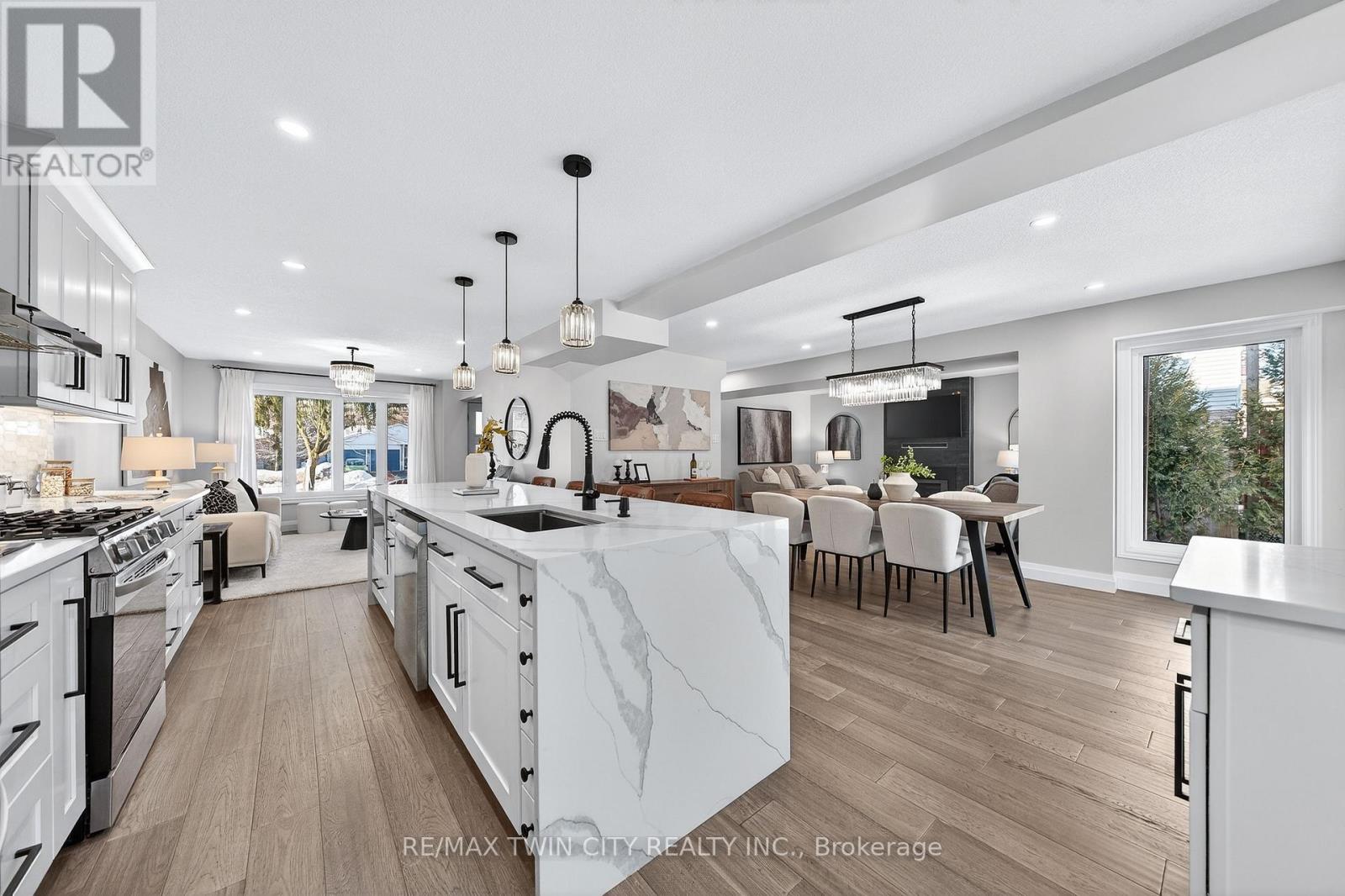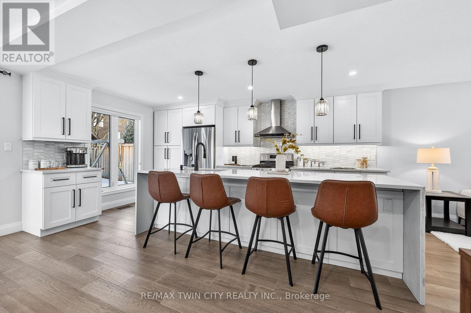 This is the Westvale home you've been waiting for. Stunning & fully transformed through $300,000+ in professional renovations (2022-engineered & permitted) & thoughtfully enhanced since, 166 Westvale Drive offers 3,300+ SF of refined, move-in ready living space in one of Waterloo's most established & family-oriented neighbourhoods. Designed for modern family living, the bright open-concept main level balances sophistication & everyday function. A grand 2-storey foyer creates a strong first impression, while a formal living rm overlooking the mature streetscape adds elegant front-of-home presence. The heart of the home is a stunning chef's kitchen featuring a dramatic 10' quartz waterfall island, dedicated coffee bar, marble backsplash, under-cabinet lighting & premium appliances, seamlessly connected to the integrated dining area & great rm with gas fireplace & dual backyard access. A spacious mudrm/laundry with garage/side-yard access & a 2-pc bath complete the main level. Upstairs offers 4 generous bedrms, including a spacious primary retreat with walk-in closet & spa-like 4-pc ensuite with dual sinks & tiled glass shower. A 4-pc updated main bath serves the additional bedrms, while a bonus upper-level family rm with vaulted ceilings adds flexibility for a 5th bedrm, office, gym, or playroom/teen lounge. The finished basement extends the home's versatility with a lrg rec rm, kitchenette, office/den & full bath-ideal for multi-gen living/long-term flexibility. Beyond the cosmetic transformation, major systems were updated, including electrical (ESA certified), plumbing, ductwork, A/C, windows & doors. Set on a mature, tree-lined street with timeless curb appeal, covered front porch & private backyard with deck, this home blends executive presence & established neighbourhood charm. Prime location: walk to parks & schools, mins to shopping at The Beechwood Centre, The Boardwalk Shops & amenities, Costco, universities, Uptown Waterloo, & Westmount Golf & Country Club. (id:64974)