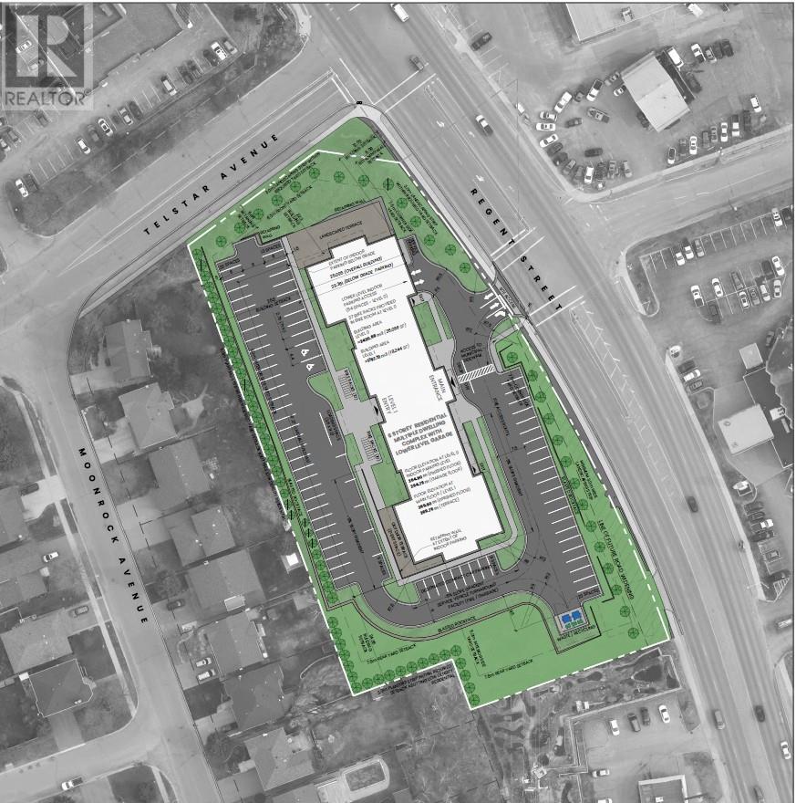 This development property, spanning approximately 2.66 acres (as per Geowarehouse), is situated at the prominent corner of Regent Street South and Telstar Ave in Sudbury's sought-after South End, and is one of the last remaining large development properties in the area. The site features 518 feet of high-visibility frontage on Regent and is accessible via a signalized intersection, ensuring safe and convenient entry. Its strategic position directly across from the Holiday Inn—one of Sudbury's busiest hotels—and adjacent to the main entrance into the Moonglo subdivision, a premier high-end residential community with nearly 1,000 homes, guarantees exceptional exposure, prestige, and easy access for future residents or commercial tenants. The Seller has completed conceptual site plans and building designs for a 6-storey, 116-unit building (including 114 residential units and 2 commercial spaces), featuring a desirable mix of 1-bedroom, 2-bedroom, and 2-bedroom plus den models. The proposed development includes modern amenities such as underground parking, but also includes surface parking. Documents in the listing Broker’s possession include a survey, topo drawing, conceptual site plan, block schematic floor plans, and conceptual building drawings. The property may be eligible for rezoning to accommodate a range of commercial or mixed-use developments—such as retail plazas, professional offices, or upscale live/work spaces—subject to municipal approval. (id:64974)
