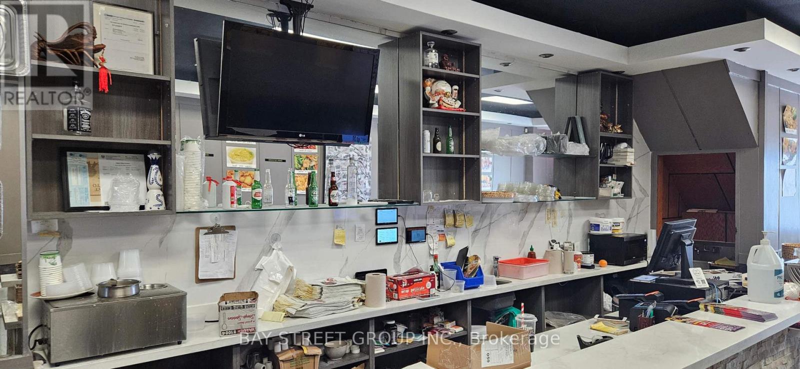 Sushi and Chinese Restaurant,Now available is a well-established business located right cross from Oakwood LRT Station, offering a prime opportunity for anyone looking to step into ownership. Known for its convenient location and steady flow of customers, this business is positioned for continued growth and success. With a solid reputation and loyal clientele, it presents a turnkey opportunity to own and operate in a thriving community. Rent is affordable providing more scope for profit. Buyers also have the flexibility to continue building on the existing brand or bring in their own concept, making it an ideal choice for both experienced operators and first-time owners looking for stability and potential in an excellent location.1800Sqft main floor with basement for storage. ,Rent $5200 includes hst&tmi&water. Fully-equipped kitchen Walk-in cooler& Freezer. liquor license for 45 seats. (id:64974)