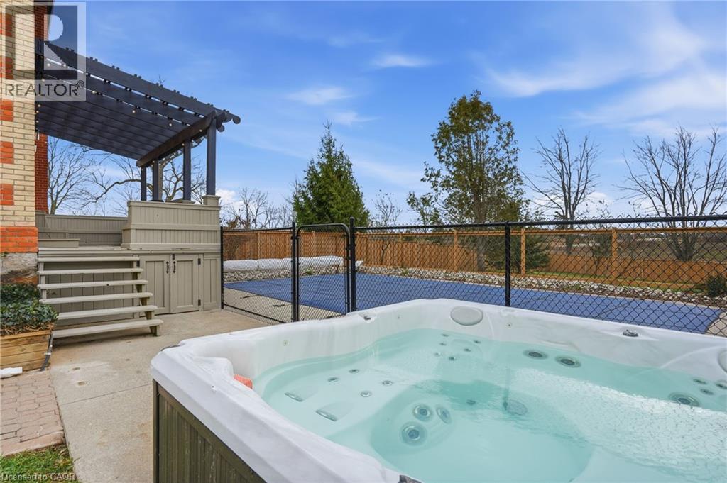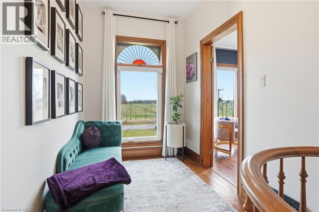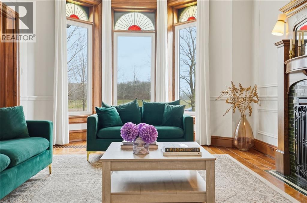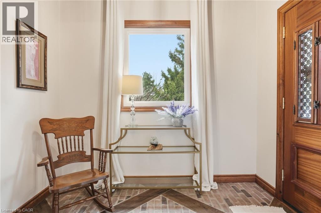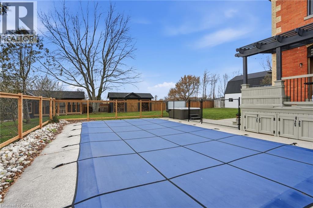 This updated red brick century home is sure to stun you with its beauty! Drive up the long interlock drive and be greeted by the wrap around porch and the handcrafted mahogany exterior doors. This stately home has original character details you'll love – 10’ main floor ceilings, stained glass windows, the original front doors, beautiful glass pocket doors, pine and maple tongue and groove floors throughout, stained solid wood trim work, decorative ceiling medallion, the original fireplace (converted to gas), claw foot tub, the library chandelier is an original Hamilton gas street light converted to electric, and 2 staircases to the second floor. But, it’s been updated to elevate the home and fit the modern family - adding crown molding, coffered ceiling, wall trim, a new kitchen, new bathrooms (including an ensuite with a double shower), second floor laundry, a large walk-in pantry/prep-kitchen, a library that could double as an office, and brick flooring in the mudroom. This home has the original character we all crave in homes while meeting the modern family lifestyle. Set upon approx. 1.38 acres this is country living at its best while still being just a short drive to amenities and commuter access routes. With almost half of the property fully fenced off you can enjoy the backyard privacy and safety letting children and dogs run freely. The backyard also boasts an elegant 50’x50’ raised bed garden with a greenhouse, a new ‘chicken coop mansion’, large wood storage shed, an inground pool and hot tub. The detached garage, a full 2 storeys + a loft, functions as both a garage and a workshop. Adjacent concrete pad for RV/trailer parking. Updated electrical, new windows (2025), new soffit/fascia/eaves (2025), new siding (2025). The other half of the basement could be finished to add more room and includes 3-pc bathroom rough-ins. A full staircase to the loft is installed and loft could also be finished to add another room. Visit URL for more photos, floorplans, etc. (id:64974)