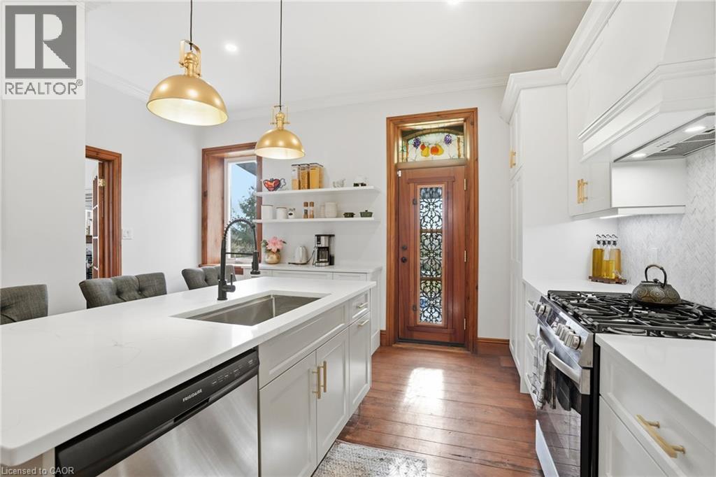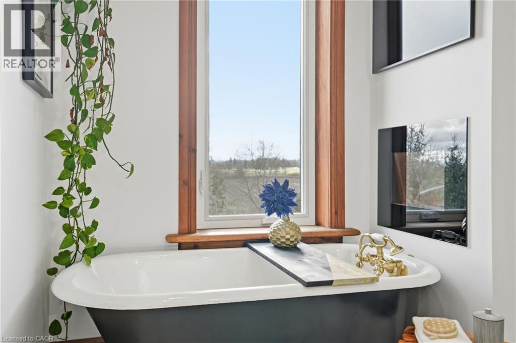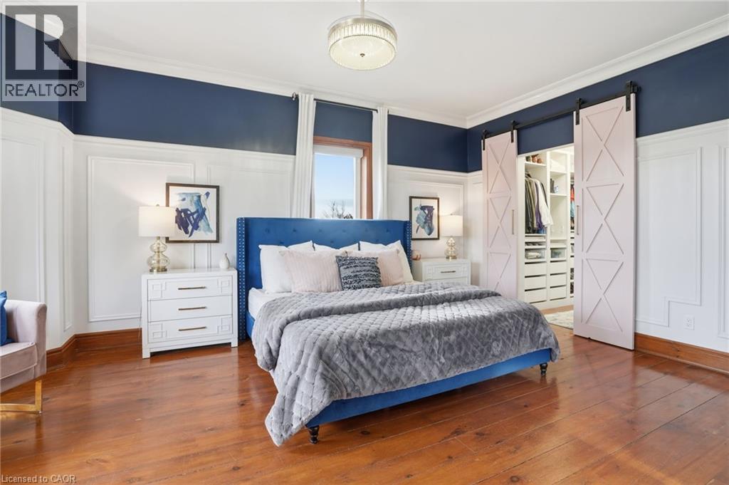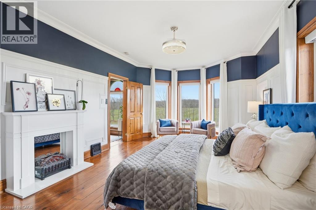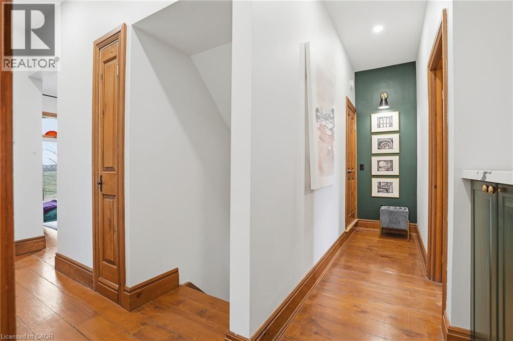 This updated red brick century home is sure to stun you with its beauty! Drive up the long interlock drive and be greeted by the wrap around porch and the handcrafted mahogany exterior doors. This stately home has original character details you'll love – 10’ main floor ceilings, stained glass windows, the original front doors, beautiful glass pocket doors, pine and maple tongue and groove floors throughout, stained solid wood trim work, decorative ceiling medallion, the original fireplace (converted to gas), claw foot tub, the library chandelier is an original Hamilton gas street light converted to electric, and 2 staircases to the second floor. But, it’s been updated to elevate the home and fit the modern family - adding crown molding, coffered ceiling, wall trim, a new kitchen, new bathrooms (including an ensuite with a double shower), second floor laundry, a large walk-in pantry/prep-kitchen, a library that could double as an office, and brick flooring in the mudroom. This home has the original character we all crave in homes while meeting the modern family lifestyle. Set upon approx. 1.38 acres this is country living at its best while still being just a short drive to amenities and commuter access routes. With almost half of the property fully fenced off you can enjoy the backyard privacy and safety letting children and dogs run freely. The backyard also boasts an elegant 50’x50’ raised bed garden with a greenhouse, a new ‘chicken coop mansion’, large wood storage shed, an inground pool and hot tub. The detached garage, a full 2 storeys + a loft, functions as both a garage and a workshop. Adjacent concrete pad for RV/trailer parking. Updated electrical, new windows (2025), new soffit/fascia/eaves (2025), new siding (2025). The other half of the basement could be finished to add more room and includes 3-pc bathroom rough-ins. A full staircase to the loft is installed and loft could also be finished to add another room. Visit URL for more photos, floorplans, etc. (id:64974)