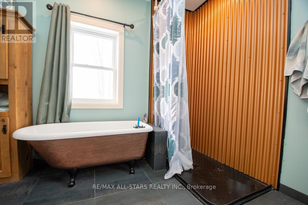 Country charm meets modern luxury in this exceptional brick century farmhouse, seamlessly blended with a stunning 4-year-old addition, offering over 3,500 sq ft of living space. The original farmhouse features a formal living room and dining room, while the expansive eat-in kitchen showcases a large island, new cabinetry with abundant storage, and a walk-in pantry. The main-floor family room impresses with cathedral ceilings, a wood-burning fireplace, and a walkout to a beautifully fenced in-ground pool-perfect for entertaining. A fully refinished century staircase leads to the second level, featuring four generous bedrooms plus a spectacular 22' x 13' primary suite complete with a walk-in closet, full ensuite, and private access to an upper-level balcony with hot tub and breathtaking countryside views. Additional second-floor highlights include a dedicated office, 4-piece bath, and convenient laundry. The property offers exceptional garage space with an oversized 2-car garage providing ample storage and direct access to a large mudroom, plus an additional attached 3-car garage with workshop. The property is serviced by a new septic system (2021), drilled well, 200-amp electrical panel (2022), and two propane furnaces with separate thermostats. All of this is set on a meticulously manicured 1.1-acre lot with spectacular panoramic country views. Quick access to Hwy 115 and 407 for easy commute to the GTA. (id:64974)