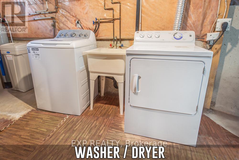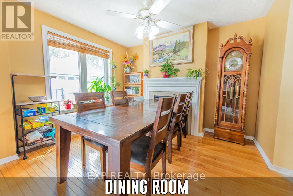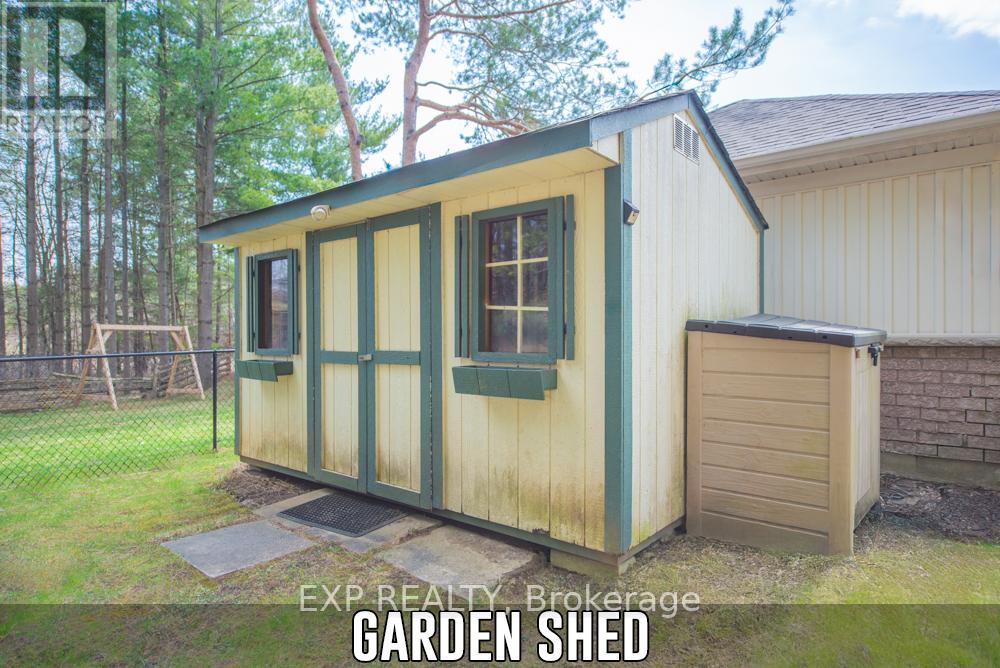 This charming 1,371 + 382 sq ft, 3-bed, 2-storey home is tucked away on a quiet court in a family-friendly Rockwood neighbourhood. Enjoy small-town charm with commuter convenience, just minutes to Hwy 7, the Acton GO Station, and under 20 minutes to Guelph, Milton, and the 401.Ideally located near top-rated schools, parks, and everyday amenities, you're also just minutes from the stunning Rockwood Conservation Area and the villages local shops, cafés, and restaurants.The home offers great curb appeal with shady trees, a mature front garden, a long driveway for six vehicles, and a detached 2-car garage. The front steps and covered porch were redone in 2024, creating a lovely space to enjoy the quiet court.A sliding door off the eat-in kitchen opens to the fully fenced backyard complete with patio space, lush gardens, a garden shed, cedar play structure, and a gate to forest trails.Inside, a bright foyer welcomes you with tile flooring and a spacious front closet. The cozy family room features hardwood flooring, a gas fireplace, and large windows. The eat-in kitchen offers ceramic flooring, under-cabinet lighting, ample storage, and access to the backyard.The dining room, just off the kitchen, boasts hardwood floors and a second gas fireplace, ideal for entertaining. A 2-piece powder room completes the main level. Upstairs, the primary bedroom features a high ceiling, ceiling fan, two bright windows, a walk-in closet, and a private 4-piece ensuite with tub/shower, vanity, and storage. Two additional bedrooms, a linen closet, and a 4-piece main bath complete this level.The finished basement includes a large storage closet, spacious rec room, a 2-piece bath with double-door storage, utility room with washer/dryer, laundry sink, furnace, water heater, workbench, under-stair storage & so much more! (id:64974)