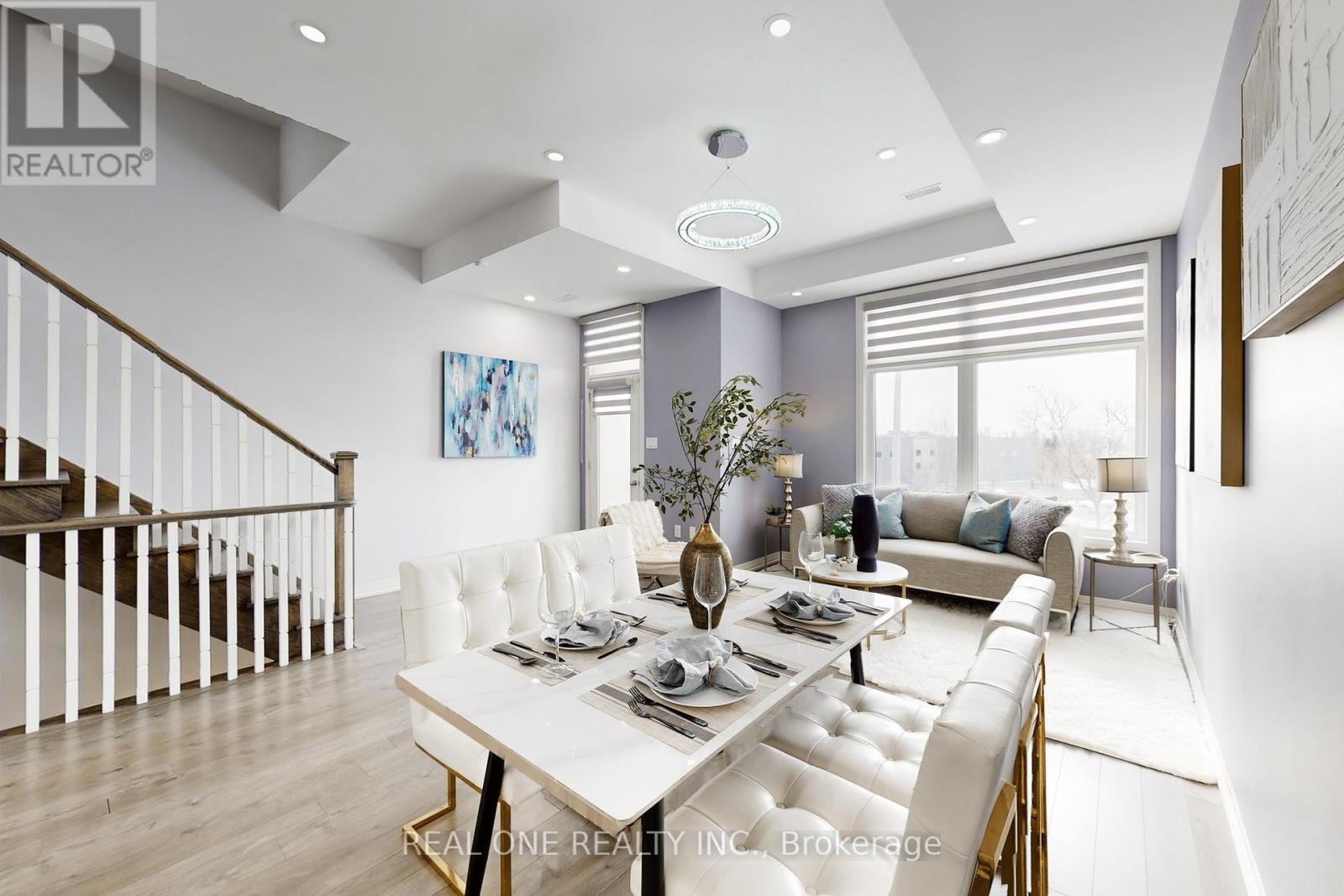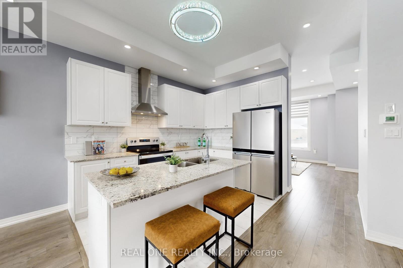 Stunning Freehold Townhouse in a Prime Location! This modern 4-bedroom, 4-bathroom home is packed with $50K+ upgrades and thoughtful details! Built-in 2-car garage, Modern gourmet kitchen with a granite countertop and center island, and an open-concept layout with soaring 10' ceilings on the 2nd & 3rd floors. Luxurious primary suite with a spacious walk-in closet and a s 4-piece ensuite: Double Sinks & Frameless glass shower door . Bedrooms with large windows for beautiful natural lighting. Laundry on 2nd floor. The versatile ground-floor bedroom with a full 3-piece ensuite is perfect for a private office or guest suite. Massive rooftop terrace, perfect for BBQs and entertaining family and friends! The full basement is ready to customize into a gym, home theater, or family room. Located in a top-rated school zone and just steps to King Square Shopping Centre, supermarkets, parks, and all amenities. Quick access to Hwy 404 and more! Additional upgrades: Front load cloth washer & dryer, Chic Front door and Light fixtures, Furnace (Owned), Frameless glass shower doors. Don't miss this one - it's move-in ready and built for both luxury and convenience! (id:64974)