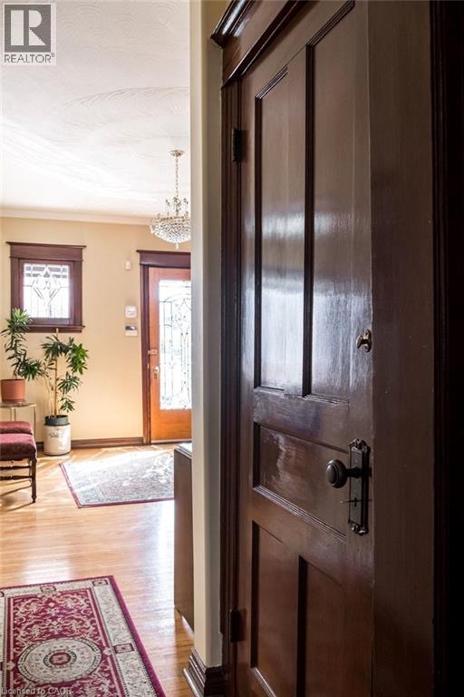 This charming c. 1900 brick beauty has been lovingly maintained by the same family for over 80 years - only the 2nd ownership of this remarkable property. The home boasts beautiful hardwood floors, original baseboards, doors, and trim, large windows and classic layout. The main floor features a welcoming family-sized foyer, spacious living and dining rooms, an eat-in kitchen, a full bath, and a rear mudroom. Upstairs, the second floor offers a large primary bedroom, a second bedroom, a full bath, and a kitchen with a separate entrance—ideal for multi-generational living. The third floor includes a family room and an additional bedroom. A surprisingly tall unfinished basement provides ample space for laundry, storage, cold storage and terrific potential. Additional highlights include a detached garage/outbuilding with power, perfect for a workshop or studio, a private side drive, a deck, and a covered front porch. Situated just steps from James Street North, Hamilton Farmer's Market, and West Harbour GO, this location is unbeatable. A fantastic opportunity and definite keeper for those looking to make a magnificent property home. (id:64974)