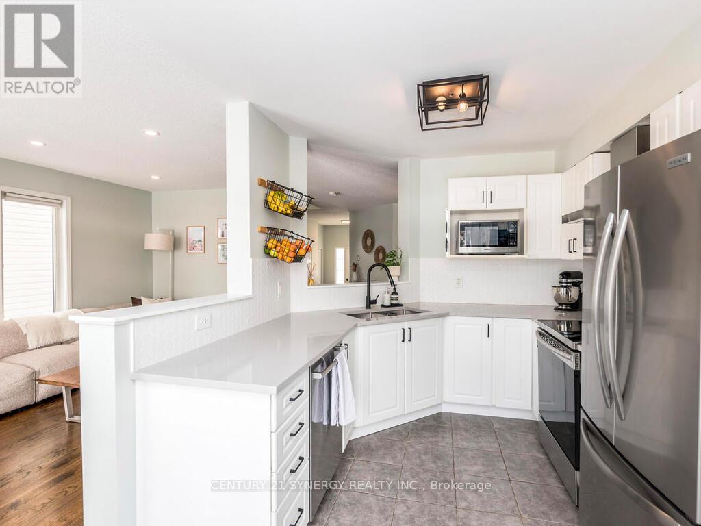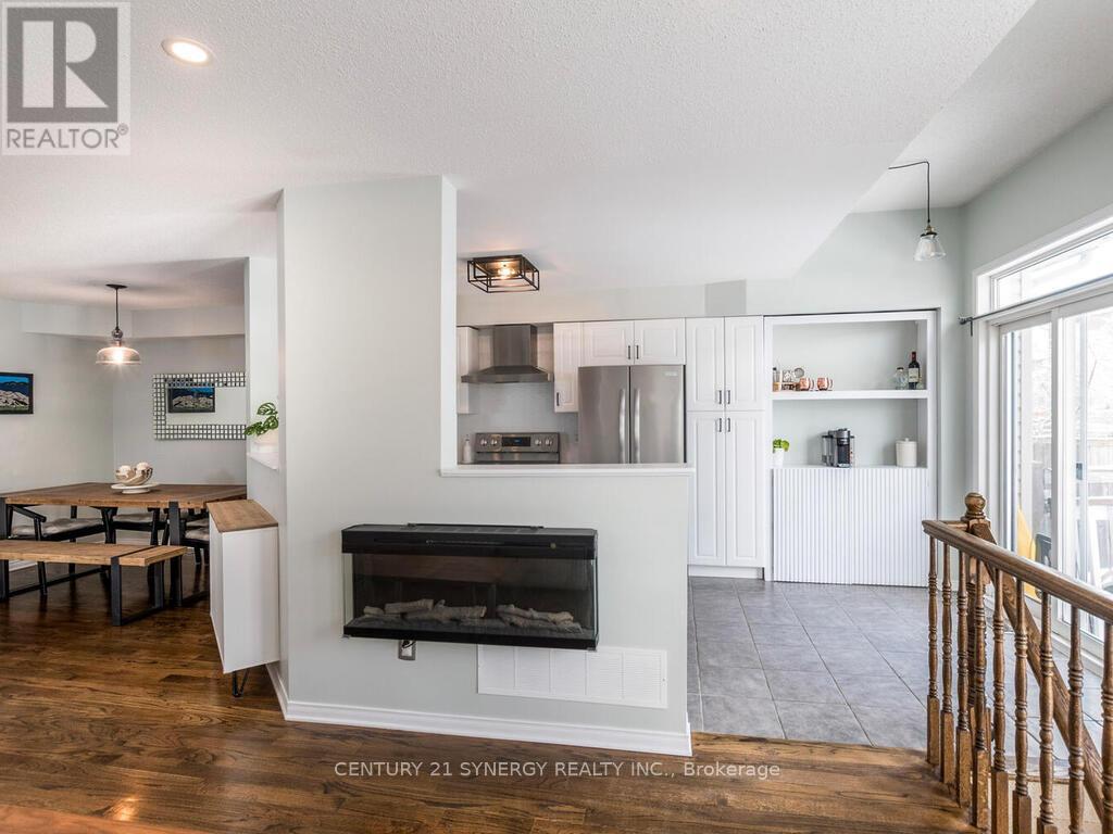 Gorgeous End-Unit Town With So many Updates with-in last 5 years. Spacious Tile Foyer, with Access to Garage and 2-pc Bath. Hardwood Throughout Main level, Separate Dining Room with upgraded light Fixture. Living Room is very bright and Spacious with Electric Wall Fireplace, Back Wall is Windows that allows for Abundance of Natural lighting. Open Kitchen with Eating area. Kitchen is Bright white cabinetry including built-in Pantry with Shelving, new Quartz Countertops New backsplash and fixtures. Tile flooring. Also on main a walk-in pantry has been added under stairway, excellent use of space. Upper Level has 3 Large bedrooms and a new full luxurious bath complete with stand alone tub walk-in shower stunning finish. The master has a wall of closets and cathedral ceiling with new Fixture.. The flooring has all been replace with luxury Laminate on 2nd level. Lower level with new flooring is an ideal space for family time, also brightened by windows above. Furnace replace this year. Freshly painted throughout. 5 Appliances includes new S/S fridge and Hood Fan. New Fixtures throughout. Fenced yard with Privacy Trellis, Patio has been enlarged and landscaping complete. Located in a most walkable area with Walmart, Superstore, Parks and Recreation and Transportation at your door (id:64974)