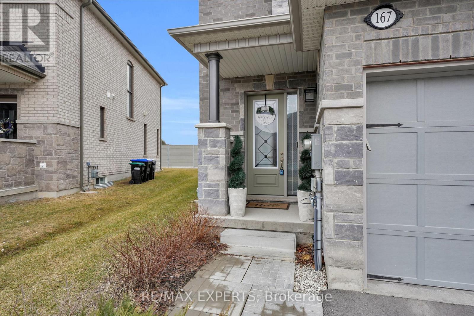 Welcome to 167 Walker Blvd - The One You've Been Waiting For. Situated in one of Alliston's most sought-after family-friendly communities, this stunning all-brick end-unit townhome truly lives like a semi - offering the privacy, natural light, and outdoor space that sets it apart from the rest of the row.Step inside and you'll immediately notice the dilfference. The bright, open-concept main floor features upgraded flooring, designer finishes, and a beautifully appointed kitchen - the kind of space you actually want to cook and entertain in. Every detail has been thoughtfully upgraded, from the staircase to the fixtures.Upstairs, the spacious primary bedroom retreat offers a walk-in closet and private ensuite,with two additional bedrooms and a full bath rounding out the upper level - ideal for growing families.The fully finished basement adds incredible versatility with a large rec room and full bathroom, whether you need a home office, kids' play space, or guest suite. Outside, enjoy your premium pie-shaped lot - rare for a townhome and perfect for summer entertaining.Built less than 5 years ago and still covered under Tarion New Home Warranty. A pre-listing inspection has been completed for full buyer peace of mind.This is move-in ready, worry-free living in a community that families love to call home. Don't miss it. (id:64974)