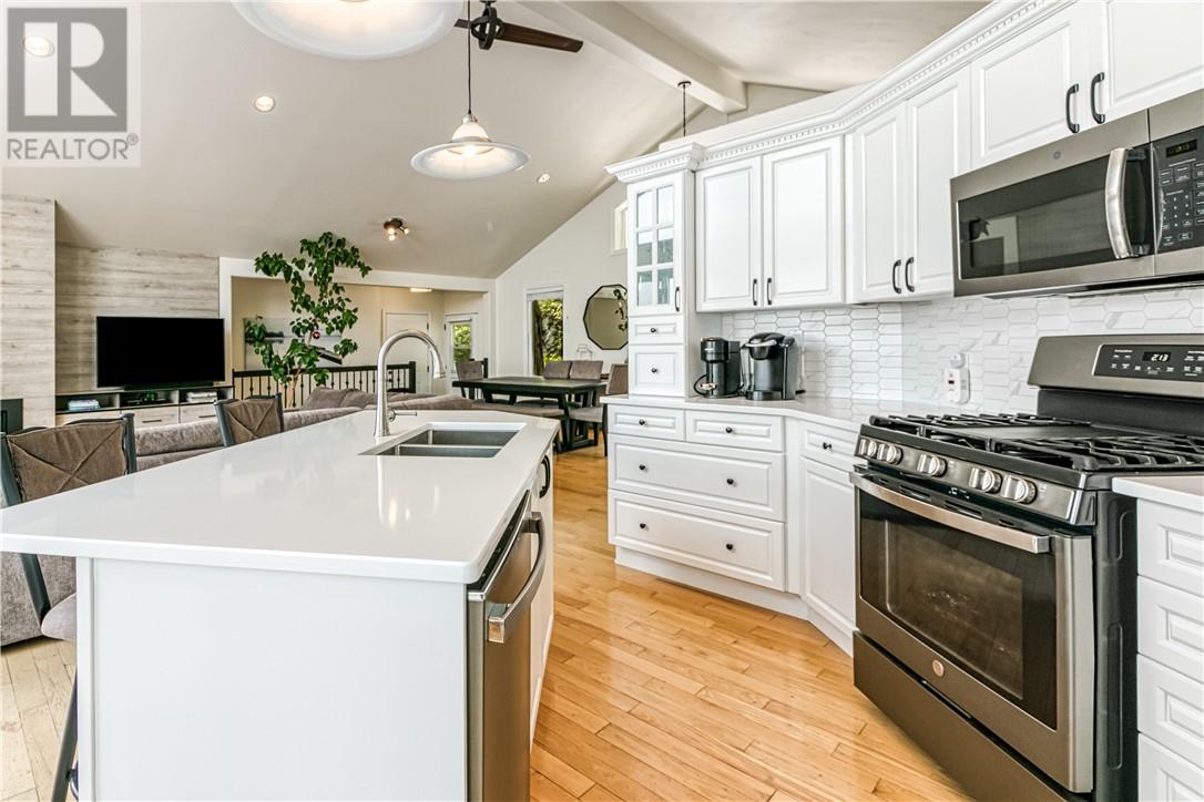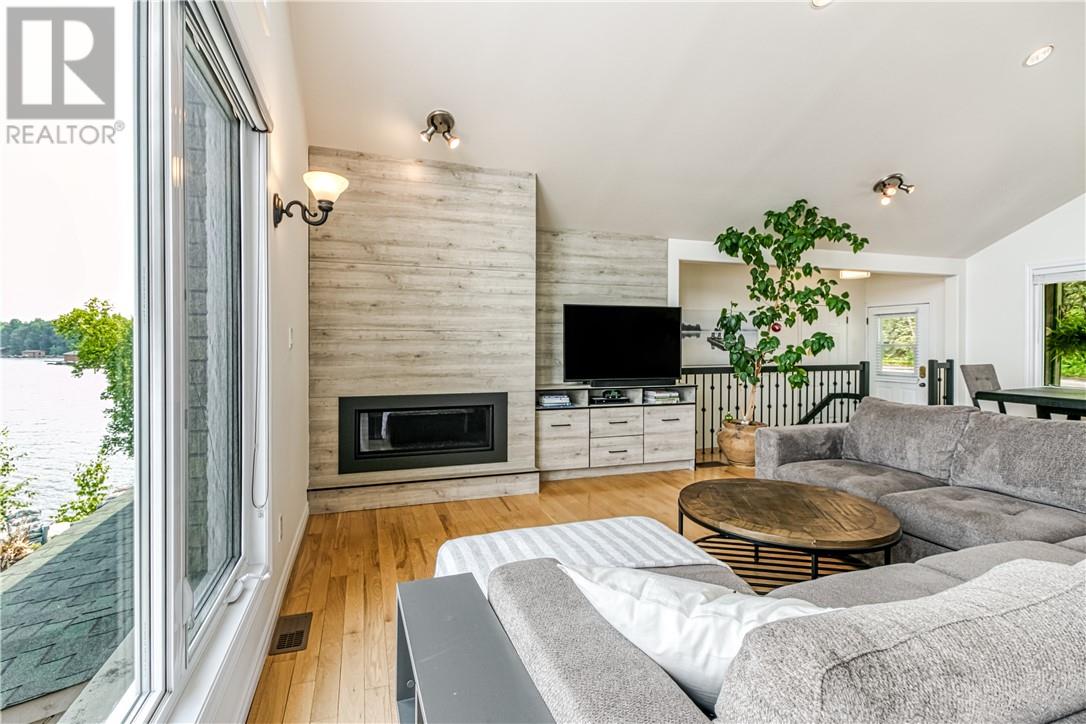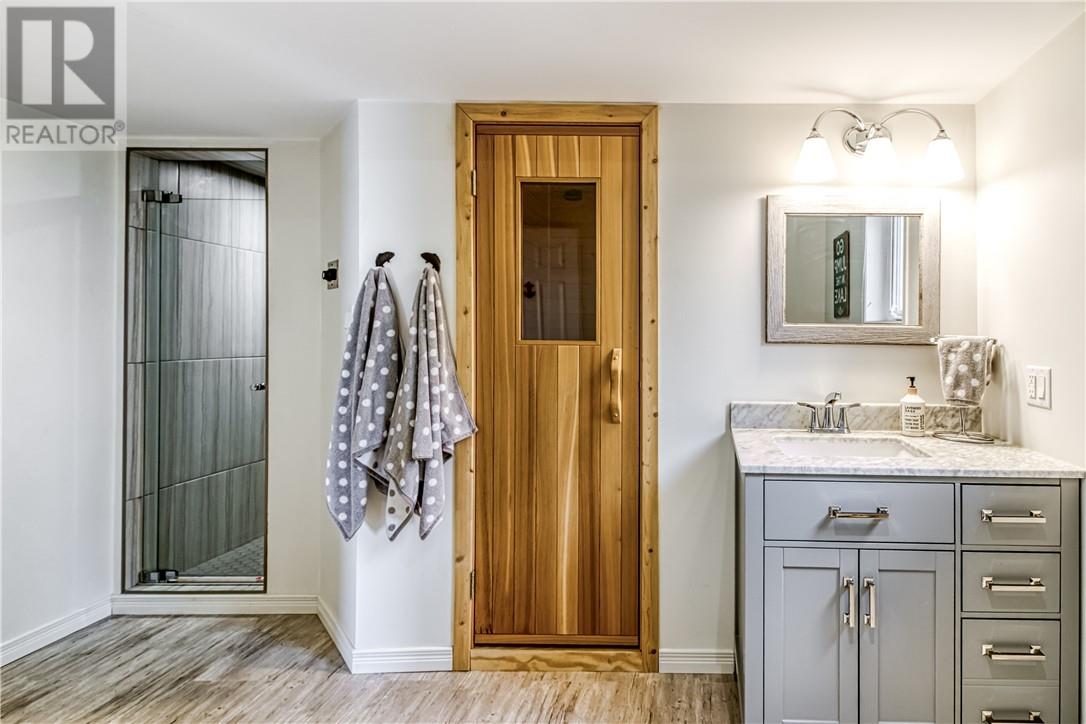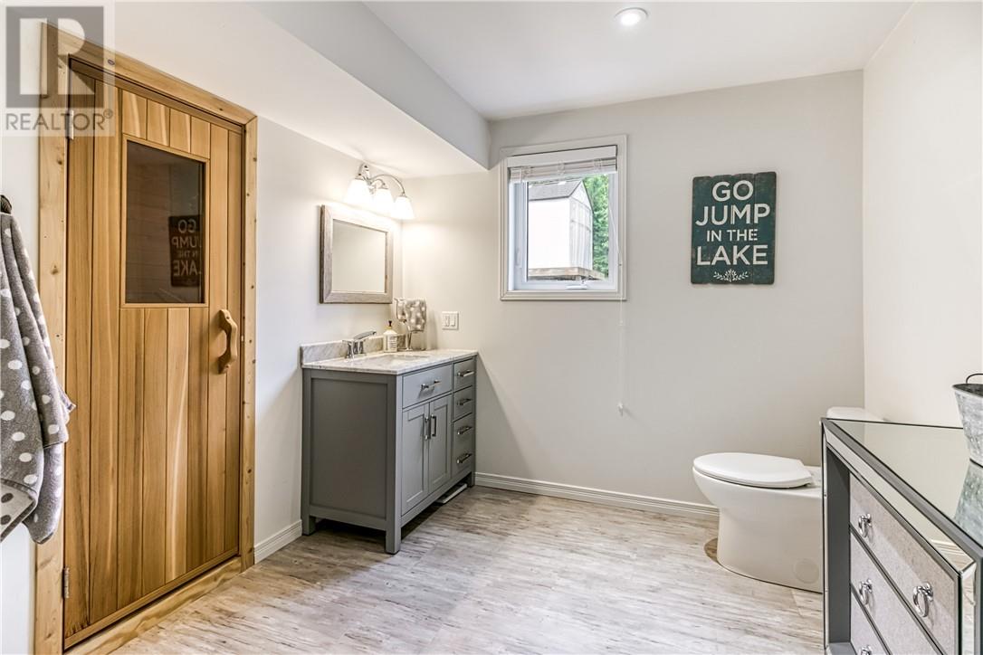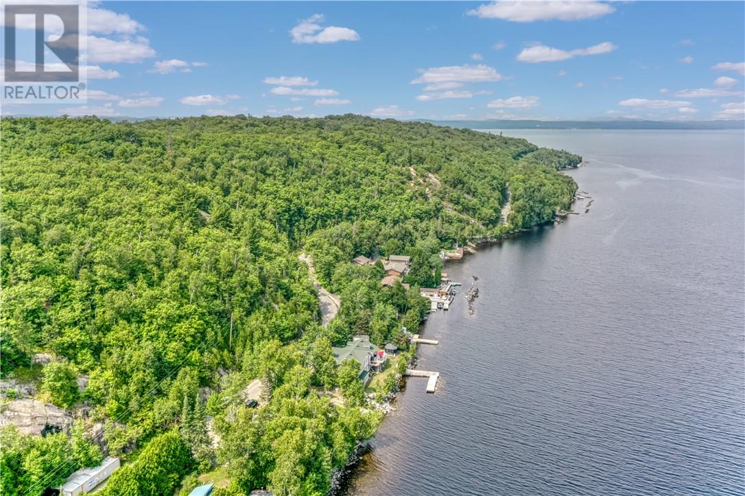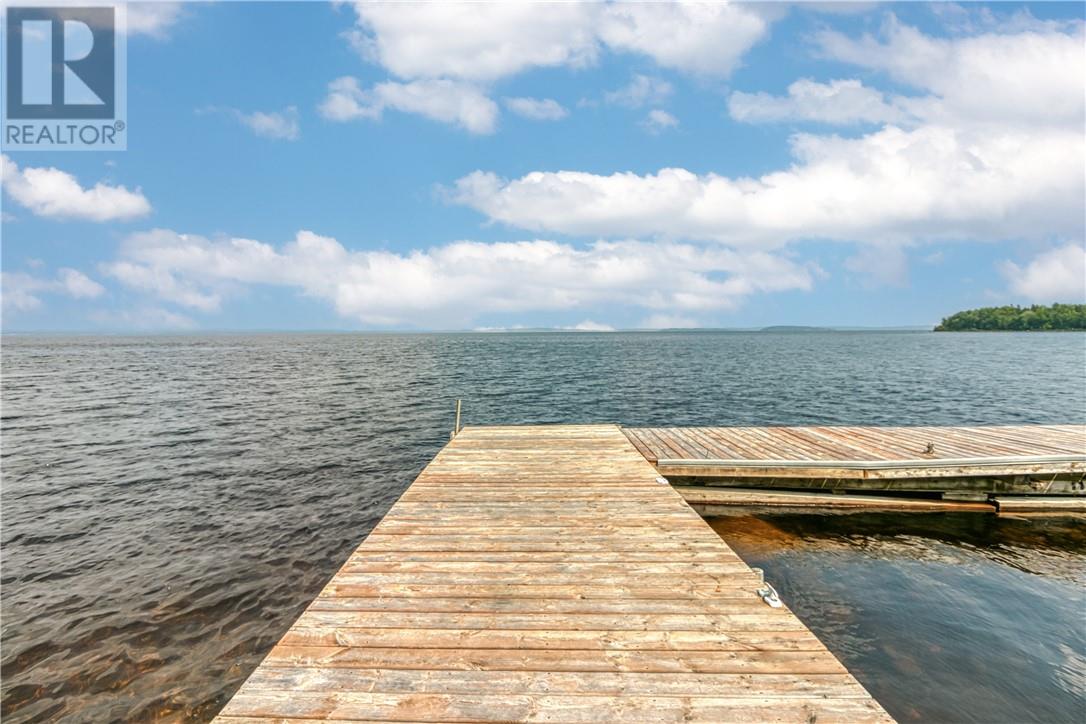 Welcome to this custom-built 1400 square foot bungalow on beautiful Lake Wanapitei. This waterfront gem boasts a true open-concept layout with soaring cathedral ceilings and breathtaking lake views from the moment you walk in. The main level great room is a space you will never want to leave. The primary bedroom has a generous walk in closet and also a walkout to the deck. The main level bathroom has been meticulously updated and feels like a spa get away. The fully finished walkout lake level offers an additional 1,400 square feet of living space, which features 2 lake view bedrooms, in-floor heating, a sauna, and two storage spaces suitable for an additional bedroom or office. With 2 new bathrooms, a new dock, a $7,000 water system, new (2025) in lake water pump, new 25-year shingles in 2022 and 120 feet of pristine frontage, this turnkey home is ready for your family to enjoy. Additional highlights include wood and luxury vinyl flooring, a double-deep garage with woodstove, paved driveway that could fit 6 cars, school buses to the door and close proximity to the airport—making it as convenient as it is stunning. Go to this link for a 3D tour: https://my.matterport.com/show/?m=YfQeexb8oXP (id:64974)