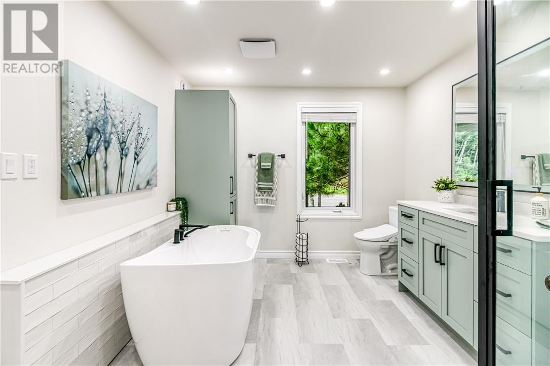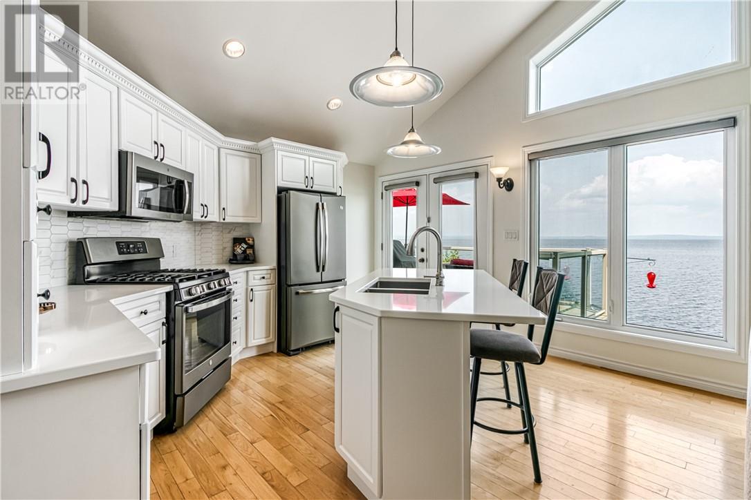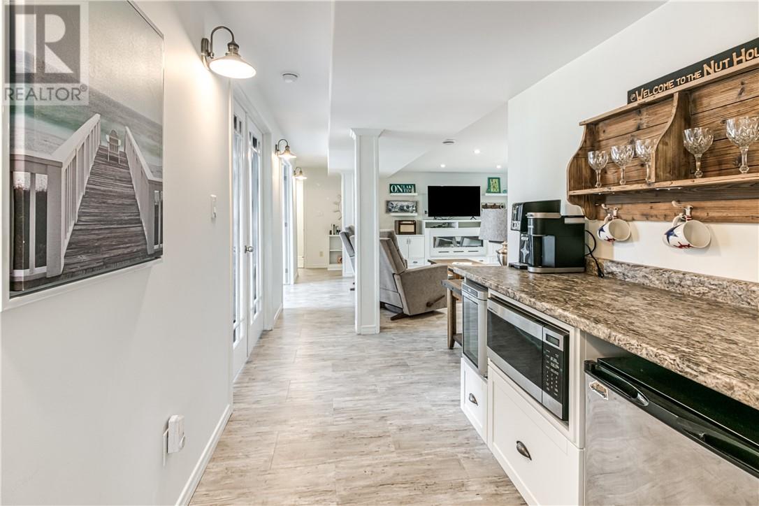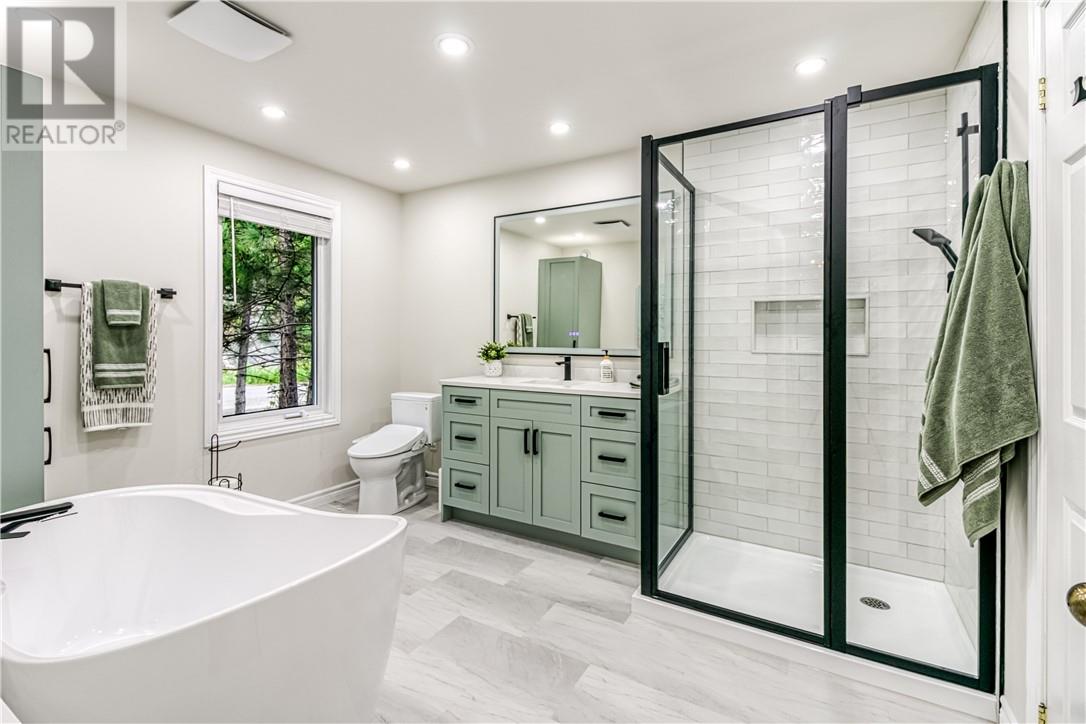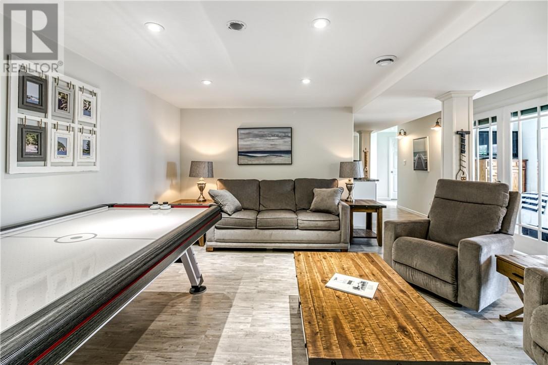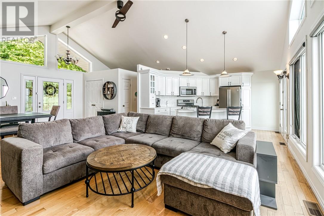 Welcome to this custom-built 1400 square foot bungalow on beautiful Lake Wanapitei. This waterfront gem boasts a true open-concept layout with soaring cathedral ceilings and breathtaking lake views from the moment you walk in. The main level great room is a space you will never want to leave. The primary bedroom has a generous walk in closet and also a walkout to the deck. The main level bathroom has been meticulously updated and feels like a spa get away. The fully finished walkout lake level offers an additional 1,400 square feet of living space, which features 2 lake view bedrooms, in-floor heating, a sauna, and two storage spaces suitable for an additional bedroom or office. With 2 new bathrooms, a new dock, a $7,000 water system, new (2025) in lake water pump, new 25-year shingles in 2022 and 120 feet of pristine frontage, this turnkey home is ready for your family to enjoy. Additional highlights include wood and luxury vinyl flooring, a double-deep garage with woodstove, paved driveway that could fit 6 cars, school buses to the door and close proximity to the airport—making it as convenient as it is stunning. Go to this link for a 3D tour: https://my.matterport.com/show/?m=YfQeexb8oXP (id:64974)