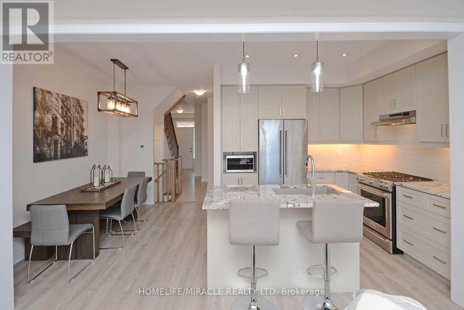 Nicely upgraded 3 bed, 2.5 bath with stainless steel appliances, fantastic kitchen island with granite counters. Living room with fireplace and master bedroom beautiful ensuite! Bedroom level laundry. Lovely decor throughout with California shutters and blinds. This unit is ready to move into. Garage with inside entry. Stunning Townhouse With Modern Features Such As Chefs Kitchen, Many Upgrades Inc Pot Lights, Pendant Lights, Hardwood In The Landing Upstairs And More! Steps From School, Transit, Parks And More! (id:64974)