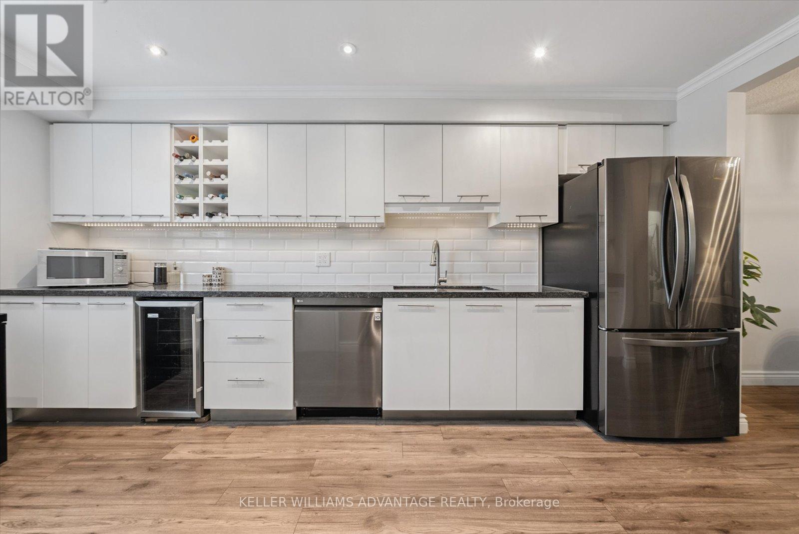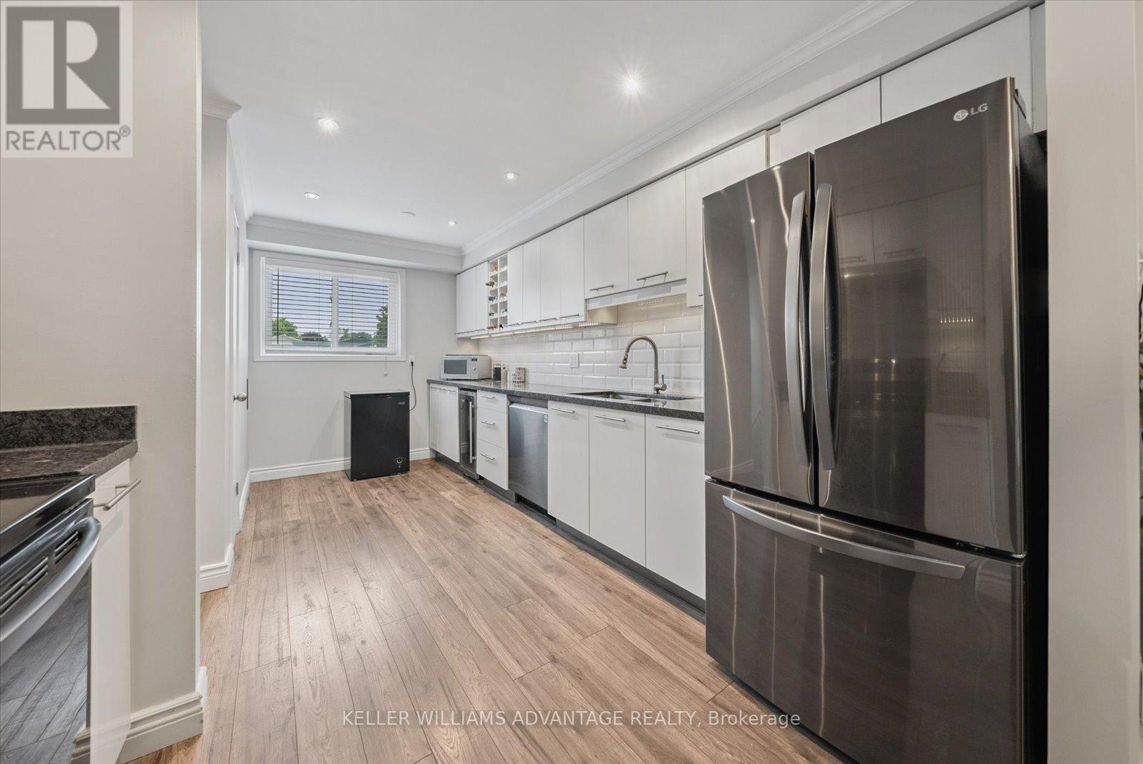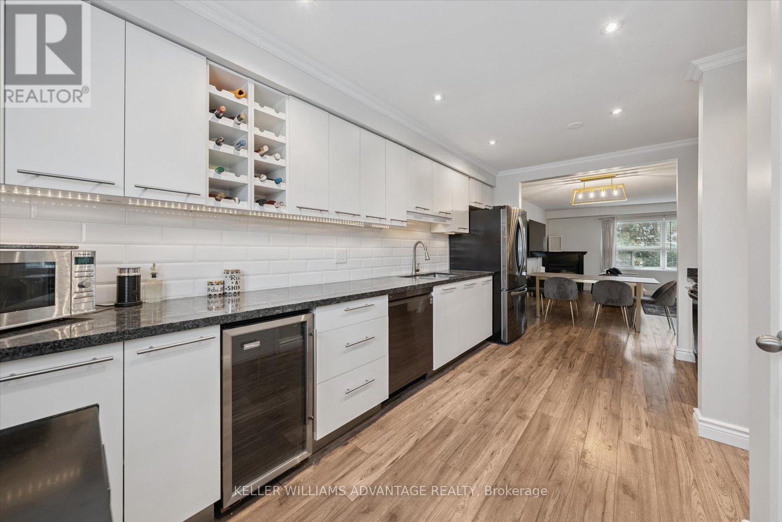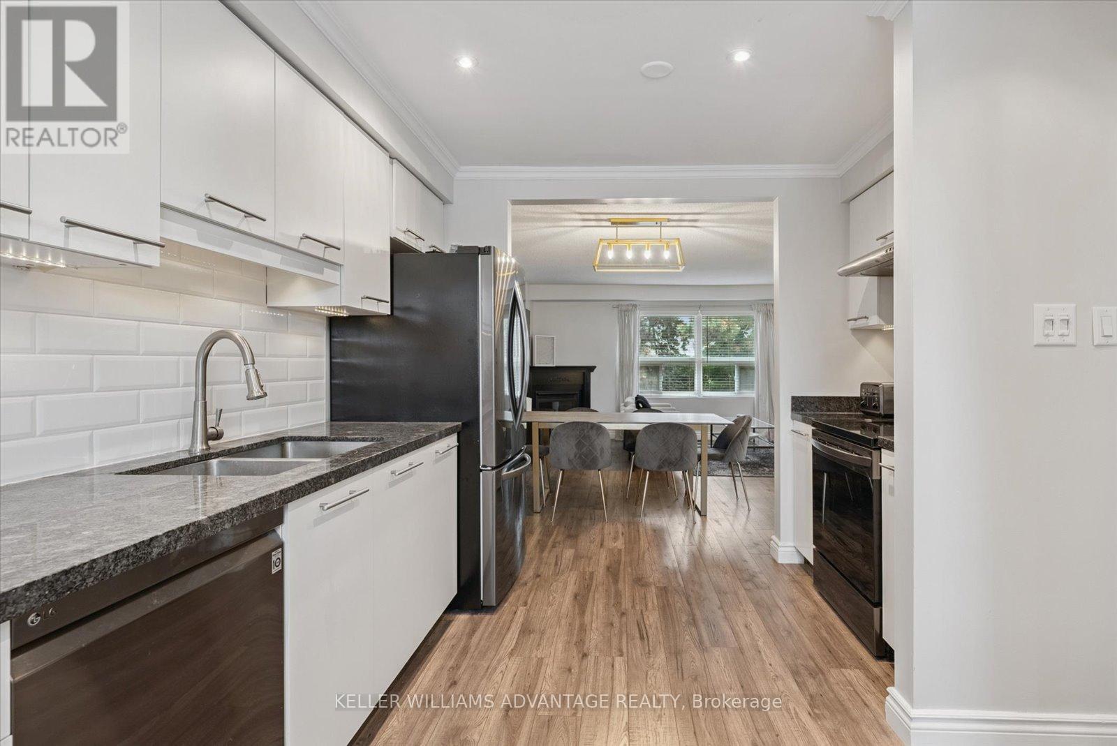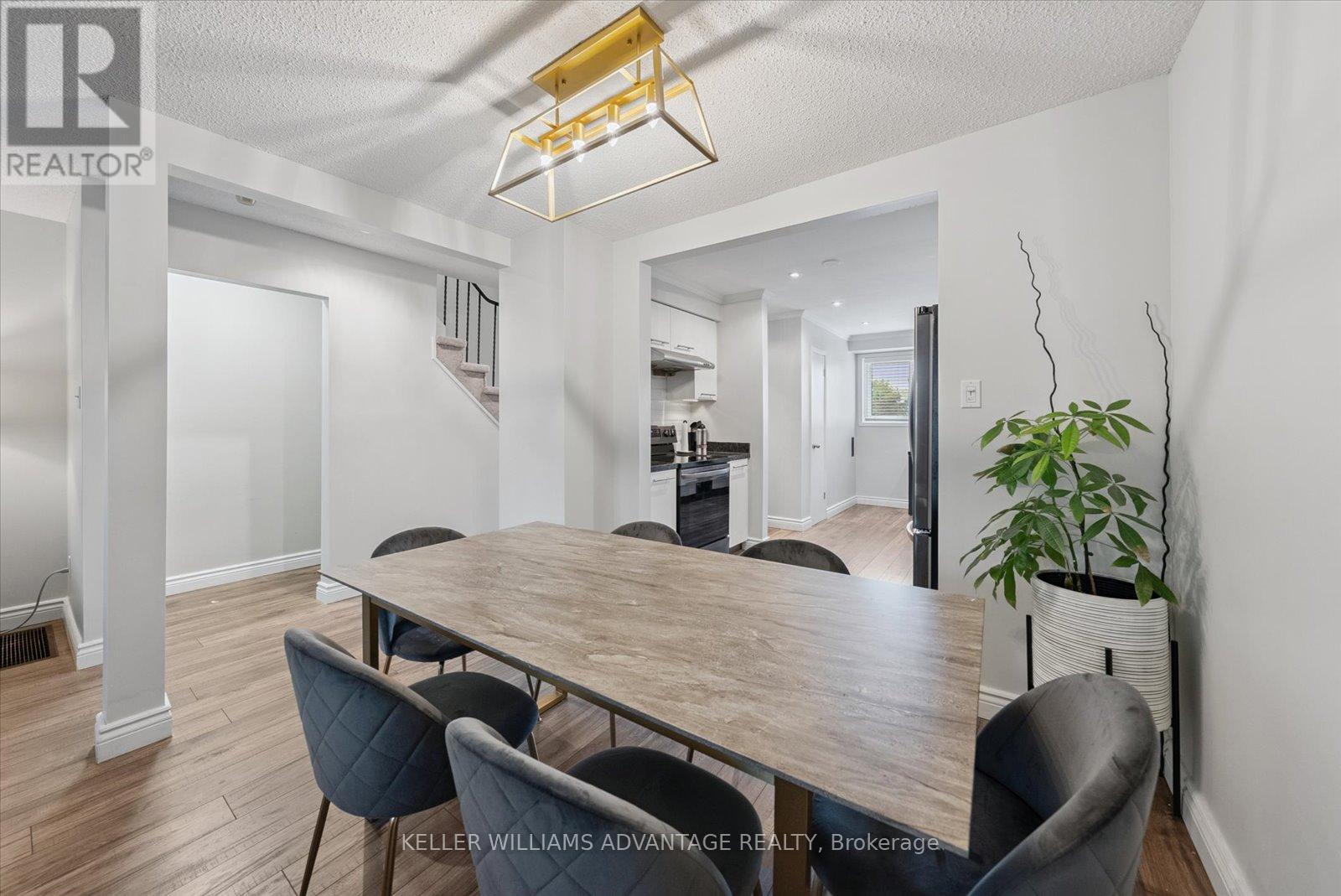 Welcome to this move-in ready townhome in the highly sought-after Pickering Village East community. Unlike many similar townhomes, this one has with efficient FORCED AIR HEATING and CENTRAL AIR CONDITIONING ensuring comfort in every season and reasonable utility costs. Bright and inviting, its been updated with modern finishes that will impress even the most selective home buyers. The main floor features stylish updated flooring throughout the open-concept living and dining areas, along with the kitchen, creating a warm and cohesive space. The kitchen is beautifully appointed with granite counters, an under-mount sink, newer stainless steel appliances, a wine fridge, pot lighting, and an abundance of cupboards for storage ideal for both everyday cooking and entertaining - it's one of the nicest condo townhouse kitchens I've seen! Upstairs, you'll find three spacious bedrooms with large closets and custom organizers. The finished basement offers even more living space with a walk-out to a private, fenced yard and patio, perfect for relaxing or hosting gatherings. This is truly a low-maintenance property lawn care is handled by the property management company, leaving you more time to enjoy life. The central Pickering location is unbeatable, with shopping, parks, playing fields, the 401, and the Pickering GO Station all just minutes away. Don't miss the video tour - this home is a must-see! (id:64974)