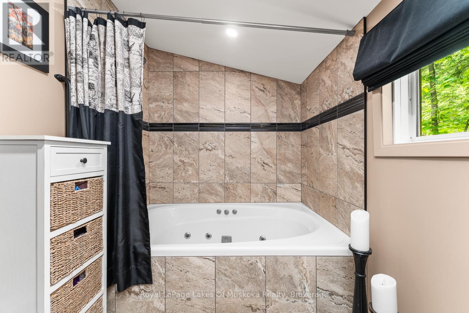 This cherished year-round waterfront home on Pickerel Lake, formerly known as 'Lasting Impressions', is ready for its next chapter. Nestled on a beautifully landscaped and private 0.8-acre lot with 100 feet of natural shoreline, this cherished retreat offers four-season comfort, tranquility, and endless recreation. Enjoy breathtaking lake views, sandy beach entry, deep water off the dock for swimming and boating, and a private snowmobile path to the lake. Mature trees, perennial gardens, and a peaceful waterfall beside a flagstone patio create a truly serene outdoor haven. You're welcomed by a striking granite stone entrance while beautiful flagstone steps lead to the lake, and front and rear decks offer multiple places to relax or entertain. Crafted with top-quality B.C. red cedar on all buildings, the main home features a warm and functional layout with 3+1 bedrooms upstairs and 2 more in the finished walkout basement. The inviting living room with lake views boasts a stunning fieldstone propane fireplace, and the stylish Cutters Edge kitchen has ample cabinetry, and a Vermont Castings propane stove in the dining area. Comfort and efficiency abound with propane radiant in-floor heating on both levels, a new heat pump with A/C, hot water on demand, drilled well, a woodstove (WETT certified), lake-drawn water system for the gardens, and a generator for backup power. Additional highlights include a massive 40' x 26' insulated/heated workshop with hydro, an oversized double garage, attached woodshed, propane BBQ hookup, invisible dog fence, and a charming cedar bunkie, ideal for guests, a studio, or a creative retreat. Plentiful parking accommodates vehicles, trailers, ATVs, snowmobiles, and more. Located on a well-maintained year-round road just 15 minutes from Hwy 11 and Burks Falls and close to OFSC trails! A rare and lovingly maintained property offering year-round lakeside living at its best -your Pickerel Lake paradise awaits! (id:64974)