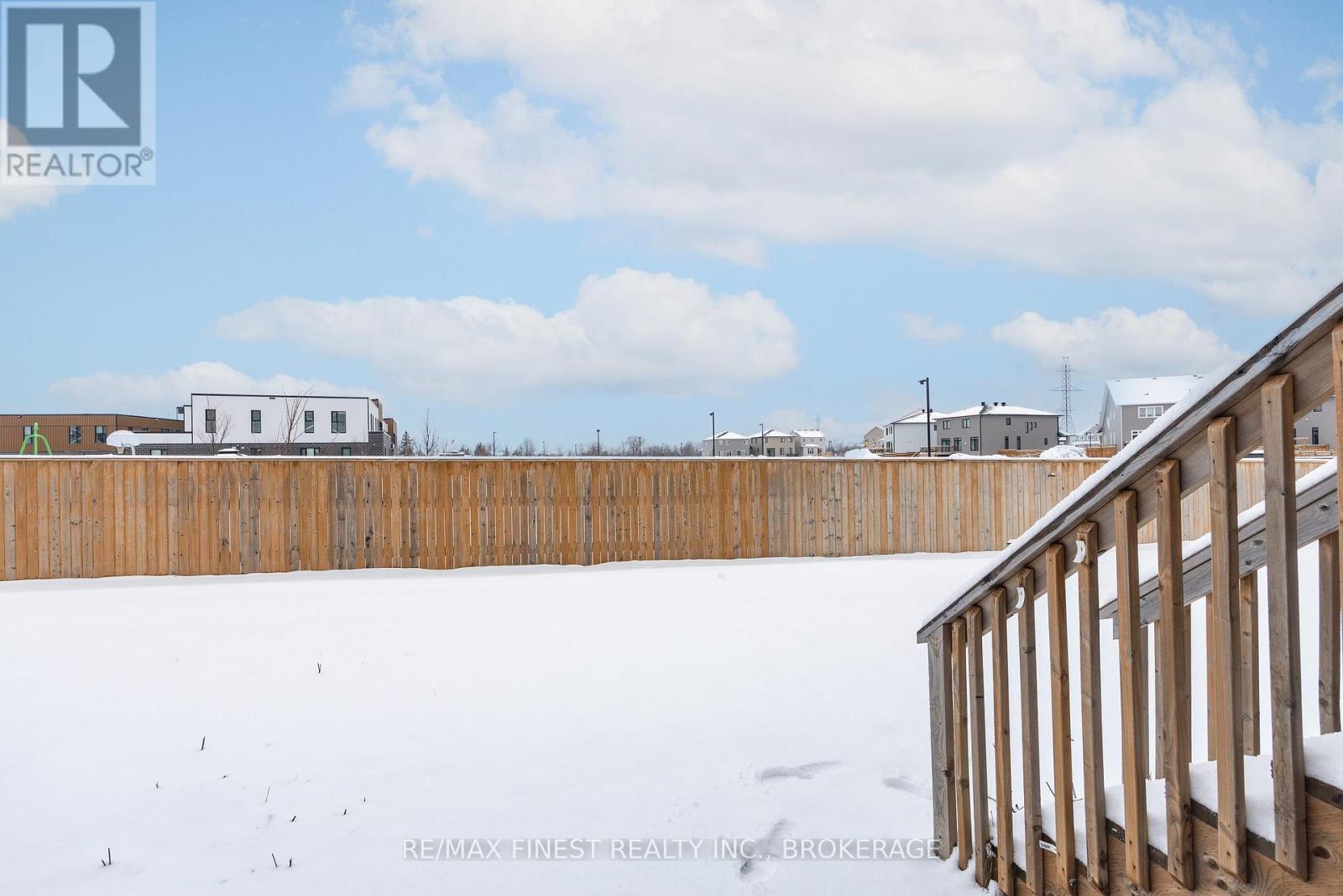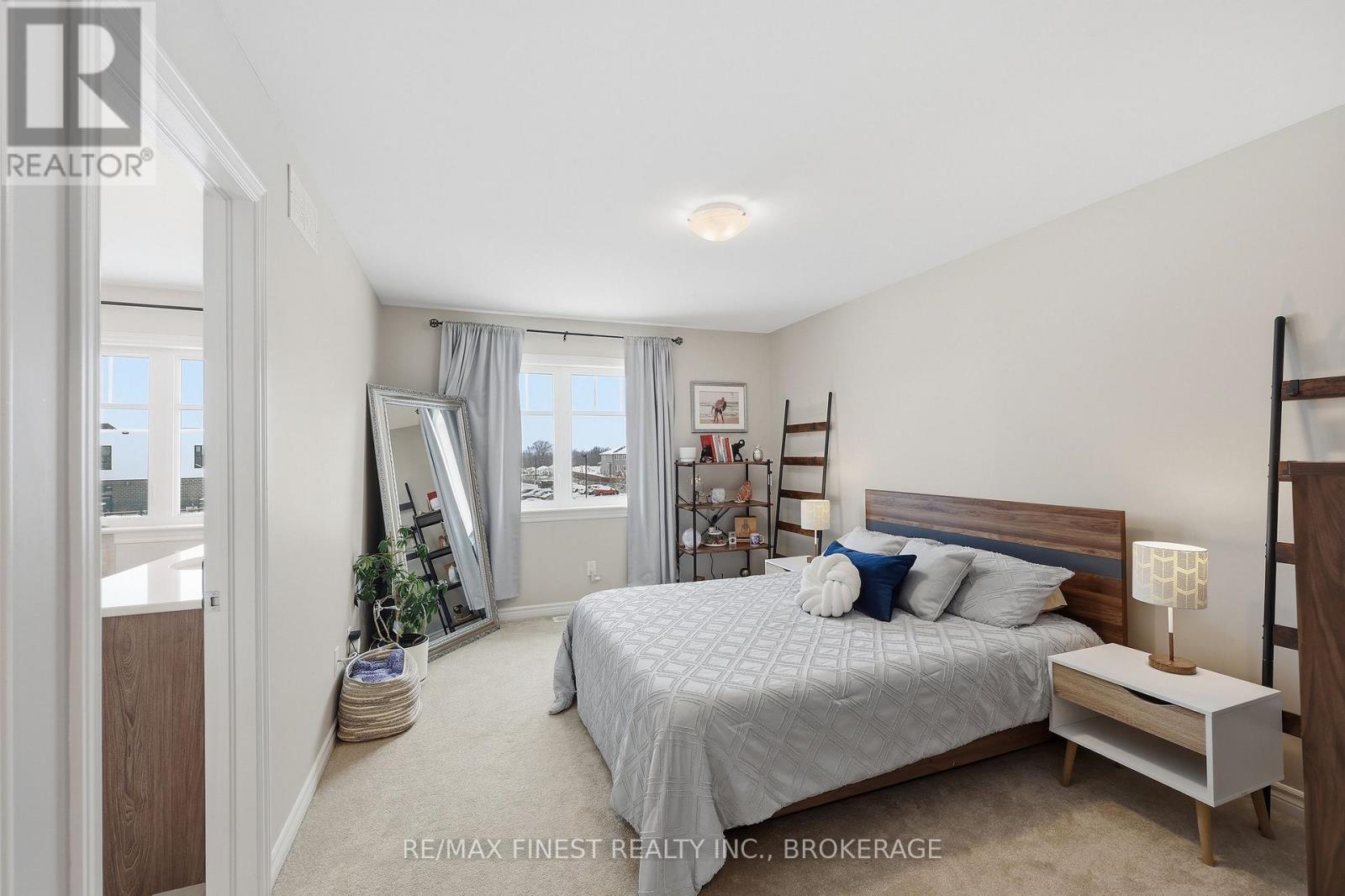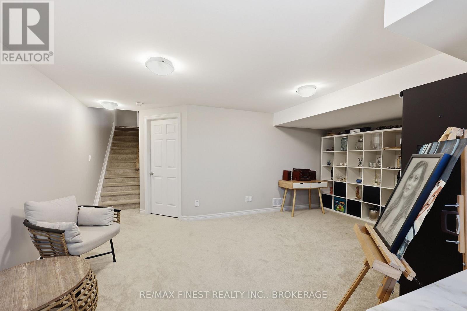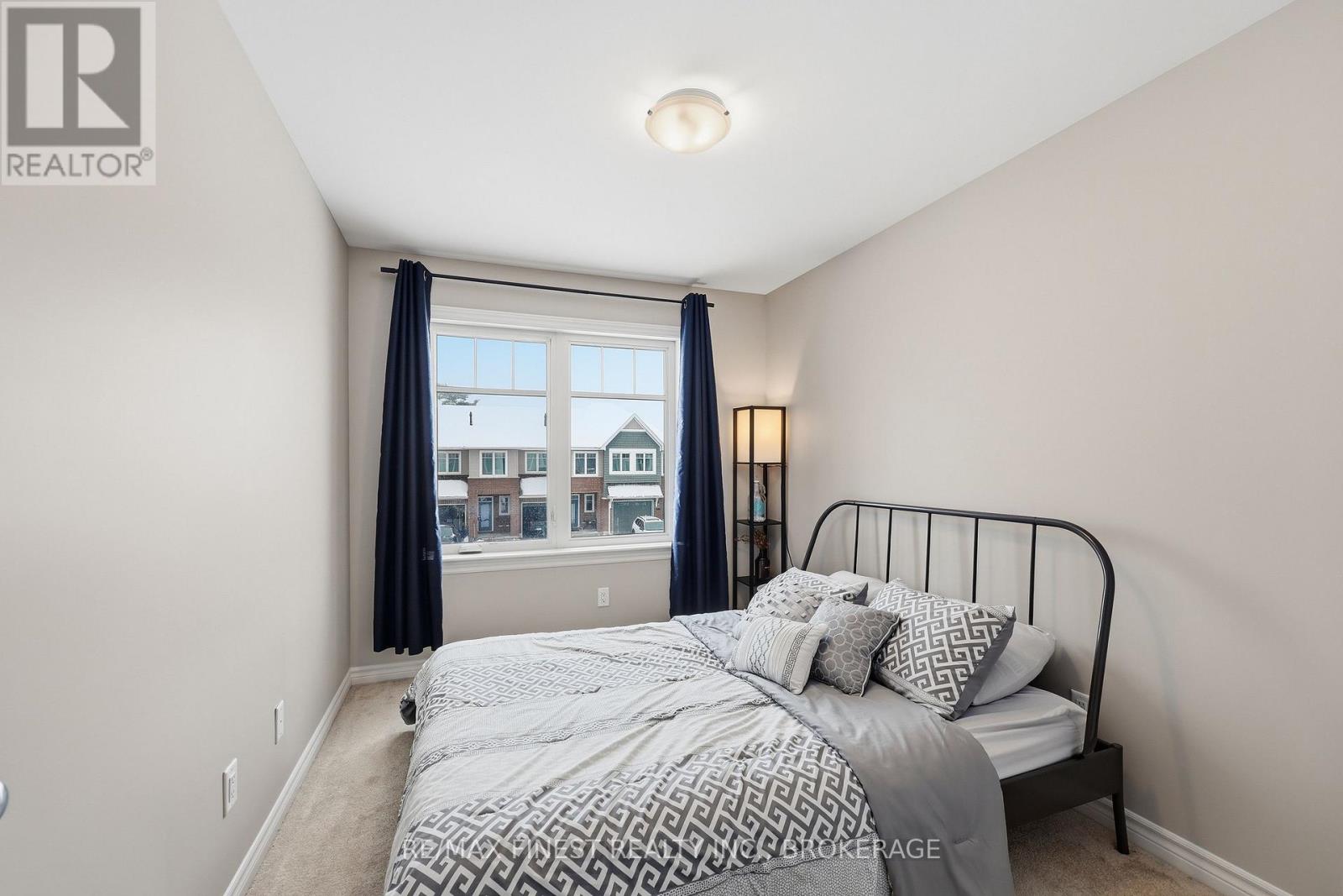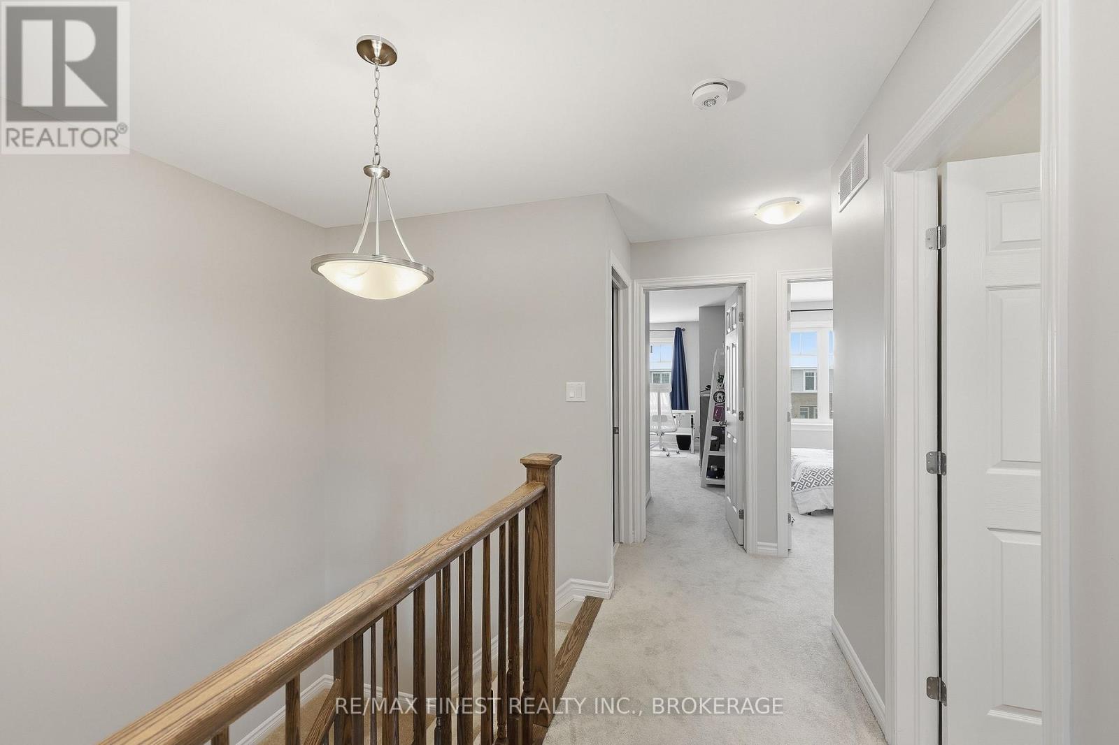 Welcome to this beautifully appointed 3-bedroom, 3-bathroom townhouse located in Kingston's west end. Designed with modern living in mind, this home offers high ceilings and an open-concept layout that's both spacious and inviting. The kitchen features quartz countertops, stainless steel appliances, and a stylish tile backsplash - perfect for everyday cooking or entertaining guests. Hardwood flooring spans the main level, while ceramic tile in all wet areas adds durability and easy maintenance. Relax by the cozy fireplace in the living room, framed by large transom windows and a patio door that flood the space with natural light. Upstairs, you'll find three comfortable bedrooms, including the primary bedroom with 4-piece ensuite, plus you'll enjoy the convenience of upper-level laundry. The finished rec room in the lower level provides added living space ideal for a family room, home gym, or office. Located close to schools, walking paths, west-end shops, and everyday amenities, this home combines comfort, style, and an excellent location. (id:64974)