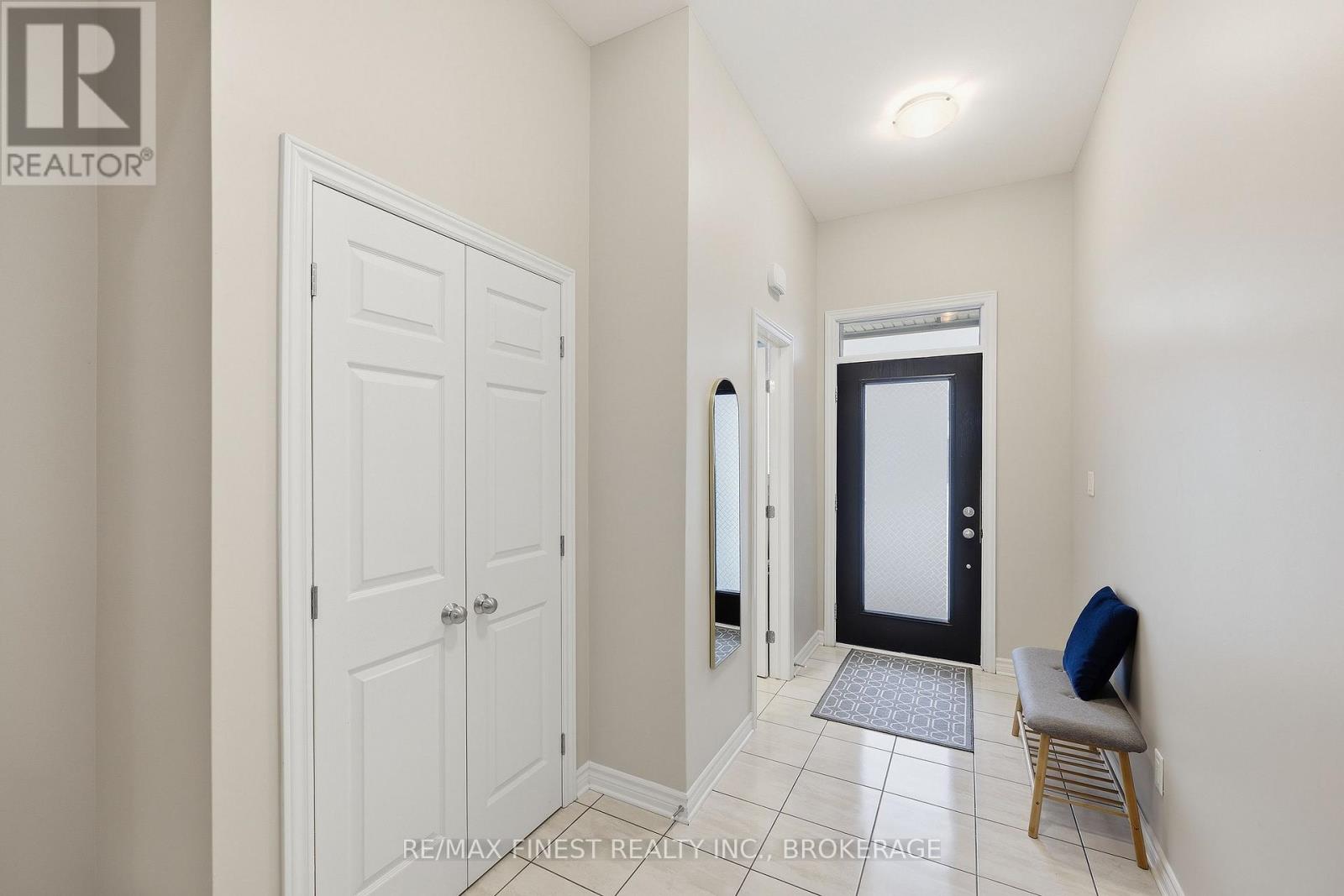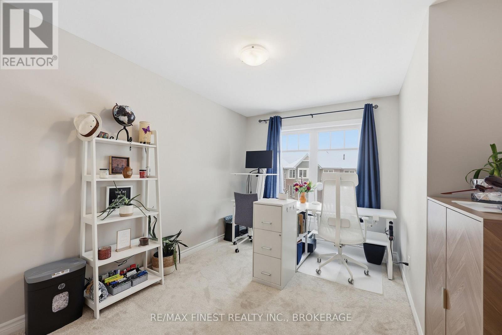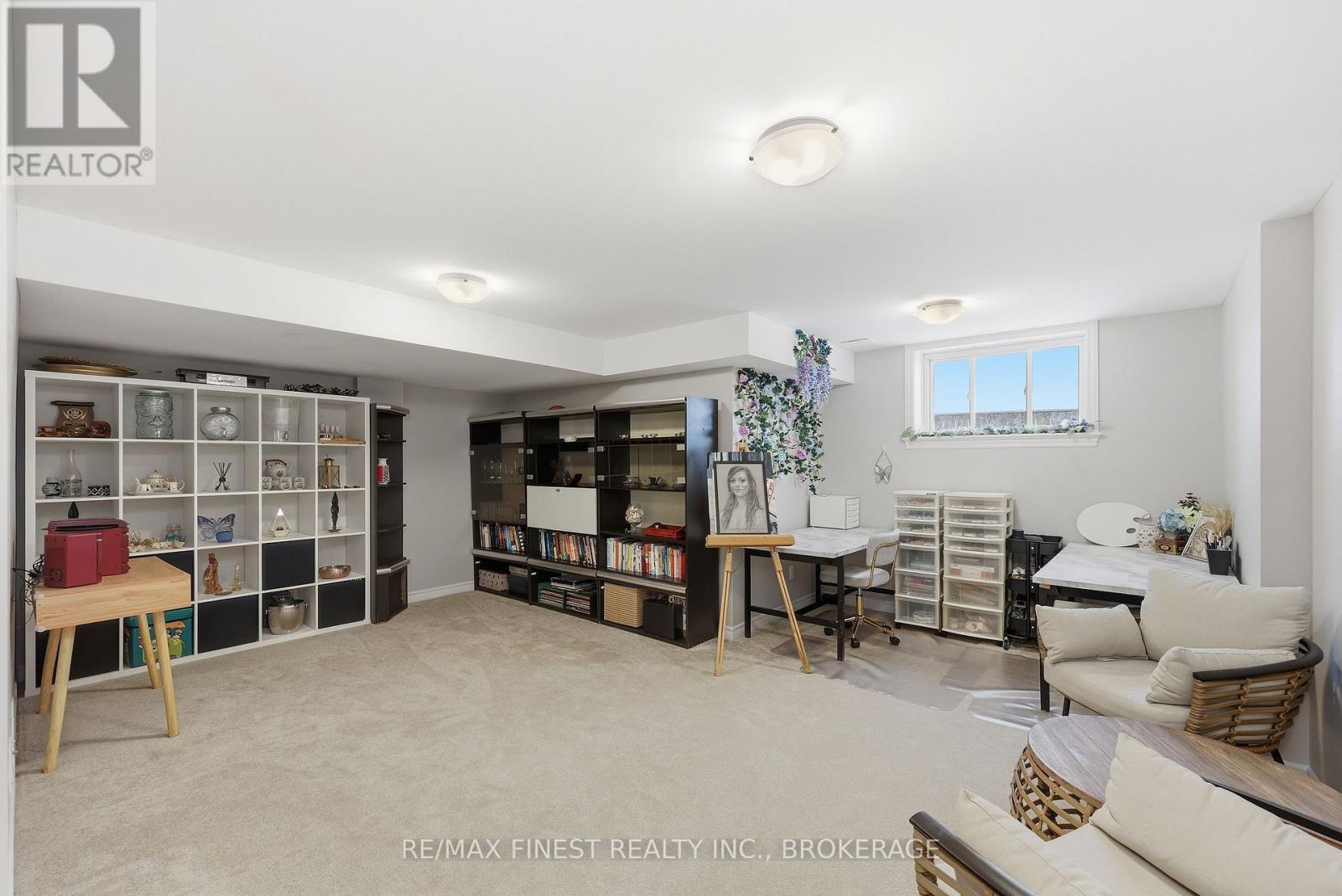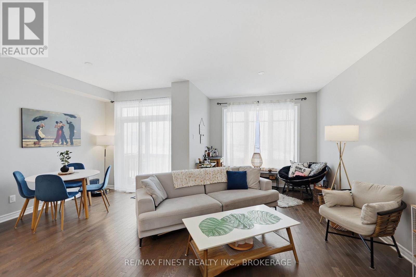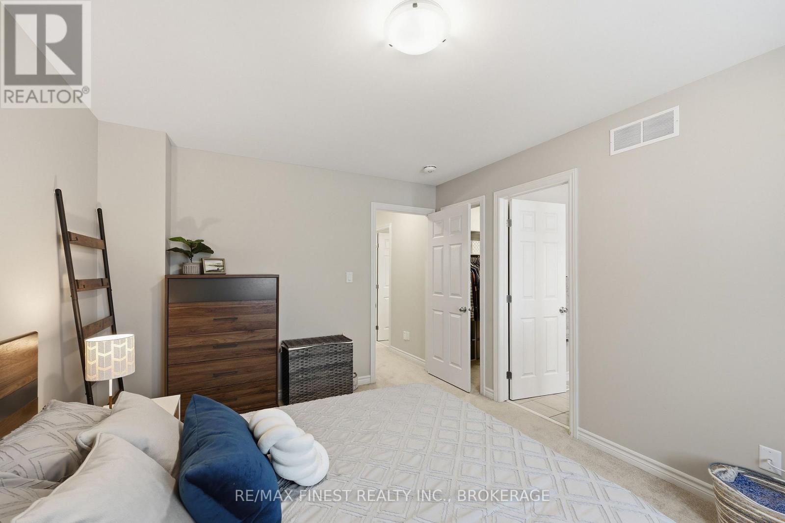 Welcome to this beautifully appointed 3-bedroom, 3-bathroom townhouse located in Kingston's west end. Designed with modern living in mind, this home offers high ceilings and an open-concept layout that's both spacious and inviting. The kitchen features quartz countertops, stainless steel appliances, and a stylish tile backsplash - perfect for everyday cooking or entertaining guests. Hardwood flooring spans the main level, while ceramic tile in all wet areas adds durability and easy maintenance. Relax by the cozy fireplace in the living room, framed by large transom windows and a patio door that flood the space with natural light. Upstairs, you'll find three comfortable bedrooms, including the primary bedroom with 4-piece ensuite, plus you'll enjoy the convenience of upper-level laundry. The finished rec room in the lower level provides added living space ideal for a family room, home gym, or office. Located close to schools, walking paths, west-end shops, and everyday amenities, this home combines comfort, style, and an excellent location. (id:64974)