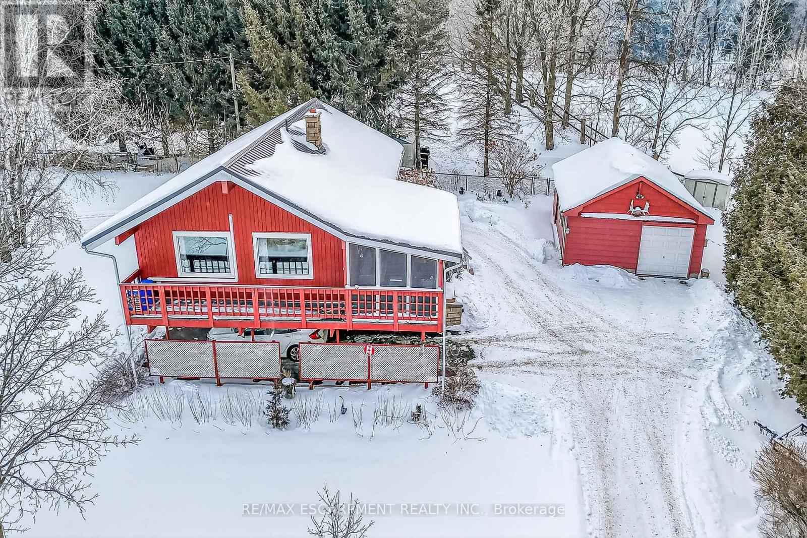 Envision life in Norfolk County - Ontario's Garden County - 10 mins south of Simcoe's amenities - 15 min drive to Port Dover's attractions - in-route to popular destination villages & towns dotting Lake Erie's Golden South Coast. Turn your vision to reality as you discover this well maintained, uniquely designed chalet style home oozing w/country charm positioned majestically on 0.56ac lushly landscaped lot nestling up to towering pines & hardwoods. Enjoys 63.78ft of frontage on Old Brock Rd (known as Vittoria Rd) & Mill Pond Rd - lightly travelled road ideal for walking, ATVing or snowmobiling - loaded w/nature trails dead ending at Young's Creek. Recycled asphalt circular driveway extends past home & det. garage continuing to 2nd entrance off Mill Pond Rd. Embrace outdoor natural beauty in abundance from lower 12x20 freshly stained deck & similar sized upper deck boasting screened-in sun room accessing 2nd level living area introducing 933sf of freshly redecorated, classic décor highlighted w/impressive great room ftrs vaulted ceilings, newer low maintenance flooring (thru-out main floor), ductless heat/cool HVAC & 5 oversized windows letting the "sun shine in". Leads to galley kitchen sporting wood cabinetry, adjacent dining room & stylish updated 3pc bath culminating w/spacious primary bedroom. Convenient staircase descends to 649sf finished grade level incs roomy guest bedroom, rustic family room/poss. 3rd bedroom enhanced w/barn board wainscot, 2pc bath, large laundry room, storage/utility room & walk-out to attached 284sf carport. Mechanics or Hobbyists will appreciate 22x30 det. garage/shop incs insulated front bay, sizeable 2nd bay, conc. flooring, hydro, 2 roll-up doors & roof-2025. Extras-"Navien" n/g hot water boiler HVAC, metal roof-2020, vinyl windows, n/g stand-by generator, 2 garden sheds, excellent drilled well & septic. (hot tub negotiable). Experience a slice of Paradise - with Spring nearing - make that LIFE-STYLE change you have "DREAMT" a (id:64974)