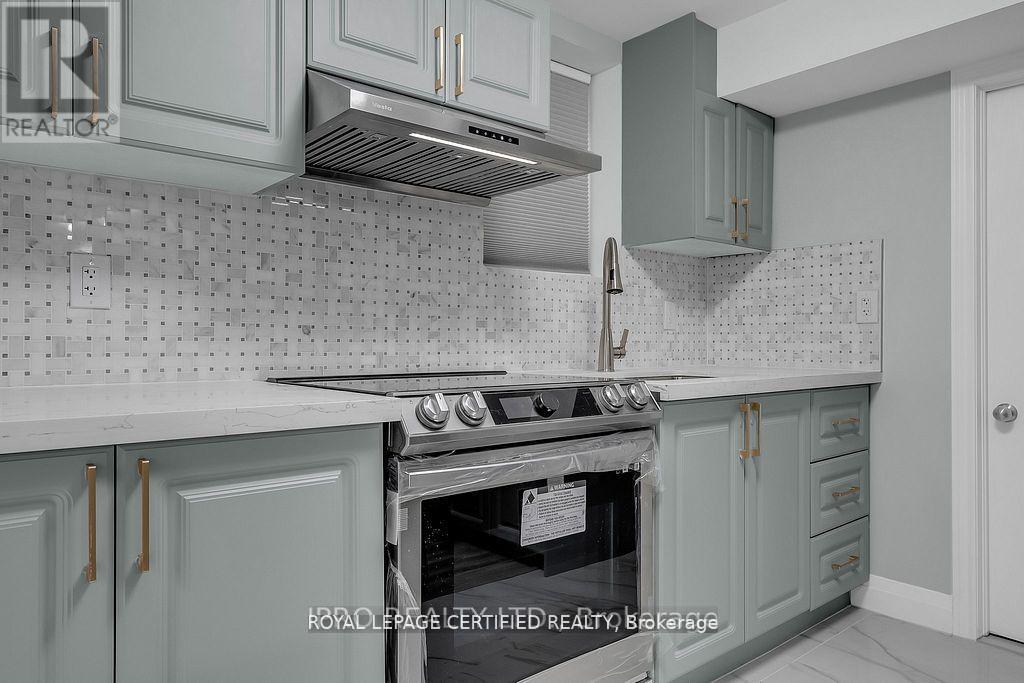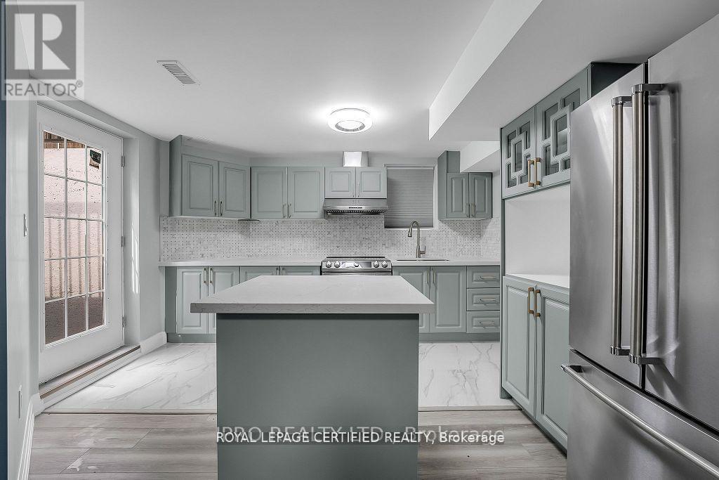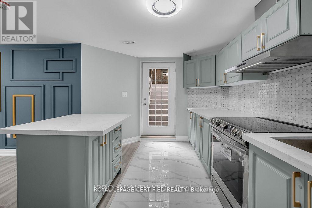 Renovated Finished Legal Basement with Private Separate Entrance! 2 Bedroom 2 Bathroom, Open Concept with Contemporary Finishes Throughout Including a Tastefully Designed Stunning Kitchen with Quartz Countertop and Kitchen Island is movable, Marble Backsplash with Top of the Line Stainless Steel Appliances and a Large Pantry Leading you to a Functional Living Area with a Stunning Accent Wall. LED High End Light Fixtures throughout, Large Windows allowing tons of Natural Light to Come In. Bathrooms with Stunning Vanity and Finishes Including LED Multi-Colour Make Up Mirror. Both Bedrooms with Large Mirrored Closets. (id:64974)