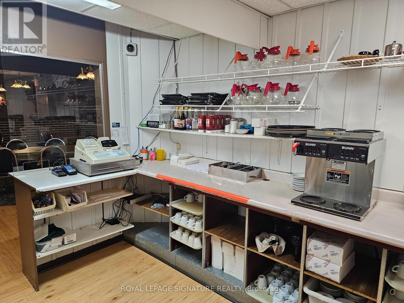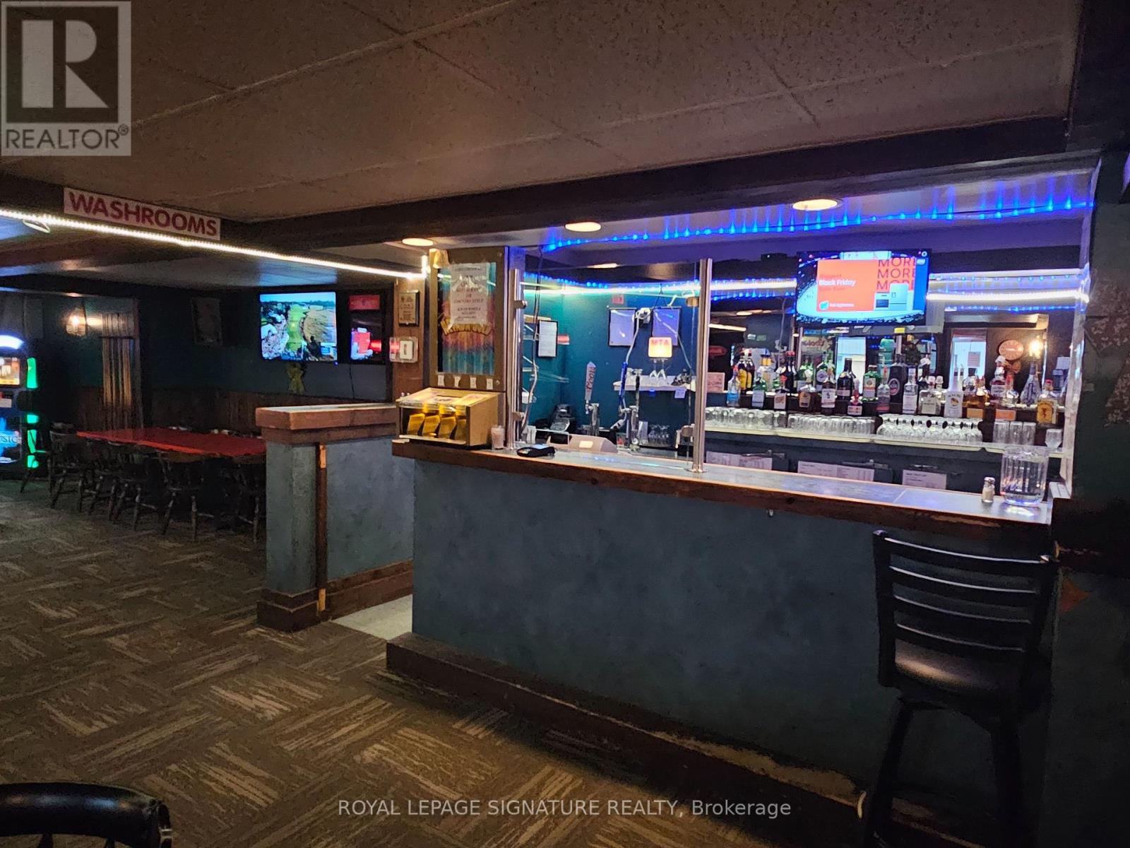 Gervais Restaurant, Gervais Tavern, and Country Style together form a well-established group of three owner-operated restaurant businesses located in the heart of downtown Sturgeon Falls. These long-standing operations are recognized locally as key dining and gathering destinations and benefit from strong community support and repeat clientele. Gervais Restaurant is one of the busiest dining spots in town, offering a popular menu of North American and Chinese cuisine. Gervais Tavern operates as a classic neighbourhood pub with pool tables and a loyal local following, while the Country Style location-no longer paying royalties-continues to serve as a central hub for coffee and casual meetups. All three restaurants are supported by a massive shared commercial kitchen featuring four hood systems totaling 42 ft (16 + 16 + 6 + 4), three walk-in coolers/freezers, and a drive-thru window. The combined liquor license allows for a total capacity of 441. This is a rare opportunity to acquire three established, complementary restaurant businesses operating together at scale. Please do not go direct or speak to staff. (id:64974)