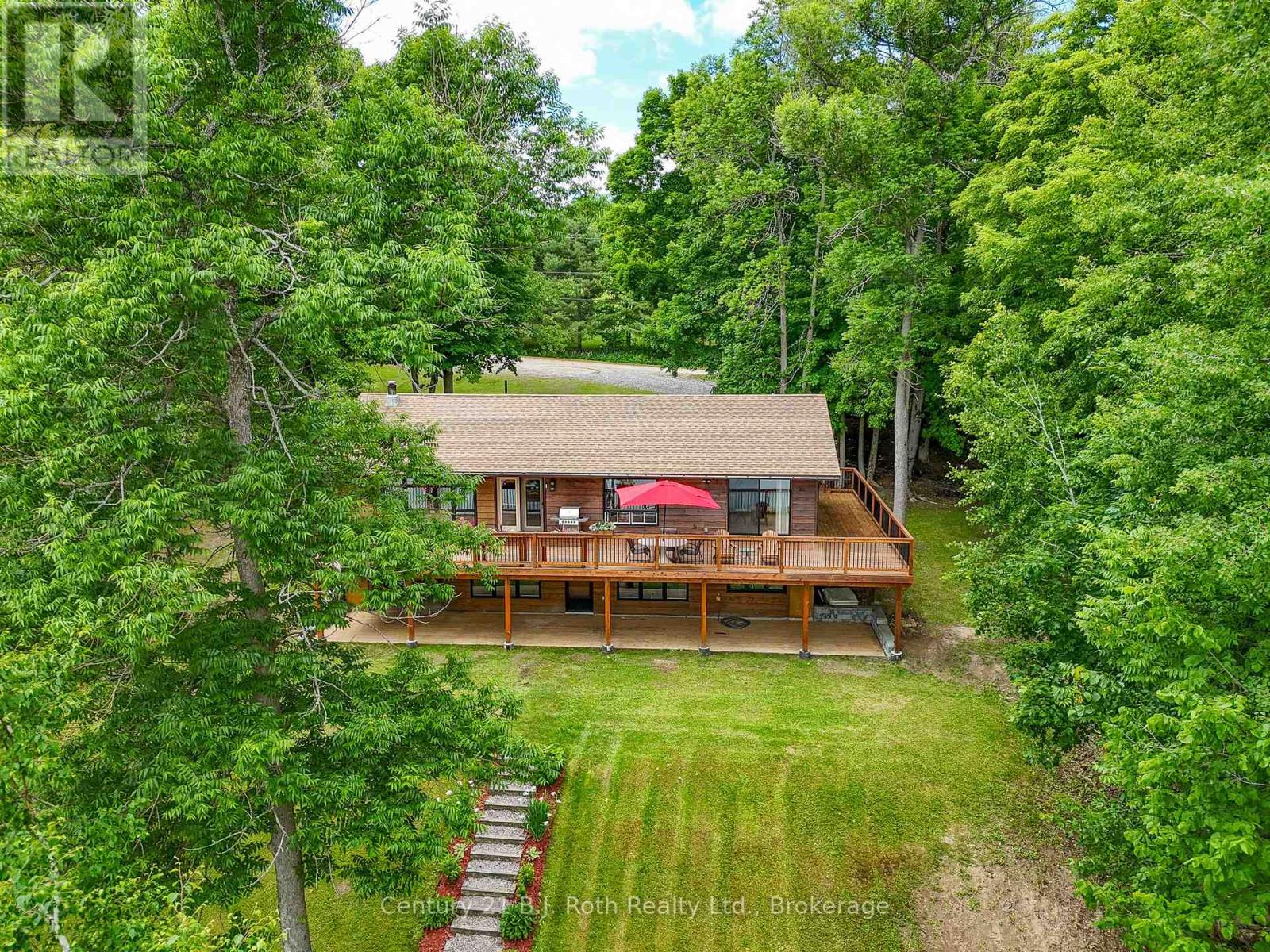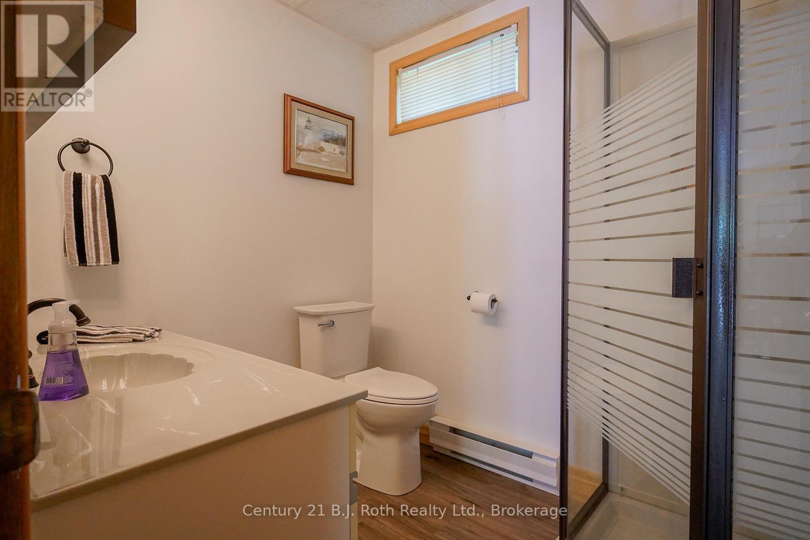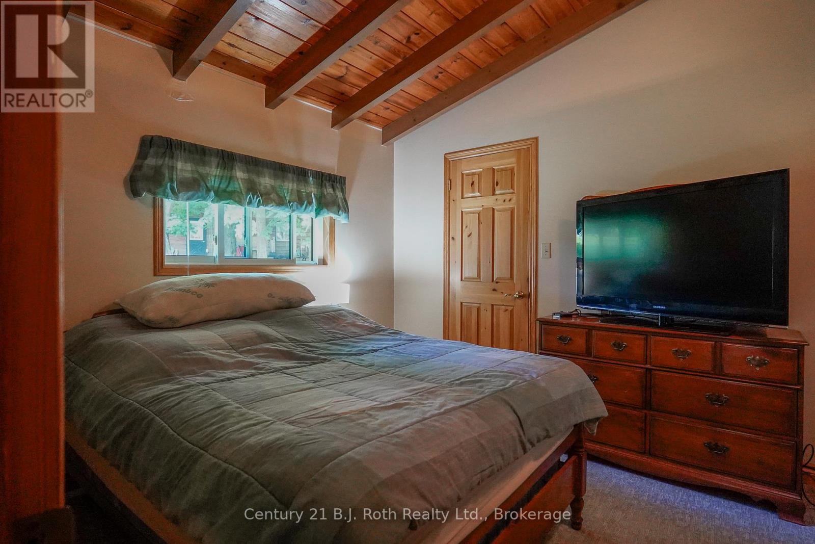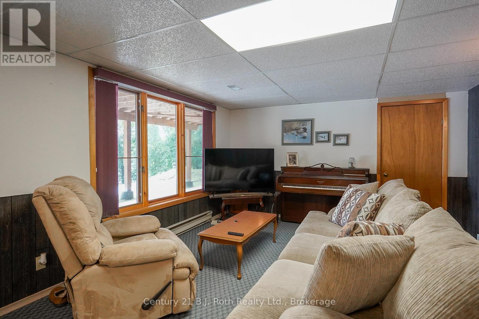 Welcome to this beautifully maintained year-round waterfront home on Restoule Lake, cherished by the same family for decades. Situated on over an acre of landscaped grounds, the property features mature trees, stunning rock outcroppings, a manicured lawn, and a gentle slope to approximately 200 ft of shoreline on the highly sought-after 14 km long Restoule Lake. Offering approximately 2,300 sq ft of finished living space, this home includes 4 bedrooms and 2 bathrooms. The main floor features a bright open-concept layout designed to capture lake views, with an eat-in kitchen, dining room (or office) with walkout, and a living room with walkout to the full-length elevated deck-perfect for entertaining or relaxing while enjoying the waterfront scenery. A woodstove adds warmth and charm for cozy winter evenings. Two bedrooms (one with walk-in closet), a 3-piece bath, and ample storage complete the main level. The finished walkout lower level offers a spacious family room, laundry area, office nook, two additional bedrooms, and a second 3-piece bathroom. A workshop/utility room with overhead door provides easy access for storage and recreational equipment. Additional features include a detached 32'3" x 24'3" insulated and heated garage/shop with 60-amp panel and a finished loft above with new flooring, ideal for guests or studio space. The home is serviced by 200-amp electrical, forced-air propane furnace (new 2026), central air, central vacuum, septic system, and lake water with UV system. Updated flooring and eavestroughs with gutter guards. High-speed internet and Bell Satellite available. Restoule Lake offers excellent swimming, boating, and fishing including Pike, Bass, Pickerel, Lake Trout, and world-class Muskie. Close to ATV and OFSC trails, Restoule Provincial Park, and acres of Crown land. Located on a quiet private road ($200/year maintenance) with friendly neighbours. Quick closing available. Excellent short-term rental opportunity. (id:64974)
