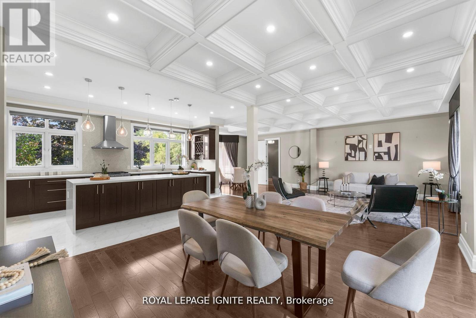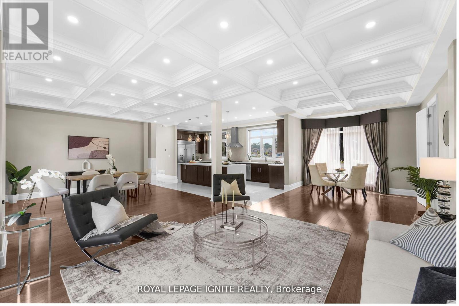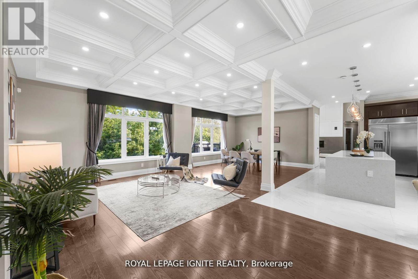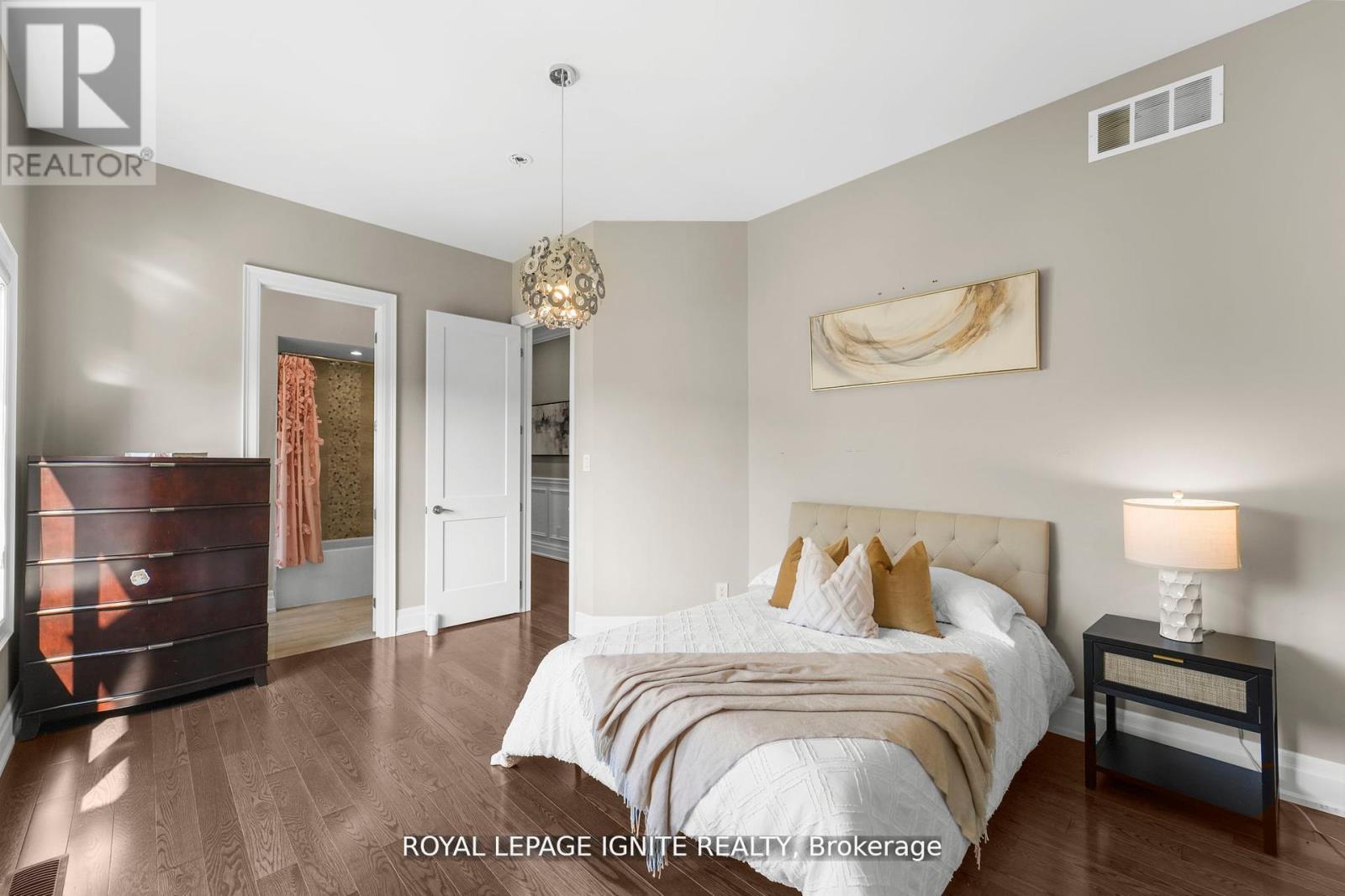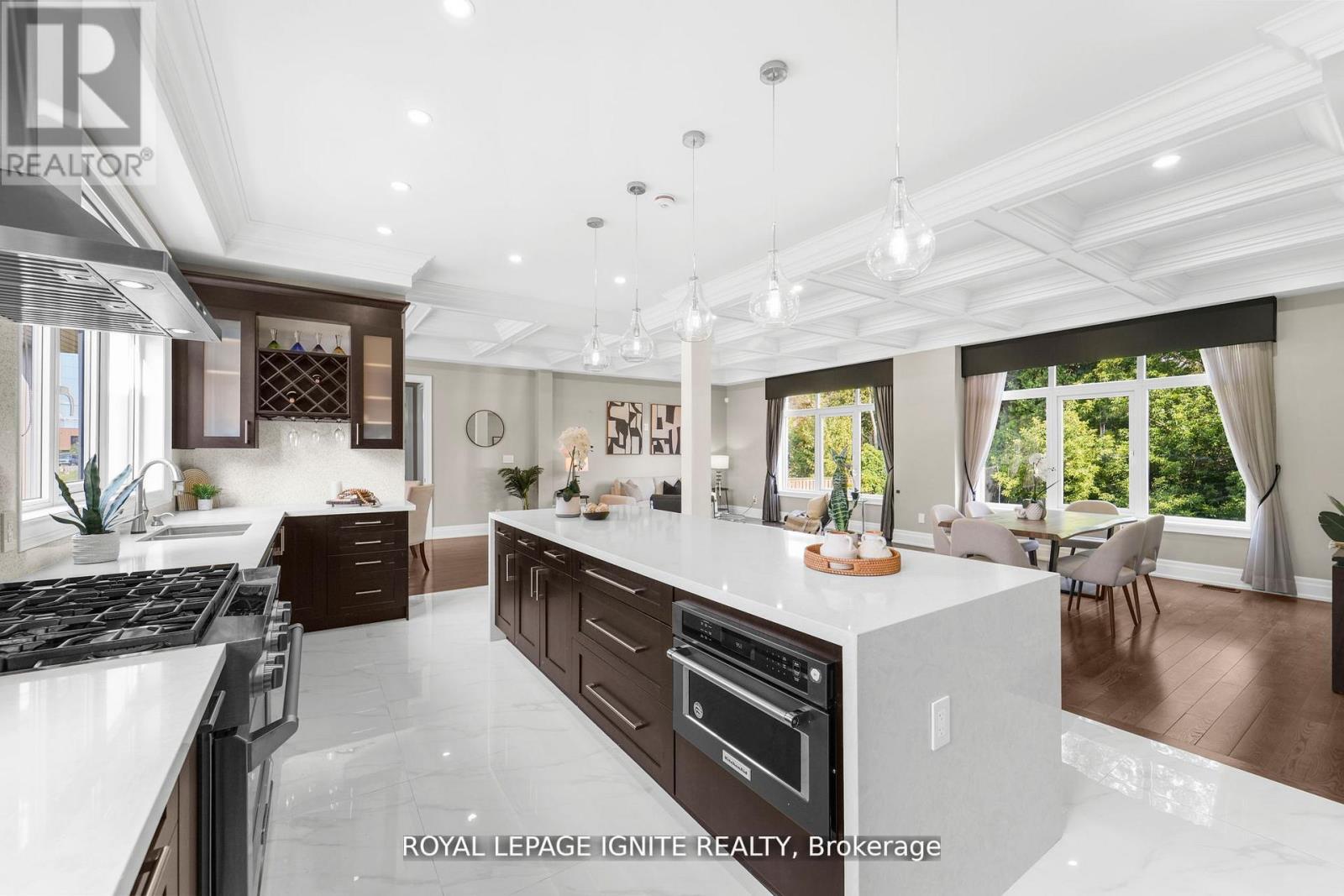 Welcome to this stunning custom-built estate home, just over five years new! Over 5000 sq ft of living space. This luxurious 5 +1 bedroom, 6 bathroom residence offers exceptional design, premium finishes, and a peaceful setting with Ravine views. Commercial zoning as well in Courtice Secondary Plan. Step into the grand foyer with soaring 22-foot ceilings, setting the stage for the open, light-filled interior. The living room features dramatic 18-foot ceilings and a striking gas fireplace, creating a warm and elegant space to relax or entertain. A wide staircase with sleek glass railings adds to the modern aesthetic. The chef's kitchen is a showstopper, complete with a 10-foot waterfall island, gas stove, and high-end stainless steel KitchenAid appliances ideal for gourmet cooking and hosting. Upstairs, three spacious bedrooms each feature their own ensuite bathroom, offering comfort and privacy for all. The primary suite includes a large walk-in closet, a luxurious 5-piece ensuite, and breathtaking views of nature. A versatile fourth & fifth bedrooms are conveniently located on the main floor. Newly renovated basement with separate entrance. Massive living/dining space. New stainless steel appliances. Huge bedroom with a walk-in closet and window. Step outside to enjoy a private deck and a massive backyard overlooking a tranquil creek perfect for relaxing or entertaining in a natural setting. View of the meandering creek and mature trees from the private backyard. Located close to all amenities, including shopping, dining, schools, and places of worship. Commuters will love the easy access to Highways 401, 418, and 407, with GO Transit and Durham Region Transit right at your doorstep. Millennium Trail access. Walk to the Courtice Rec Centre with a pool and Library. Don't miss this rare opportunity to live in a truly one-of-a-kind property that blends luxury living with everyday convenience! (id:64974)