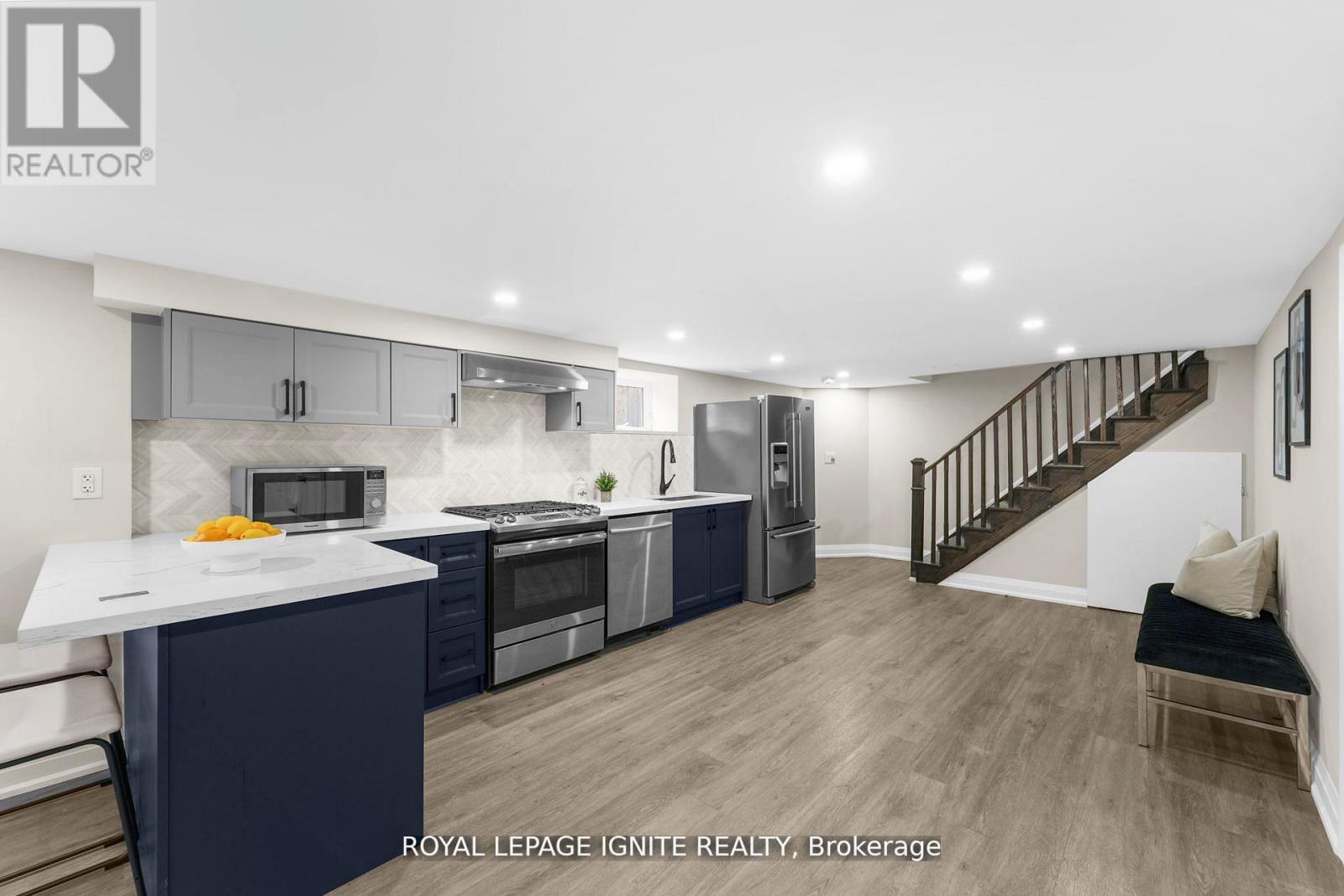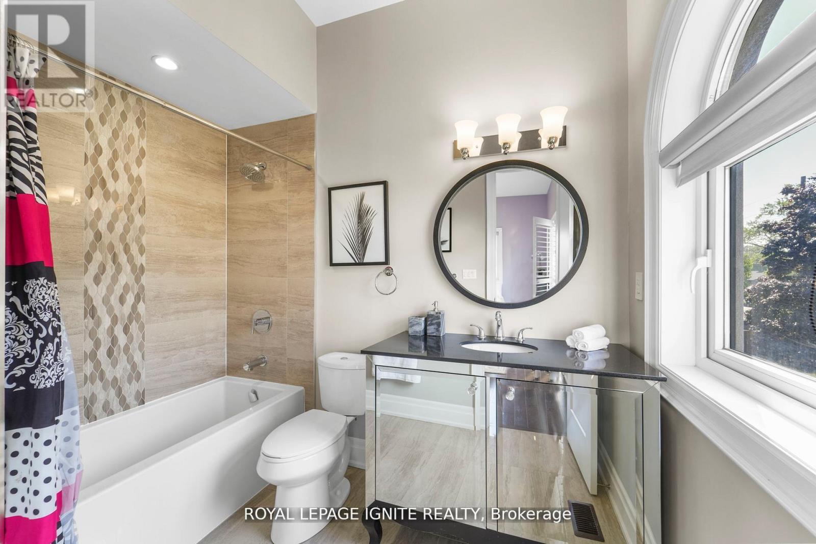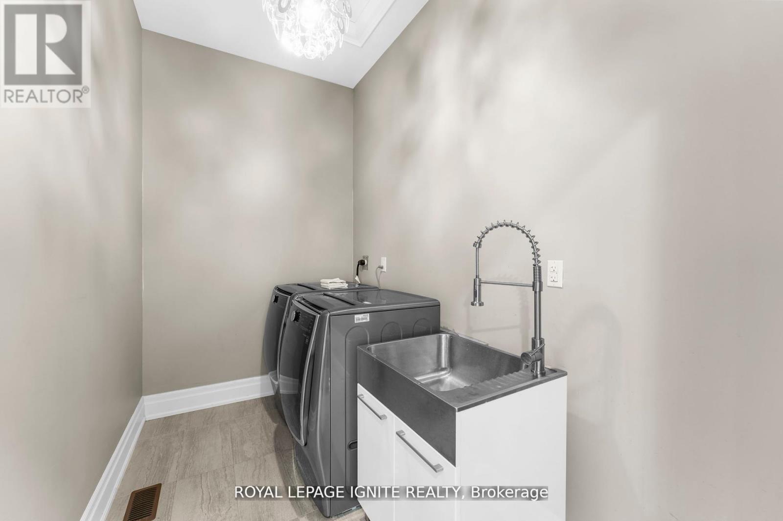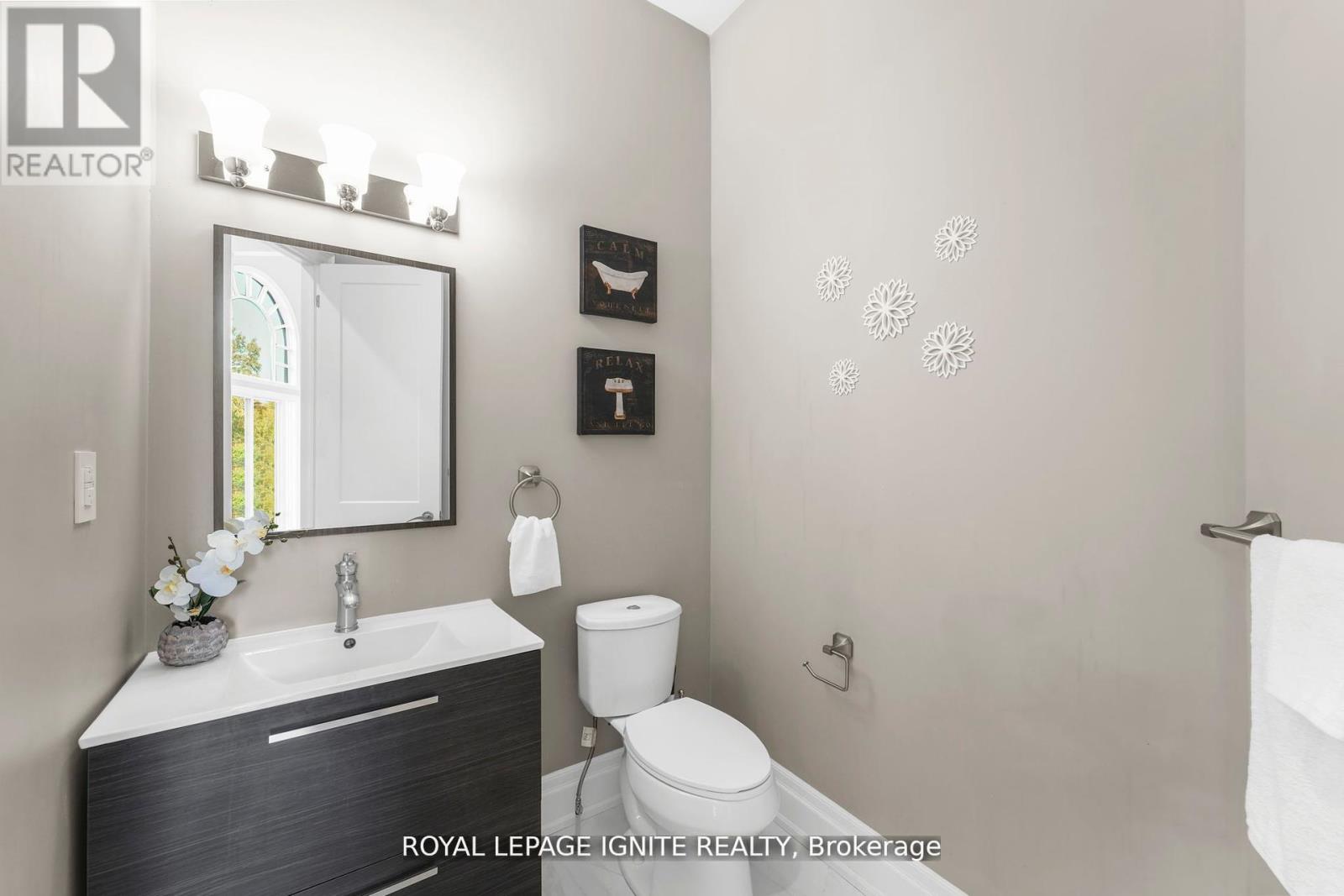 Welcome to this stunning custom-built estate home, just over five years new! Over 5000 sq ft of living space. This luxurious 5 +1 bedroom, 6 bathroom residence offers exceptional design, premium finishes, and a peaceful setting with Ravine views. Commercial zoning as well in Courtice Secondary Plan. Step into the grand foyer with soaring 22-foot ceilings, setting the stage for the open, light-filled interior. The living room features dramatic 18-foot ceilings and a striking gas fireplace, creating a warm and elegant space to relax or entertain. A wide staircase with sleek glass railings adds to the modern aesthetic. The chef's kitchen is a showstopper, complete with a 10-foot waterfall island, gas stove, and high-end stainless steel KitchenAid appliances ideal for gourmet cooking and hosting. Upstairs, three spacious bedrooms each feature their own ensuite bathroom, offering comfort and privacy for all. The primary suite includes a large walk-in closet, a luxurious 5-piece ensuite, and breathtaking views of nature. A versatile fourth & fifth bedrooms are conveniently located on the main floor. Newly renovated basement with separate entrance. Massive living/dining space. New stainless steel appliances. Huge bedroom with a walk-in closet and window. Step outside to enjoy a private deck and a massive backyard overlooking a tranquil creek perfect for relaxing or entertaining in a natural setting. View of the meandering creek and mature trees from the private backyard. Located close to all amenities, including shopping, dining, schools, and places of worship. Commuters will love the easy access to Highways 401, 418, and 407, with GO Transit and Durham Region Transit right at your doorstep. Millennium Trail access. Walk to the Courtice Rec Centre with a pool and Library. Don't miss this rare opportunity to live in a truly one-of-a-kind property that blends luxury living with everyday convenience! (id:64974)