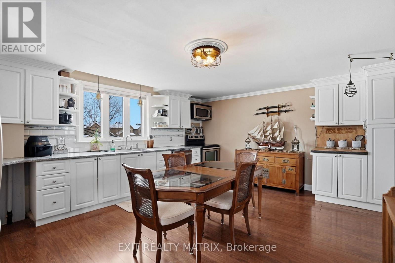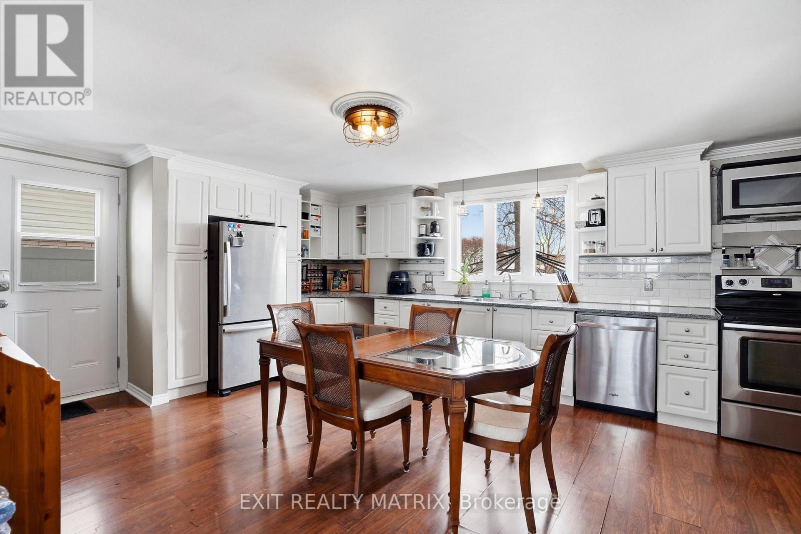 Located in the heart of Rockland, just steps to schools, parks, shopping, restaurants, and everyday amenities, this well-maintained duplex offers the perfect blend of convenience, comfort, and peaceful living. With a charming front porch and paved driveway, the curb appeal welcomes you from the moment you arrive. Featuring two well-appointed dwellings, this property is perfect for investors or multi-generational living. Dwelling 1 welcomes you with an inviting foyer leading to a bright kitchen showcasing a beautiful accent wall, abundant cabinetry and counterspace, a sit-at island, and all appliances included. The dining room is filled with natural light from a large window. Upstairs offers a spacious primary bedroom, three additional bedrooms, and a 4-piece bathroom. The bright lower level features a cozy living room, 3-piece bathroom, laundry, and ample storage space. Attached to dwelling 1 is a cozy and bright studio in-law suite with a separate entrance, complete with a full kitchen, appliances included, and its own private living space - ideal for extended family or additional rental income . Dwelling 2 offers a welcoming foyer, a large kitchen with stainless steel appliances included and a living room with fireplace and rustic accent wall. The second level features a primary bedroom, an additional bedroom, and a 4-piece bathroom. The lower level includes a recreational room, 3-piece bathroom, laundry, and storage. Enjoy two fully fenced backyards, deck, gazebo, and shed - offering privacy and outdoor enjoyment for all dwellings. (id:64974)