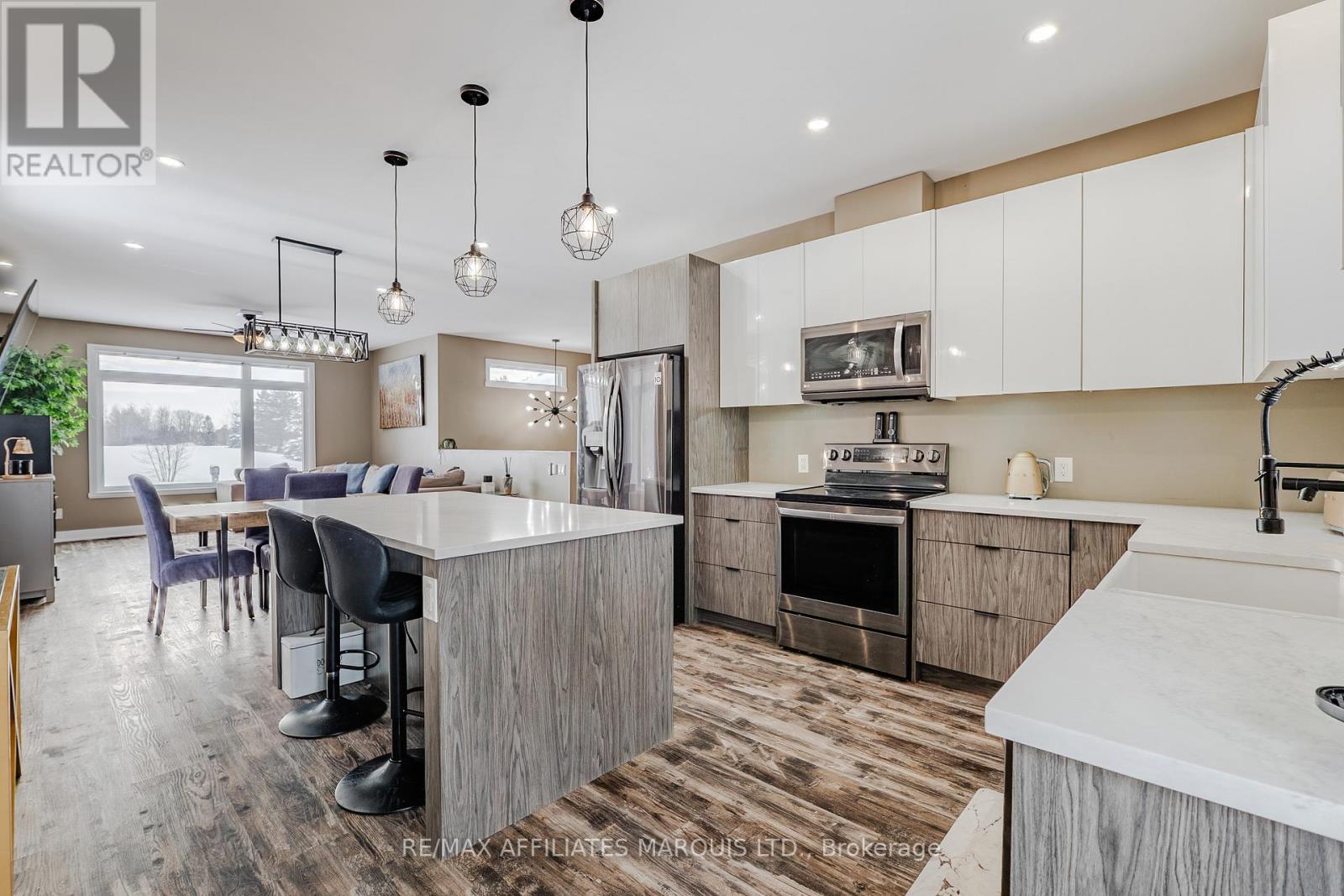 Welcome to 16939 Eighth Road - a stunning custom-built bungalow in the heart of peaceful Moose Creek, Ontario, offering the perfect blend of country tranquility and convenient access to urban centres. This beautifully designed home boasts 4 generous sized bedrooms, 3 full bathrooms and an inviting open-concept kitchen, dining & living space - ideal for both everyday living and entertaining. Enjoy the warmth of the gas fireplace, tons of natural light, easy-flowing layout and a private primary suite with a luxurious four-piece ensuite and walk-in closet. The fully finished lower level provides a generous recreation room, additional bedrooms and a third bathroom with laundry, adding comfort and versatility for family or guests. Set on a large lot with no rear neighbours and abundant outdoor space, this property delivers that rare combination of privacy and convenience - under 40 minutes to Ottawa and 30 minutes to Cornwall. A perfect place to call home! Don't miss out - this one checks all the boxes. As per form 244 all offers are to contain a 24 hour irrevocable clause. (id:64974)
