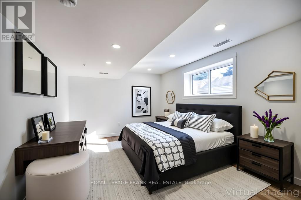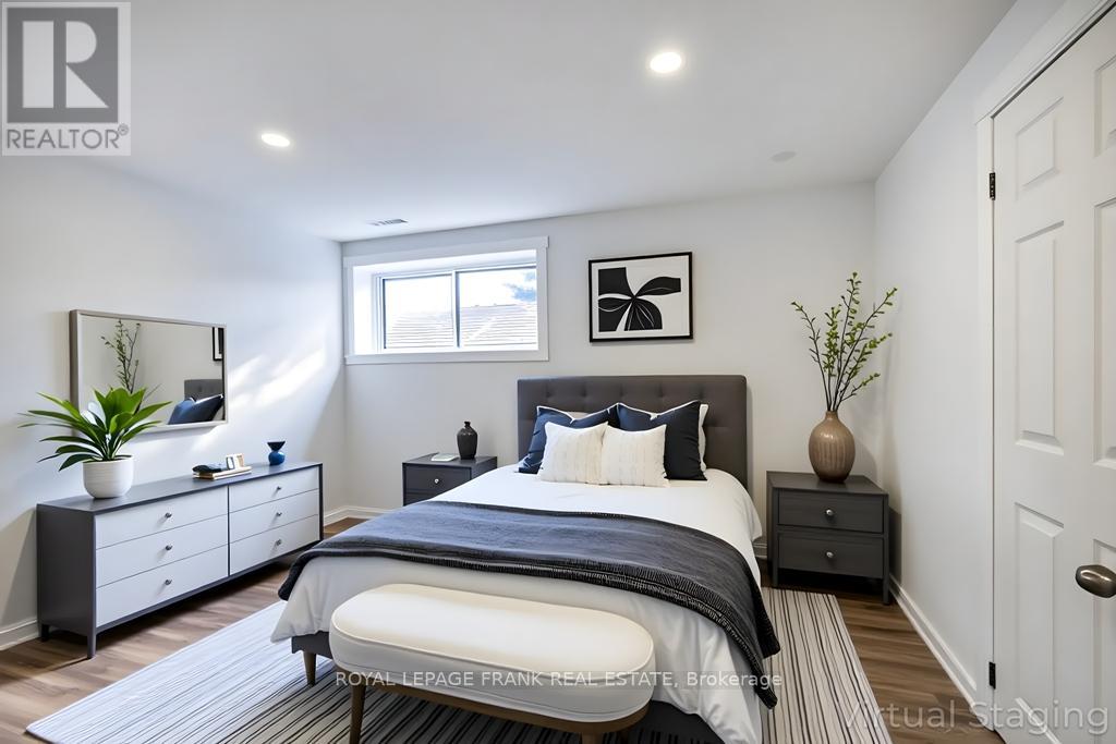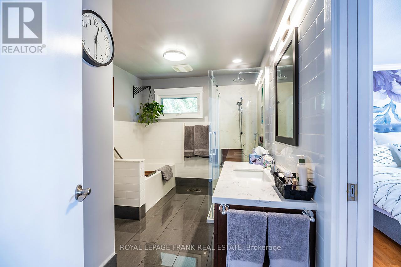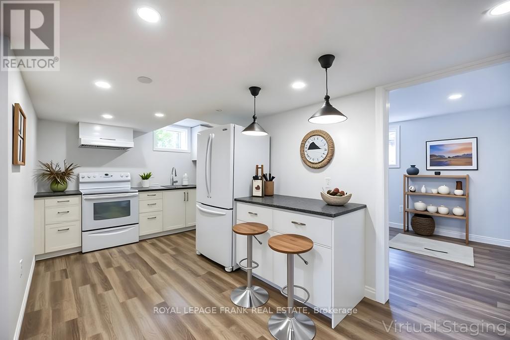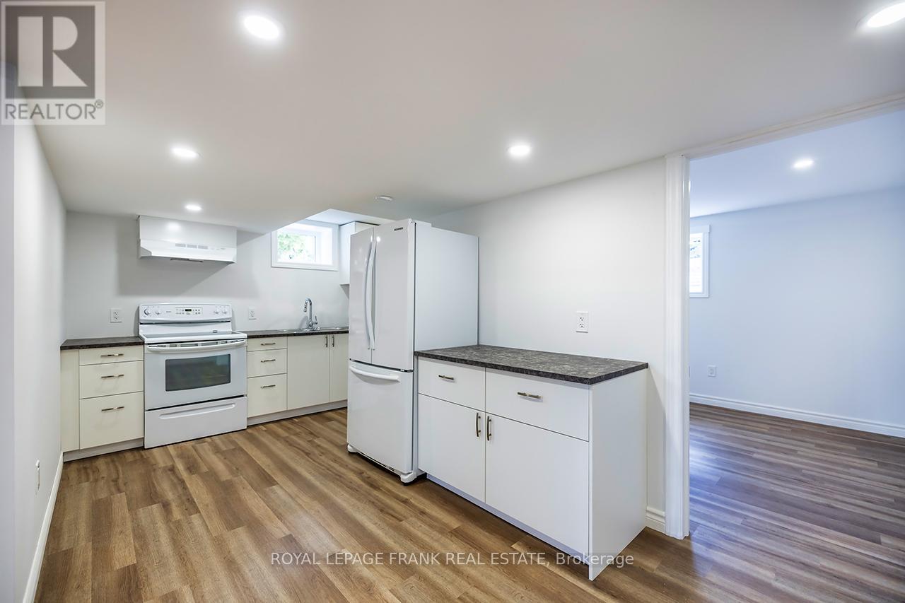 Beautifully renovated 2+2 bedroom ranch-style bungalow with finished basement and a legal 1,200 sq ft 2-bedroom apt. with private entrance. Come home to timeless Georgia Marble brick, aluminum siding, and mature maple trees. An 11-car driveway with turnaround, oversized 2-car garage, and landscaped walkway welcome you home. Inside, the spacious Foyer features granite floors and a double closet with custom shelving. The bright, open main floor showcases a Kitchen with expansive quartz counters, double sinks, range hood, stainless appliances, glass tile backsplash and smart cabinetry with drawers within drawers, and pullout pantry. A Powder Room is conveniently located near the Garage entrance. Main floor Laundry offers its own fridge, freezer, built-ins, and walkout to the fenced yard with new patio and gas BBQ hookup. The large Dining Room opens to a 3-season Sunroom, perfect for family gatherings and sunset views. Enjoy the spacious Living Room or retreat to the cozy Family Room/Den with a gas fireplace, tray ceiling, ceiling fan, and a unique wall safe. The primary Bedroom features his & hers closets, ceiling fan, and semi-ensuite bath with soaker tub and separate shower. A generous Guest Bedroom completes the main level, highlighted by hardwood floors and crown moulding throughout. Downstairs, find a Rec Room/Gym, and abundant storage. The home's true bonus is the brand-new, self-contained legal apartment-1,200 sq ft with full kitchen, Laundry, Living/Dining area, 4-pc Bath, and 2 large Bedrooms, each with double closets, plus private yard with shaded sitting area. Outside, enjoy a fenced yard with 10'x10' shed with ramp, ideal for tools or seasonal storage. The oversized garage includes two entrances to the home, three service doors, workbenches, cabinetry, utility sink with hot and cold water, and a powered 10' x 10' "drive Shed" with roll-up door. Warm, inviting, and filled with possibilities-this isn't just a house, it's a home. Come see for yourself! (id:64974)