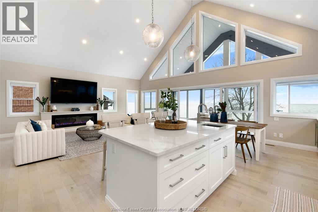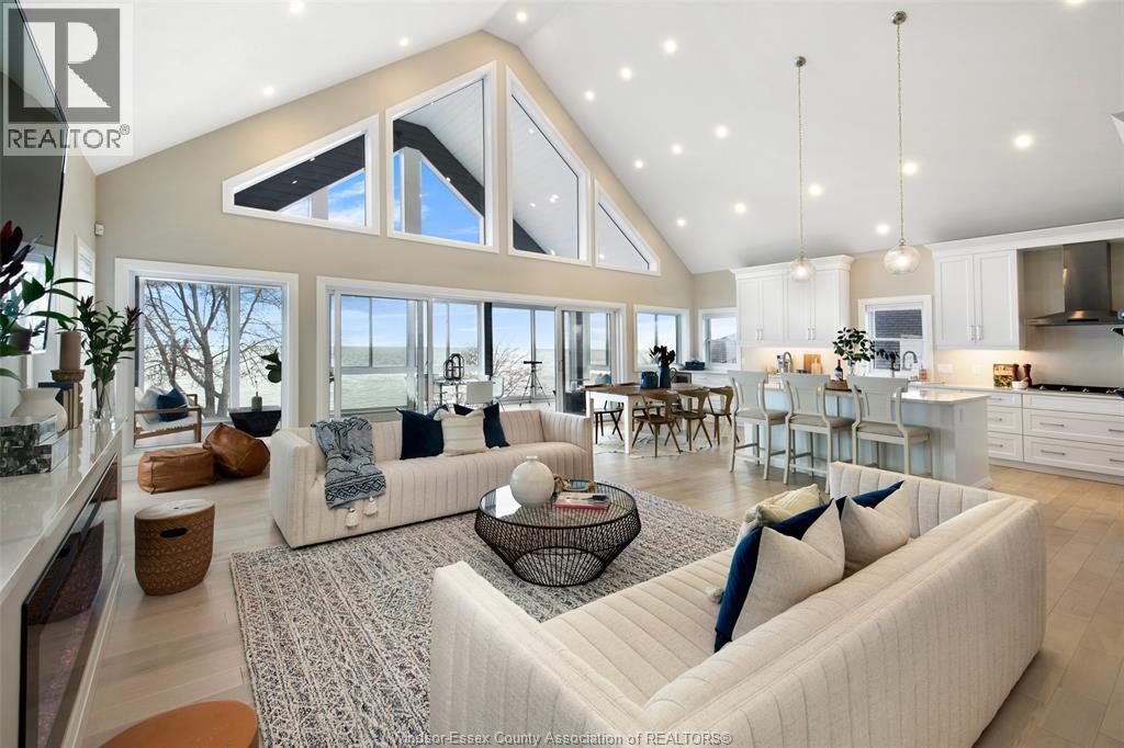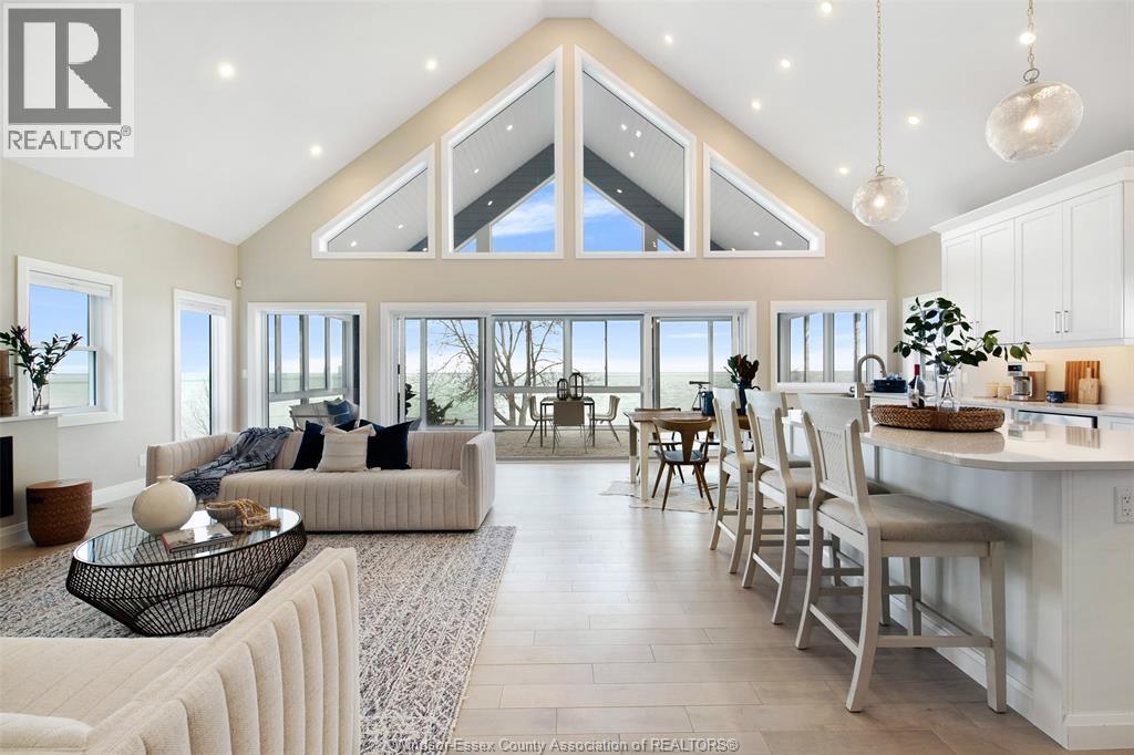 Welcome to 1696 Caille Ave!!! Built in 2020, this custom 2 story lakefront home w/elevator is truly one of a kind. The panoramic views of Lake St. Clair from this home are truly incredible. The second story features a huge lakefront open concept designer kitchen/living room/sun room with soaring ceilings, master bedroom with executive ensuite, huge walk-in & roadside sunroom, 2nd and 3rd bedroom/office, 4pc. bath and large laundry room. The main level features a massive fully finished dream garage over 50' deep with 14' ceilings, heated floors and 16'X 12' insulated door. The main level also features an executive lakefront mother-in-law suite with separately zoned heated floors, full kitchen, bathroom and 14' ceilings which leads to a large covered lakefront patio. Other features include cement waterfront patio, break wall with splash guard, 290' deep lot, large driveway, bonus detached garage and walking distance to parks, beach, marina and the beautiful town of Belle River. (id:64974)
