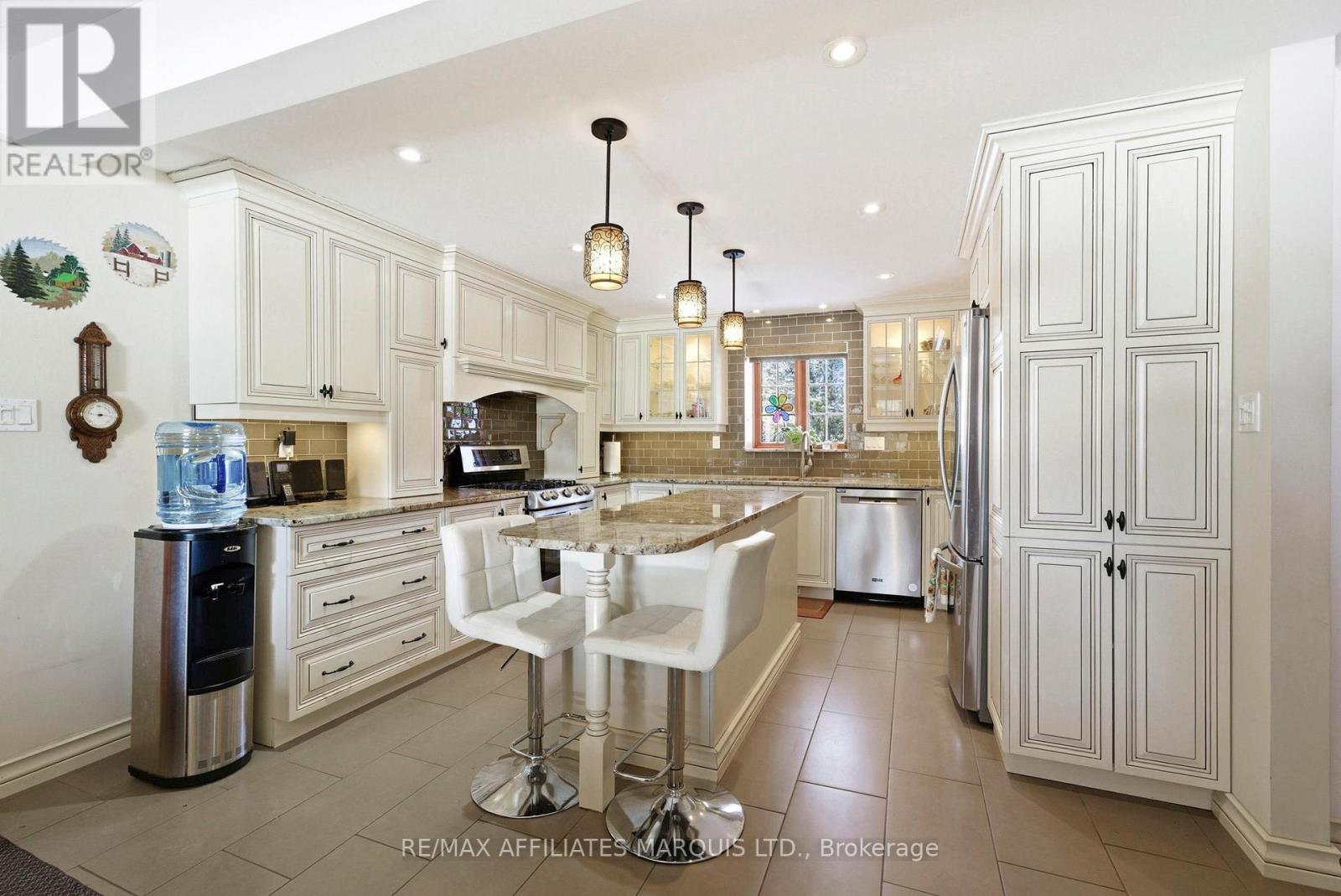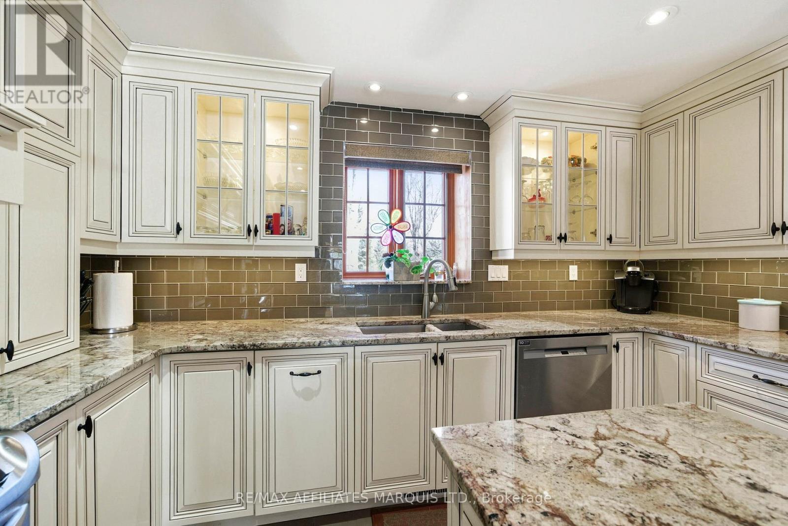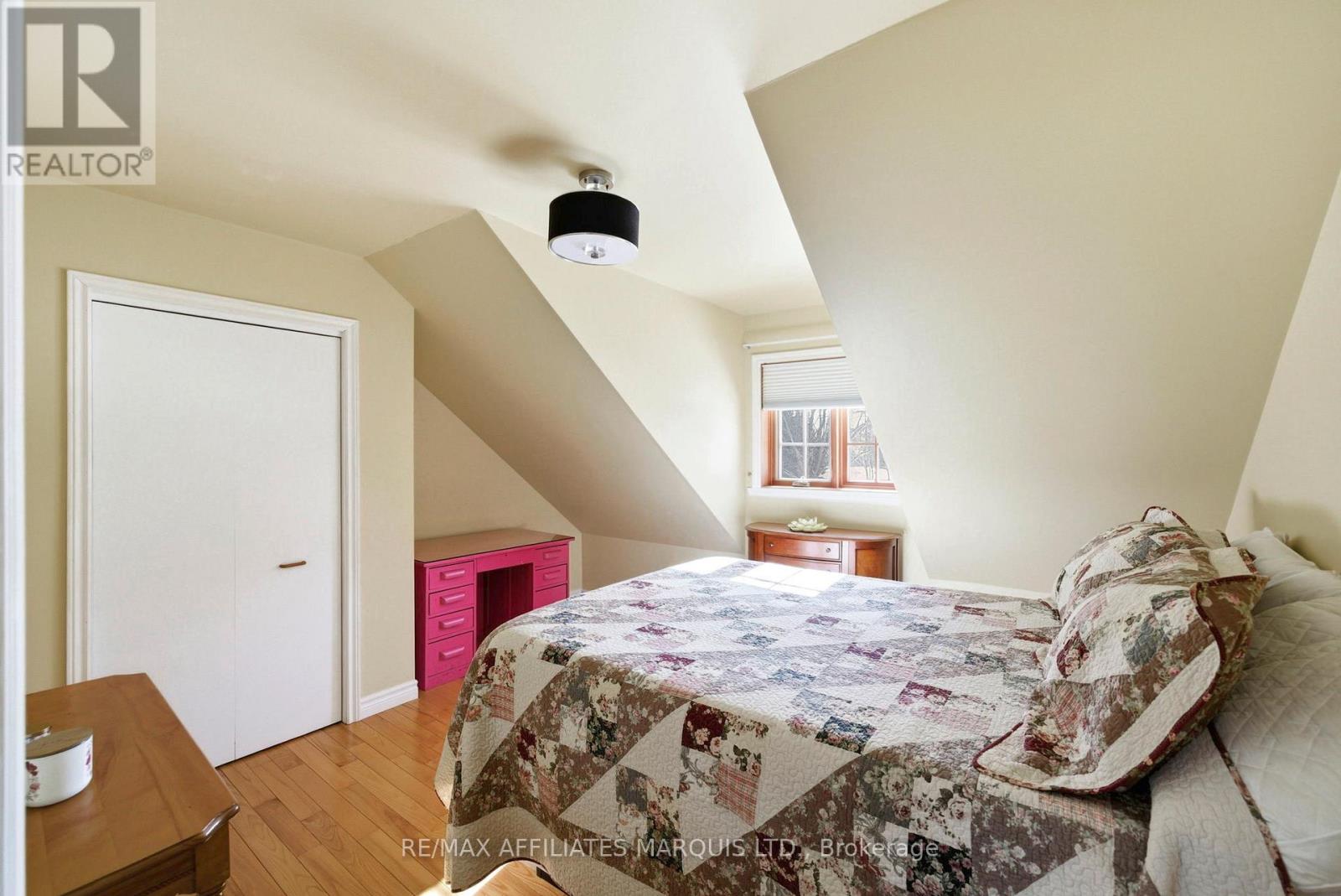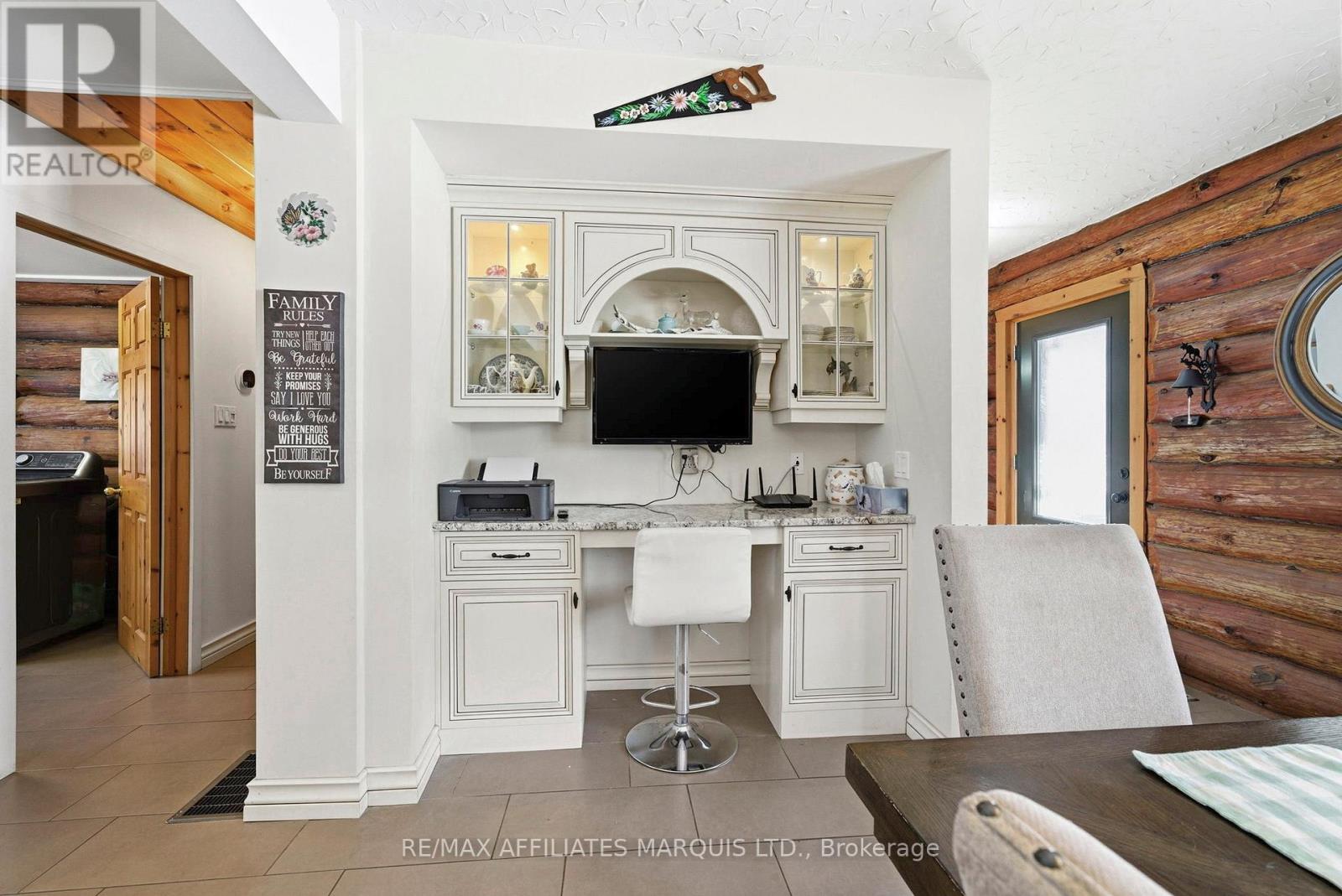 Welcome to this stunning 3,000 sq. ft. log home set on over 2 beautifully maintained acres just outside the city limits. Offering the perfect blend of peaceful rural living and convenient proximity to Cornwall, this property is ideal for families seeking space, character, and comfort. From the moment you arrive, the charm is undeniable. A spacious front porch invites you to relax and enjoy the quiet surroundings. Inside, exposed wood throughout the main floor creates a warm, timeless atmosphere. The updated eat-in kitchen features custom cabinetry, granite countertops, and a large island perfect for gathering. The inviting living room is highlighted by a striking stone fireplace with a gas insert and patio doors leading to the expansive screened-in patio, ideal for evening relaxation. A separate main-floor family room offers additional living space, and a convenient 2-piece bath combined with laundry adds everyday practicality. Upstairs you'll find four generously sized bedrooms. The primary suite includes a private 3-piece ensuite and a bonus room that could serve as a fifth bedroom, office, nursery, or exercise space. A full bathroom and an additional second-floor family room provide flexibility for growing families. The basement is currently used for storage but offers excellent potential for future development, with a walk-out from the attached single-car garage. Outside, the immaculate yard showcases mature landscaping, stone walkways, multiple patio areas, and a fire pit, perfect for entertaining or peaceful evenings under the stars. With ample parking and space for campers, boats, or recreational vehicles, this property blends lifestyle and practicality. Located minutes to Cornwall, approximately one hour to Ottawa and just over an hour to Montreal, this home offers space, warmth, and character you won't want to miss. (id:64974)