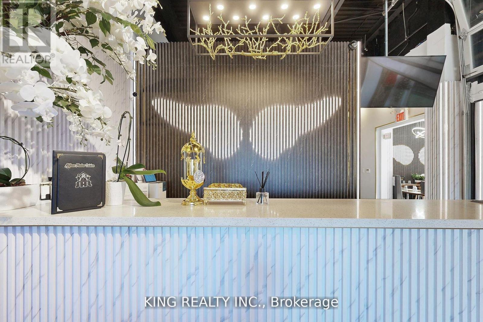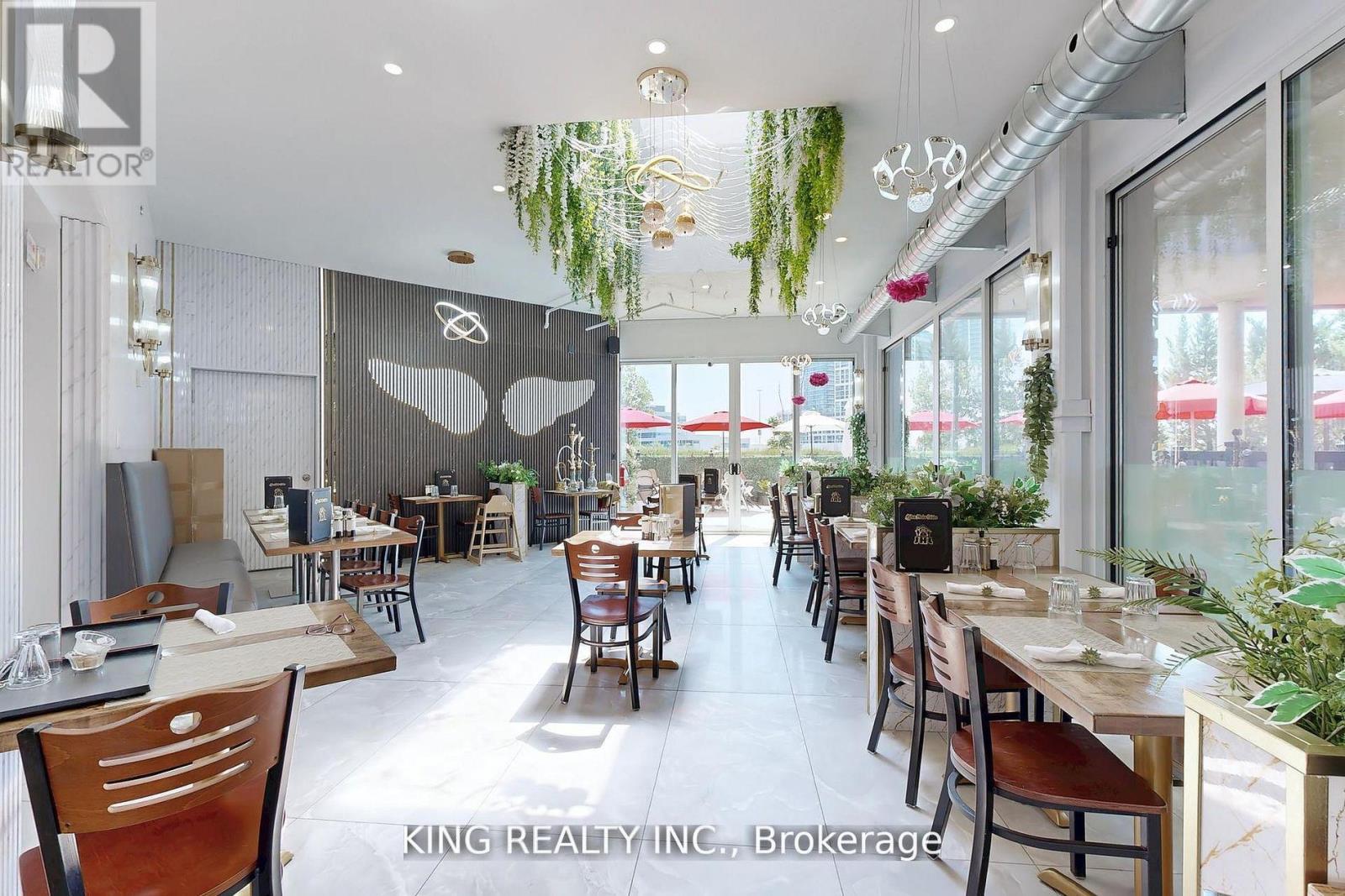 An exceptional opportunity to bring your business vision to life in one of Vaughan's busiest and most sought-after plazas. Perfectly positioned at a high-traffic intersection adjacent to Vaughan Mills Mall which attracts over 260,000 visitors weekly this fully renovated, modern space offers unmatched exposure to steady foot, vehicle, and transit traffic. Currently set up as a fast-food/dessert restaurant, the unit features a contemporary design, a fully equipped kitchen with a walk-in fridge, and a turnkey layout allowing you to skip the time and expense of renovations and open your doors to customers right away. Surrounded by established brands like Starbucks, Chatime, and Marcellos, this location benefits from exceptional visibility and a vibrant, loyal customer base. Don't miss this rare chance to secure a premium spot in the thriving Vaughan Mills Plaza and bring your concept to life in a space that's ready for success. (id:64974)