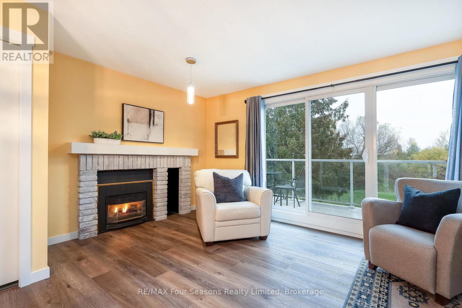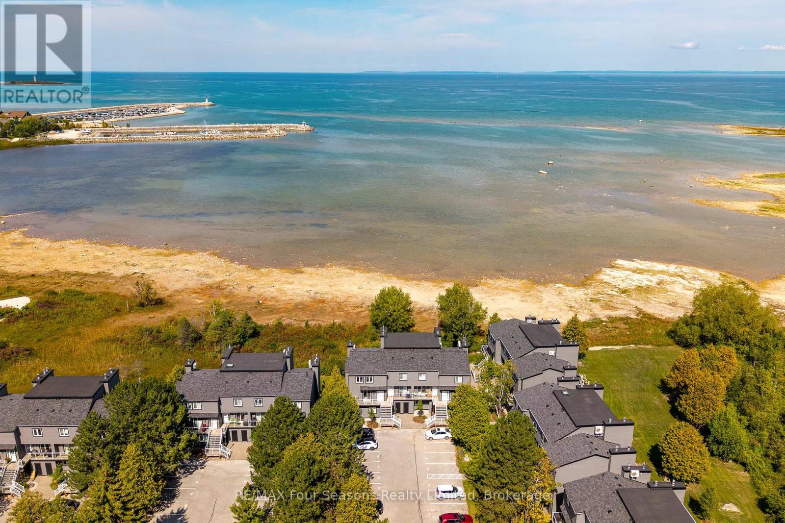 Georgian Bay Waterfront Corner/ End Unit Condo! Welcome to your dream waterfront retreat! This beautifully updated 3-bedroom, 2-bathroom condo offers breathtaking views of Georgian Bay with private beach access~ the perfect blend of comfort, style, and serenity. Step inside to a bright, open-concept living, dining, and kitchen area designed to capture natural light and showcase stunning waterfront vistas. Enjoy cozy evenings by the gas fireplace or step out onto one of two private balconies that open directly onto tranquil green space/ escarpment~ Stunning Sunrises and Sunsets ~ideal for peaceful relaxation or entertaining. The spacious, chic modern kitchen features~ luxury cabinetry, countertops, electric fireplace and modern finishes throughout. Major exterior upgrades in 2024 include new siding, roof, and insulation, ensuring long-term comfort and efficiency. Tucked away in a quiet corner of the complex, this unit offers exceptional privacy while being just minutes from historic downtown Collingwood and everything the region has to offer: Blue Mountain Village Championship golf courses, Scenic trails, Spas, Dining, Shopping, and Cultural Events. Embrace a four-season lifestyle on the shores of Southern Georgian Bay *Dedicated Bike/Kayak Storage. Condo fees include: Bell Fibe Better TV with Crave1.5 GB unlimited internet - ideal for remote work, streaming, and staying connected. Discover the magic of Georgian Bay living ~where every day feels like a getaway! (id:64974)