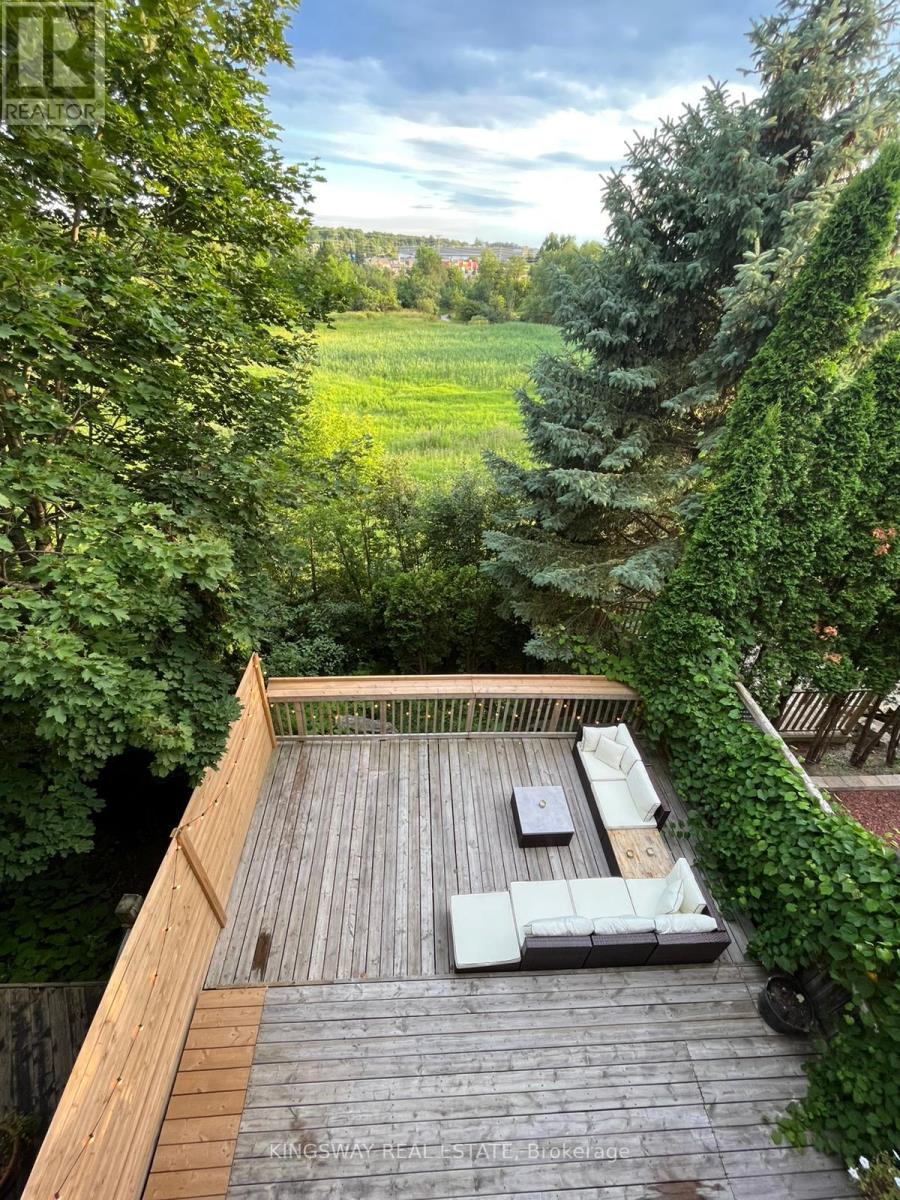 Beautifully renovated townhome backing onto private greenspace with no rear neighbours in sought-after Aurora. Located on a quiet street yet just minutes from the Aurora GO Station and Aurora's vibrant downtown filled with shops, restaurants, and entertainment.This exceptionally bright open-concept home offers 3 bedrooms and 2.5 bathrooms and shows true pride of ownership, having been professionally renovated from top to bottom with modern, elegant finishes throughout. The primary suite features a walk-in closet and a beautifully updated ensuite with heated floors and a state-of-the-art shower panel, creating a spa-like retreat.The home's most striking feature is the dramatic walk-out basement, designed with a loft-like feel and a stylish bar overlooking the space below. Large windows fill the area with natural light, creating an incredible setting for entertaining. Step directly outside to the expansive private deck overlooking peaceful greenspace, an ideal space for hosting gatherings while enjoying the rare privacy of having no rear neighbours.With tranquil views behind the home, the outdoor setting offers a level of privacy rarely found in townhomes and creates an inviting atmosphere for entertaining or relaxing.A truly unique and beautifully upgraded home combining modern style, dramatic living space, and exceptional indoor-outdoor entertaining. (id:64974)