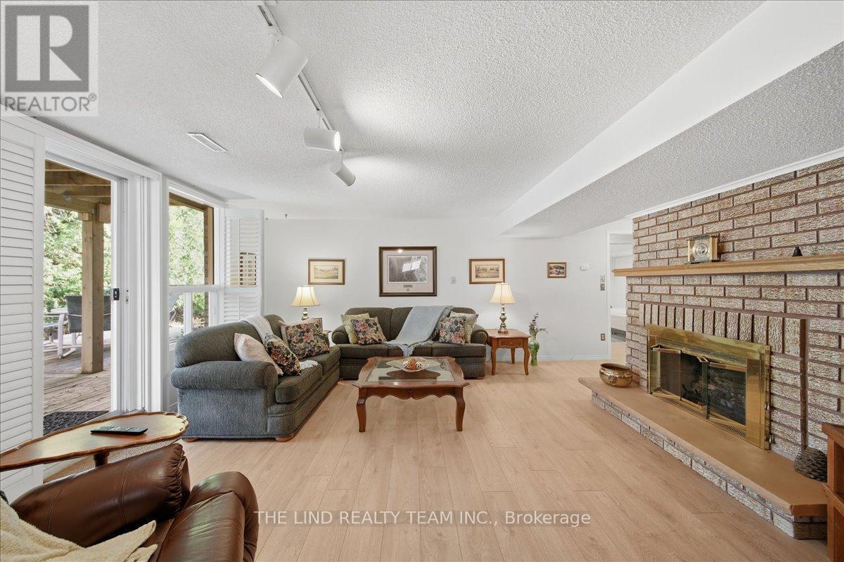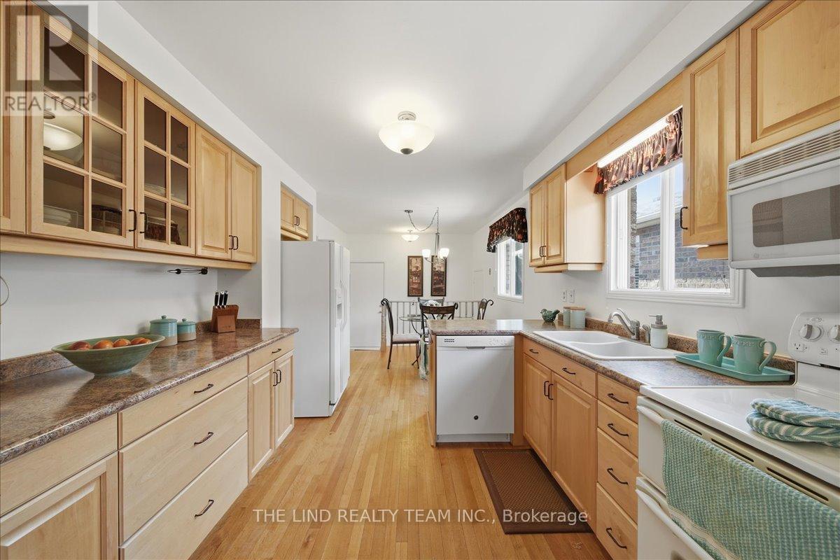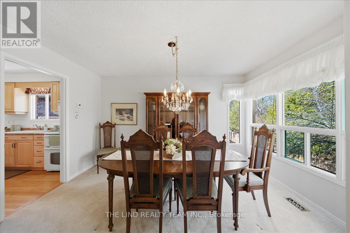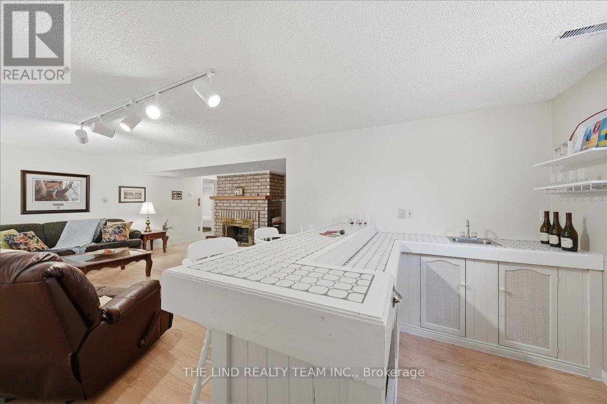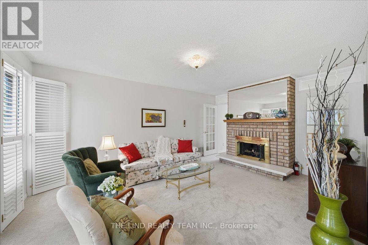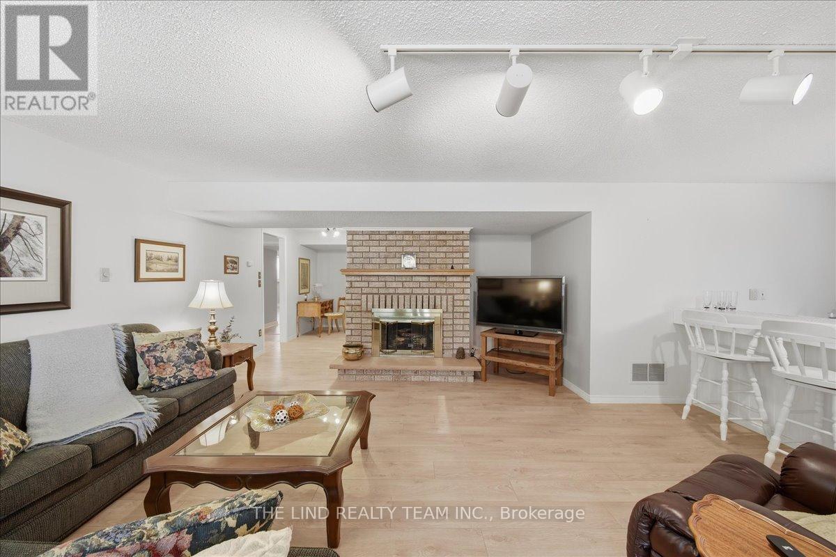 Wow! 'Bungalow Beauty' curb appeal and much more! Demand North West Aurora location steps to nature trails, parks and schools! Quiet child-safe crescent location! 5 car parking! Updated and upgraded 1669 SF executive full brick bungalow on private lot 77 FT at rear! Backing to treeline! Fully fenced lot! ('Almost inlaw' in bright professionally finished lower level with separate entrance - big family room wet bar area (could be kitchen) - ceiling to floor fireplace! - 4th bedroom and 5th bedroom or could be play room - games room! - 4 pc bath w/7' soaker whirlpool bath! - loads of storage!) Main floor features spacious 'great room' w/c-f fireplace and walkout to terrace! Updated eat-in maple kitchen with garage access! Separate formal dining room with bright picture window! Main floor primary with his and hers closets and inviting 4pc ensuite! Large secondary bedrooms too! Fresh modern neutral decor! Updated main bath! Updated shingles - windows - floors - paint - garage door - front door. (id:64974)