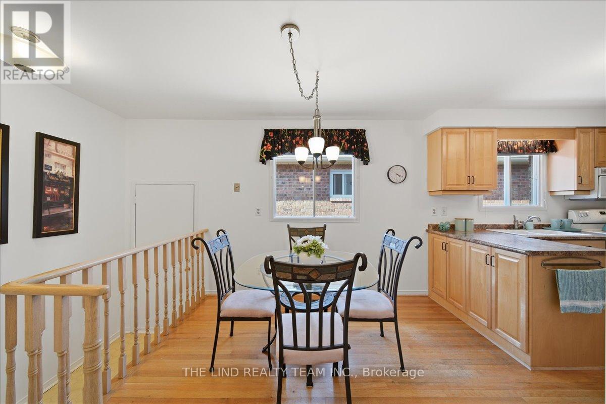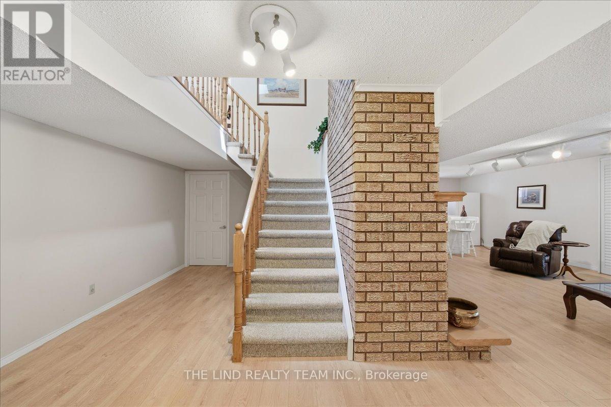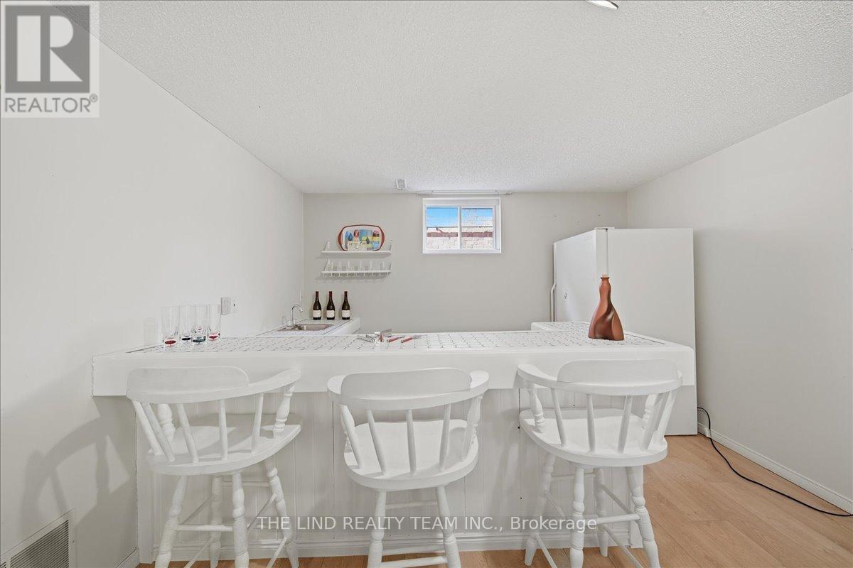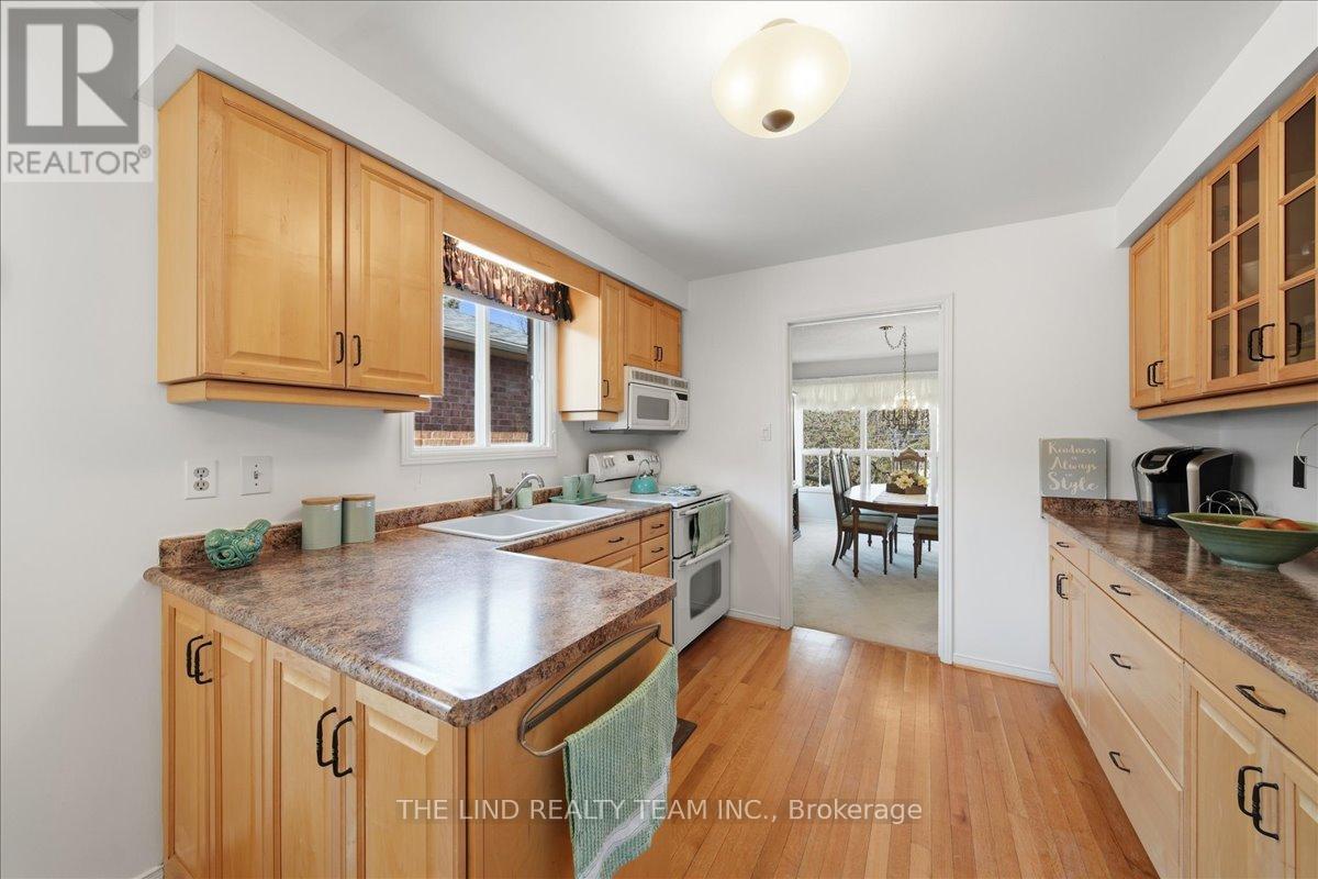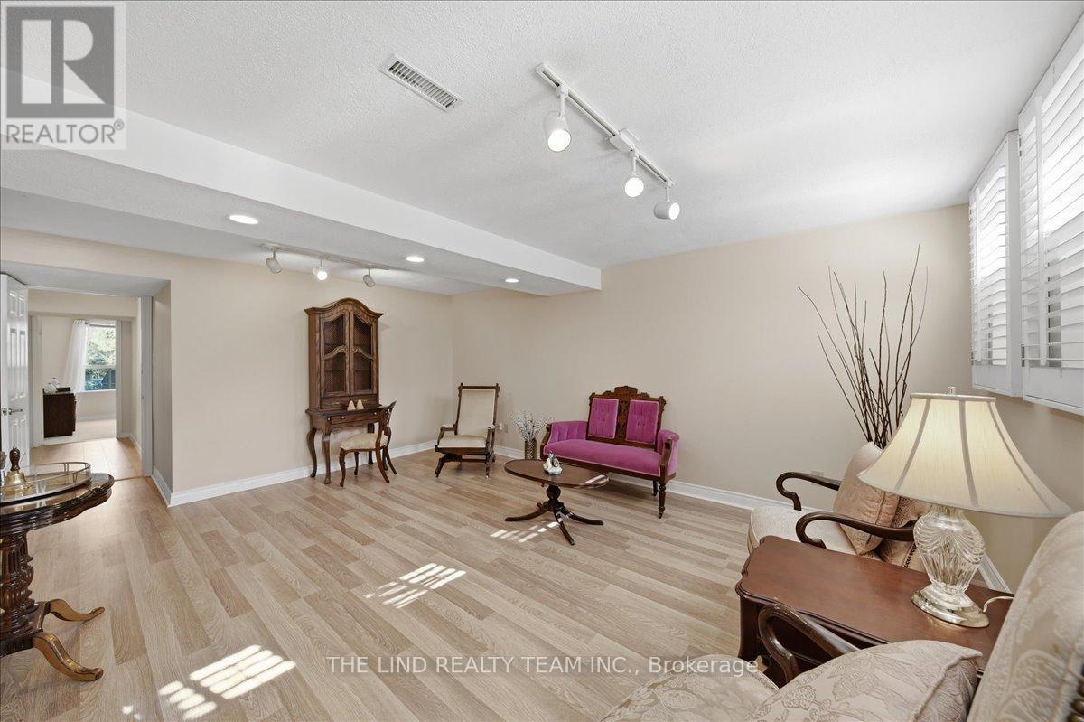 Wow! 'Bungalow Beauty' curb appeal and much more! Demand North West Aurora location steps to nature trails, parks and schools! Quiet child-safe crescent location! 5 car parking! Updated and upgraded 1669 SF executive full brick bungalow on private lot 77 FT at rear! Backing to treeline! Fully fenced lot! ('Almost inlaw' in bright professionally finished lower level with separate entrance - big family room wet bar area (could be kitchen) - ceiling to floor fireplace! - 4th bedroom and 5th bedroom or could be play room - games room! - 4 pc bath w/7' soaker whirlpool bath! - loads of storage!) Main floor features spacious 'great room' w/c-f fireplace and walkout to terrace! Updated eat-in maple kitchen with garage access! Separate formal dining room with bright picture window! Main floor primary with his and hers closets and inviting 4pc ensuite! Large secondary bedrooms too! Fresh modern neutral decor! Updated main bath! Updated shingles - windows - floors - paint - garage door - front door. (id:64974)