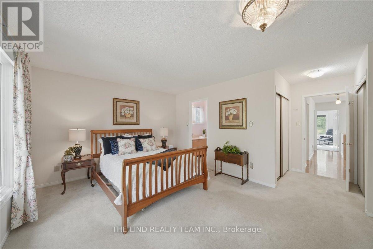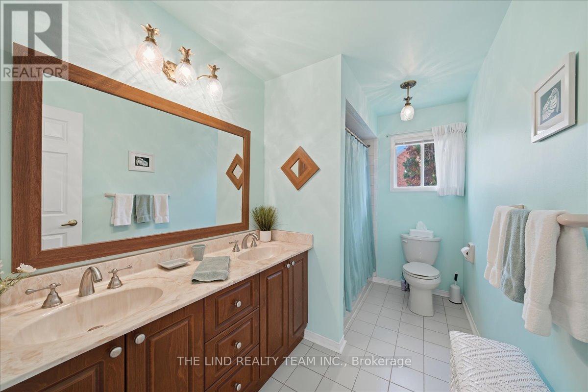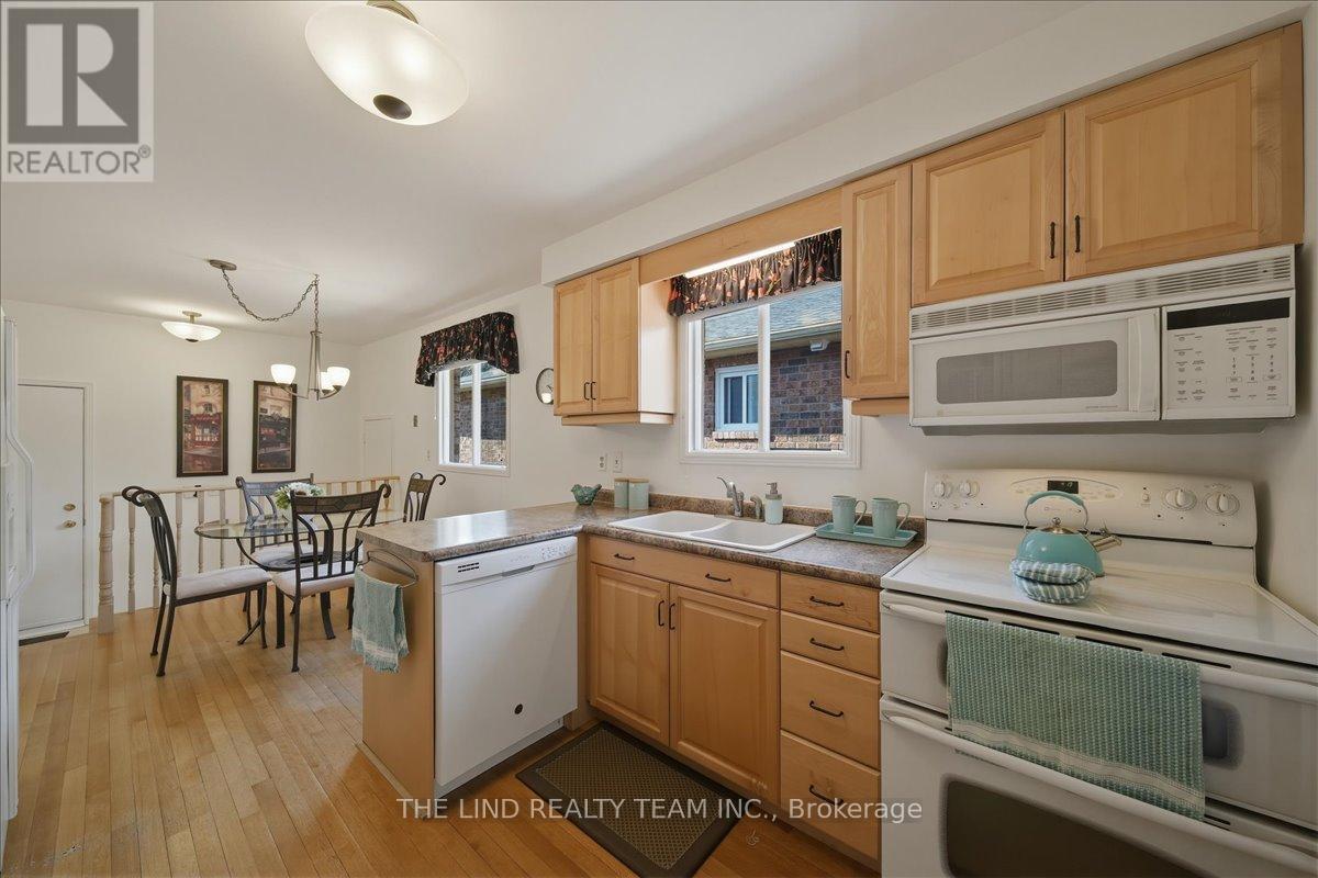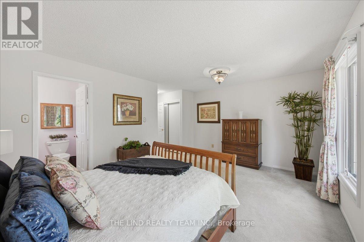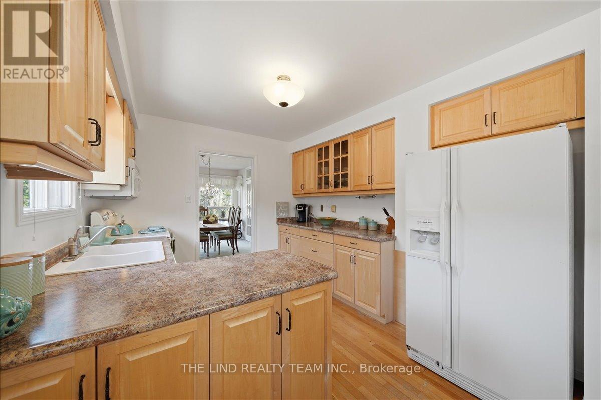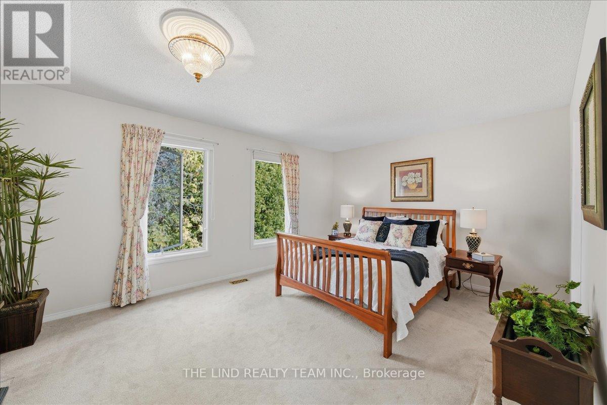 Wow! 'Bungalow Beauty' curb appeal and much more! Demand North West Aurora location steps to nature trails, parks and schools! Quiet child-safe crescent location! 5 car parking! Updated and upgraded 1669 SF executive full brick bungalow on private lot 77 FT at rear! Backing to treeline! Fully fenced lot! ('Almost inlaw' in bright professionally finished lower level with separate entrance - big family room wet bar area (could be kitchen) - ceiling to floor fireplace! - 4th bedroom and 5th bedroom or could be play room - games room! - 4 pc bath w/7' soaker whirlpool bath! - loads of storage!) Main floor features spacious 'great room' w/c-f fireplace and walkout to terrace! Updated eat-in maple kitchen with garage access! Separate formal dining room with bright picture window! Main floor primary with his and hers closets and inviting 4pc ensuite! Large secondary bedrooms too! Fresh modern neutral decor! Updated main bath! Updated shingles - windows - floors - paint - garage door - front door. (id:64974)