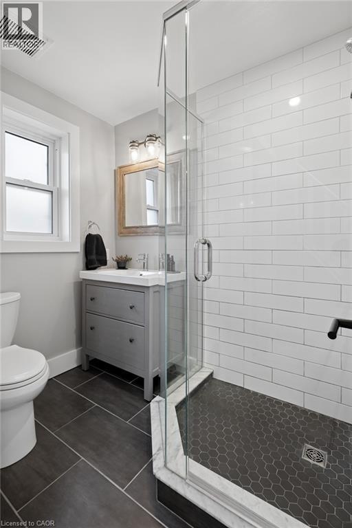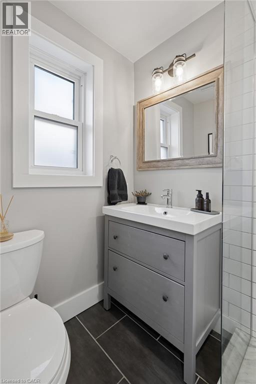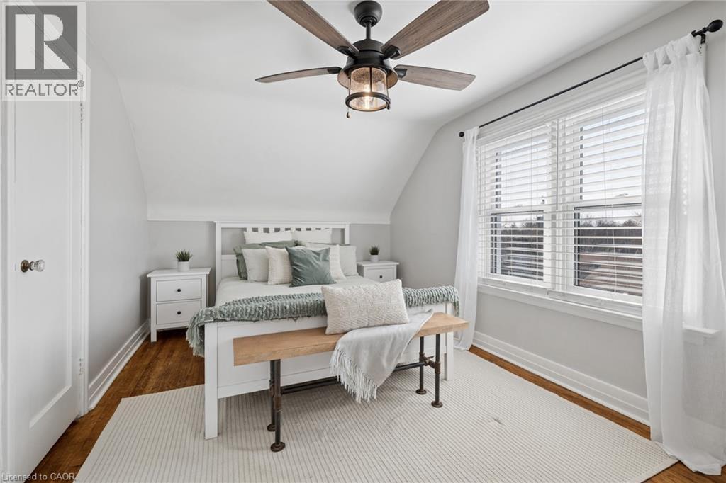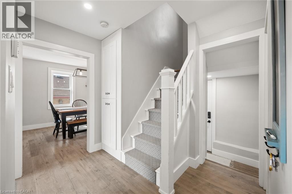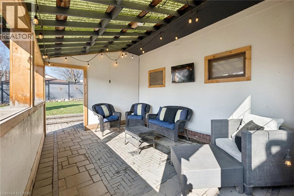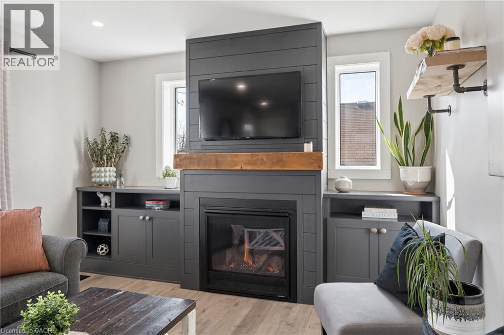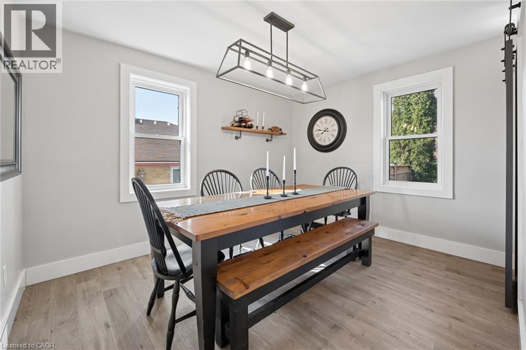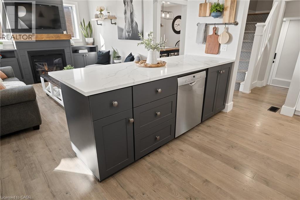 Fully renovated from top to bottom, this stunning 3-bedroom, 1.5-bath home offers the perfect blend of modern design, thoughtful upgrades, and lifestyle-set in a highly sought-after central Kitchener location just minutes from downtown amenities like Victoria Park, St. Mary's Hospital, Iron Horse Trail, shopping, and quick highway access. Step inside to a bright, open-concept main floor where pot lights and large windows fill the space with natural light. The beautifully updated two-tone kitchen (2020) features quartz countertops, a stylish backsplash, stainless steel appliances, and an oversized island ideal for entertaining. Major 2020 updates also include windows, doors, and extensive interior improvements, delivering a truly turnkey experience. The inviting living area is anchored by a cozy gas fireplace (2020) with custom built-ins and a wood mantle. A separate, spacious dining room provides versatility as an optional main floor bedroom. Upstairs offers two well-appointed bedrooms and a renovated bathroom (2020) with clean, contemporary finishes. The lower level provides excellent potential for a future fourth bedroom, office, or guest space, with updated plumbing throughout (2020, no cast iron) and a spacious laundry area. Additional upgrades include new insulation throughout most of the main floor, central A/C (2021), water softener (2020), and rented hot water heater (2021). Step outside to a professionally landscaped, fully fenced backyard featuring updated interlock (2024) and a standout detached covered structure with bar seating, lighting, and lounge space with TV capability-perfect for entertaining. A 16x10 sunroom and 16x8 shed, both with updated board and batten siding (2021), add functional space. Curb appeal is enhanced with new siding, fascia, and soffit (2022), plus a newly finished armour stone driveway (2025). Don't wait to call this move-in ready home yours! (id:64974)