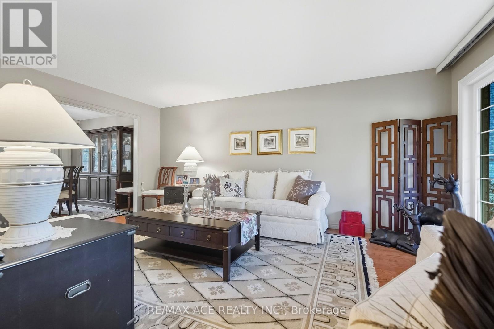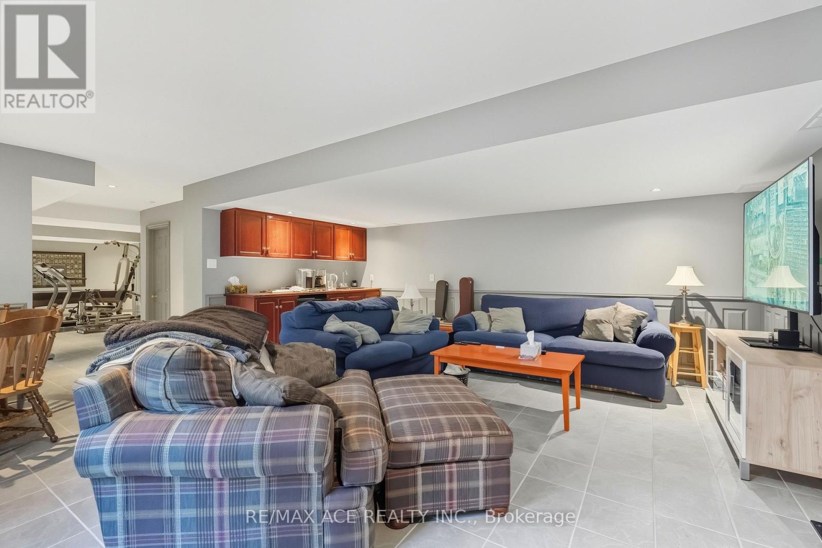 Rarely does a property come to the market that tick so many boxes for a family. Tucked away on a quiet and child friendly cul-de-sac in the prestigious neighborhood of Oak Ridges, sitting on almost 3/4-acre lot this home has been finished with a high level of style and quality. Newly paved driveway lined with pole lights, neatly manicured lawns and flower garden will take you to a covered porch or a triple garage that provides convenient access to the main floor. Grand front entrance opens into an impressive foyer with solid oak curved staircase. Open concept layout designed for comfort and connection. Family room has built-in bookshelves with cabinets and granite countertops, oak crown Moulding and newly installed sealed fireplace that adds warmth and sophistication. Dining and living areas are filled with natural light from French Doors and generously sized windows. Step outside from the dining or breakfast area to large deck with cabana and enjoy the natural beauty of your surroundings. Second level boasts an oversized primary bedroom with a 3pc Ensuite, two closets, and hardwood floor. Additionally, three generous sized bedrooms and a 4pc bathroom. Lower level offers one bedroom, a 4-pc bath with jacuzzi, games room, exercise room, spacious recreational room with a fireplace and mini bar. Access the back porch on the lower lever either from the exercise or rec room and enjoy this peaceful backyard backing onto greenspace and beside Pine Needle Park. Garage was freshly painted, and floor professionally finished with high quality epoxy. Notable features include 220 Amps Electrical Panel, New 5" Gutters and Soffit with leaf protection filter, some windows replaced in 2024, generator back up line in garage, 2 aromatic cedar lined closets in basement, 33ft x 5 ft cold cellar and natural gas hook up for BBQ. Close proximity to schools, grocery stores, banks and much more. Move in ready! (id:64974)
