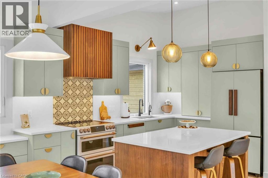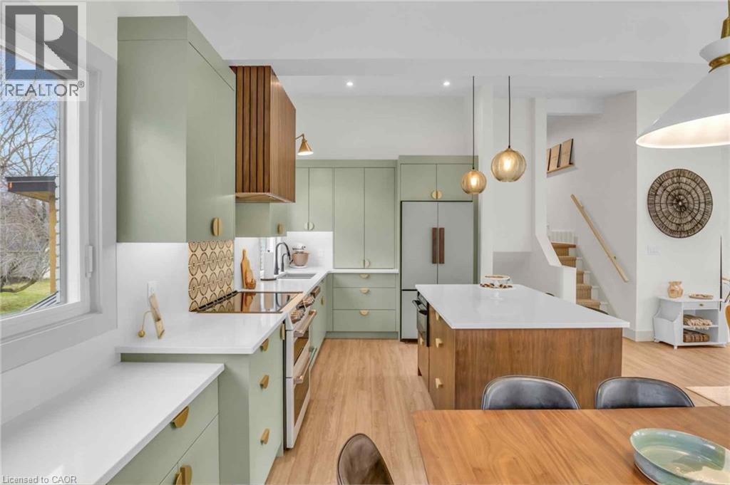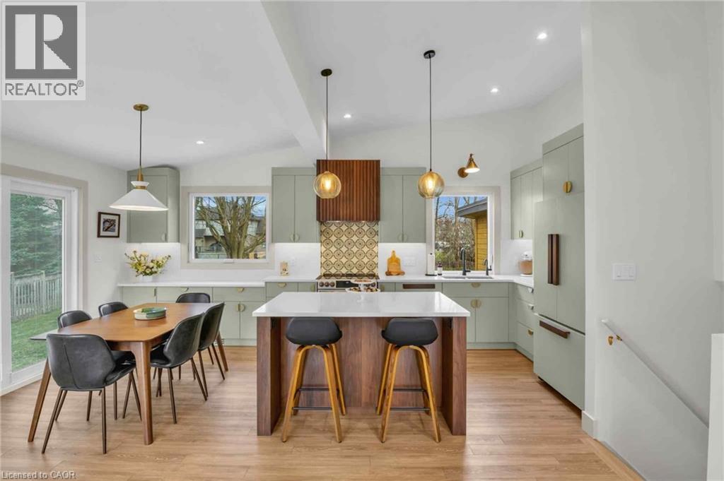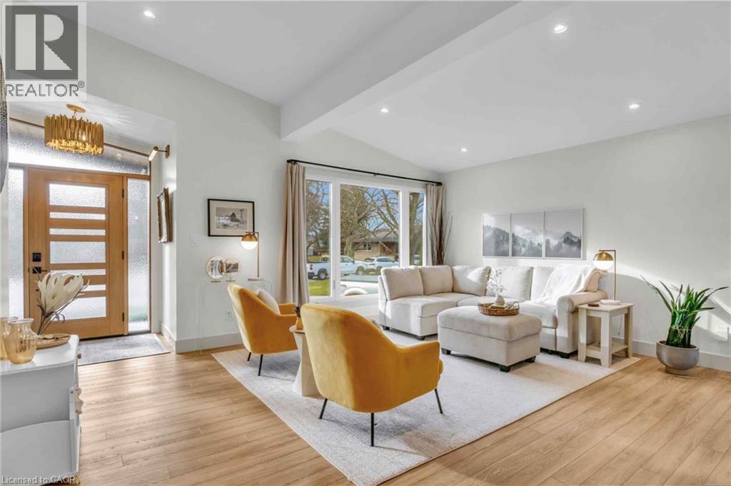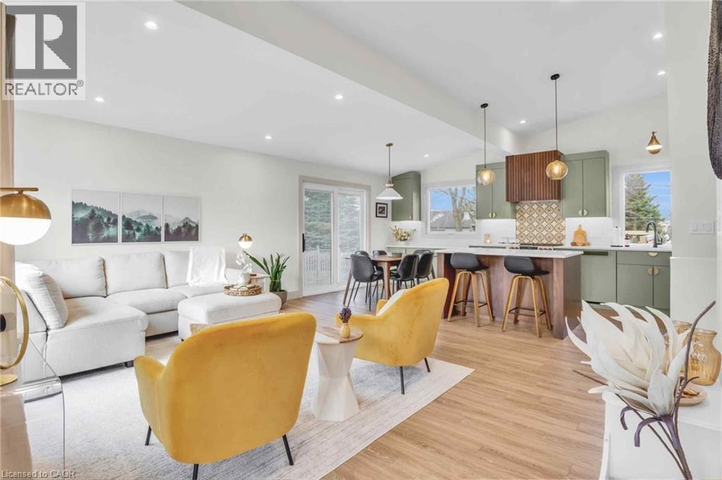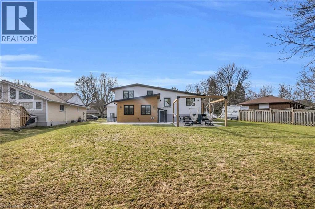 Welcome to 17 Bluebird Place in Elmira—an extensively renovated home set on a premium oversized lot at the end of a quiet cul-de-sac in a mature, family-friendly neighbourhood. Offering approximately 1,860 sq ft of beautifully finished living space, this 3+1 bedroom, 2 bathroom home blends thoughtful design with modern comfort. Fully renovated in 2024, the home showcases a bright, open interior with all new flooring, trim, doors, lighting, and neutral finishes throughout. The custom chef’s kitchen is a standout, featuring quartz countertops and backsplash, high-end appliances including an induction range with dual oven/air fryer, custom cabinetry with built-in storage solutions, and a large island with integrated outlets—perfect for everyday living and entertaining. The kitchen flows seamlessly into the dining area with a newly added walkout to the backyard. Both bathrooms have been fully updated with premium finishes, including heated floors, custom marble details, and upgraded fixtures. Additional highlights include a spacious recreation room, a newly added laundry room with custom cabinetry, and a versatile studio space with separate entrance, 3-piece bath, and closet—ideal as a primary suite, guest space, home office, or flex area. Set on an expansive, private lot partially backing onto mature greenspace, the outdoor space offers exceptional privacy and functionality. Enjoy multiple poured concrete patio areas for a swim spa or hot tub, a pergola with hammocks, firepit area, and a refreshed yard. The driveway accommodates up to five vehicles, and the home features new windows, doors, roofing updates, and upgraded 200 AMP electrical service with EV capability. Conveniently located close to schools, shopping, and everyday amenities, and just a short drive to Waterloo, Kitchener, Guelph, and beyond, this turn-key home is a rare opportunity to own a thoughtfully updated property in a quiet, established neighbourhood. (id:64974)
