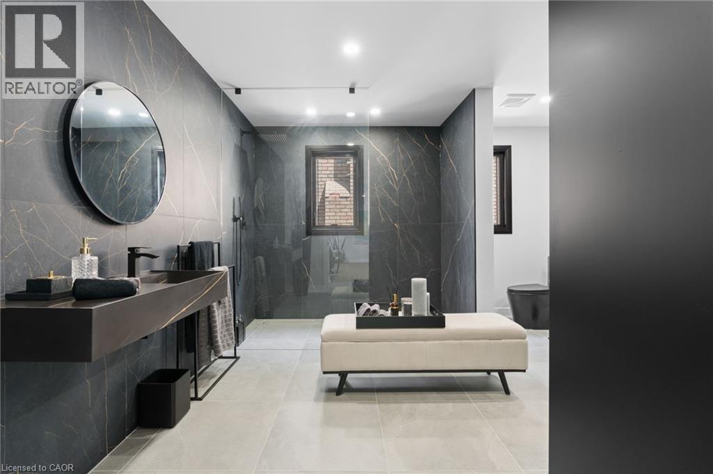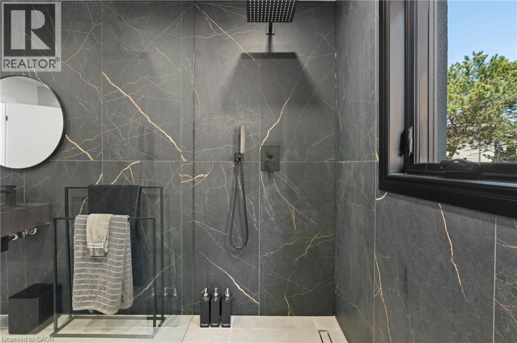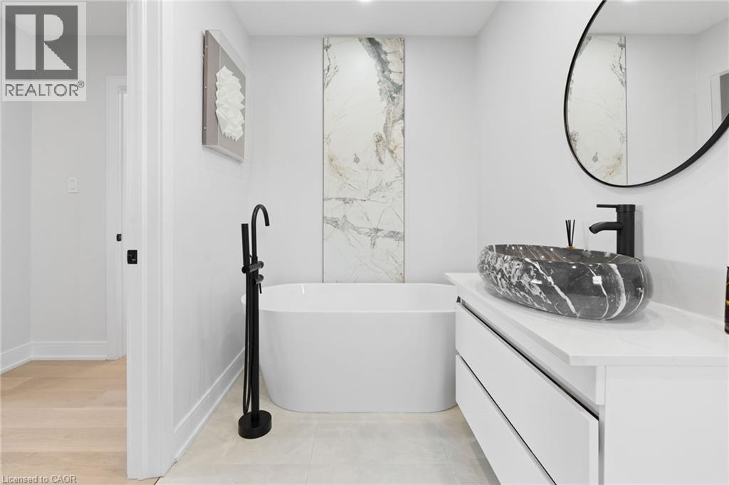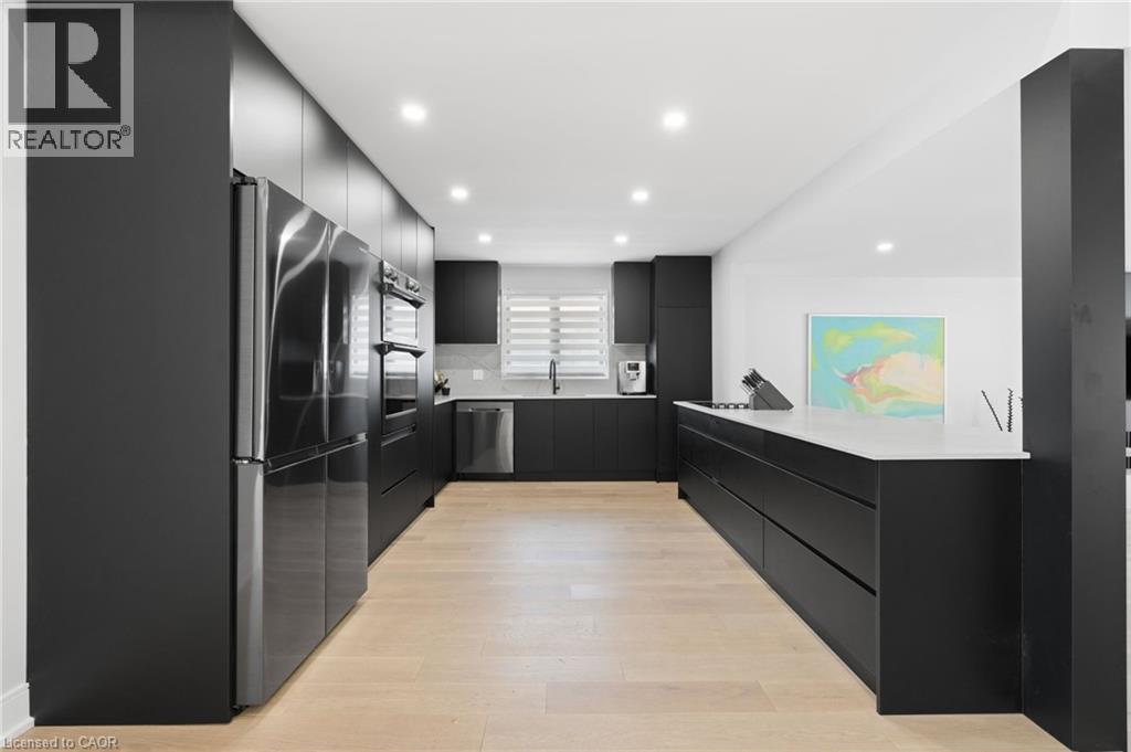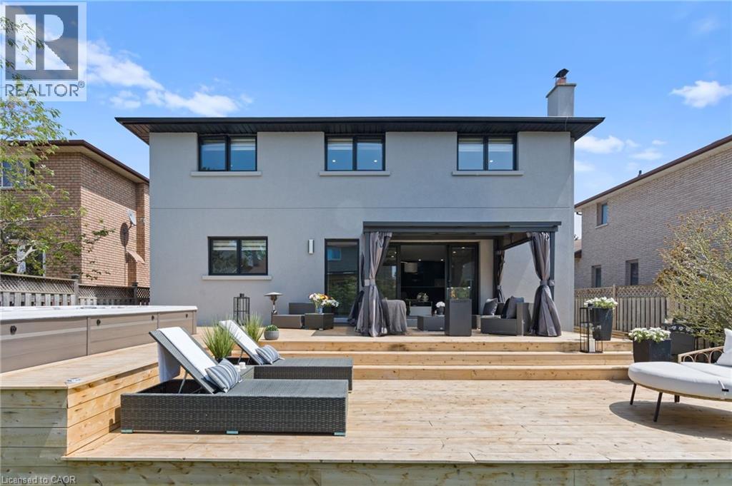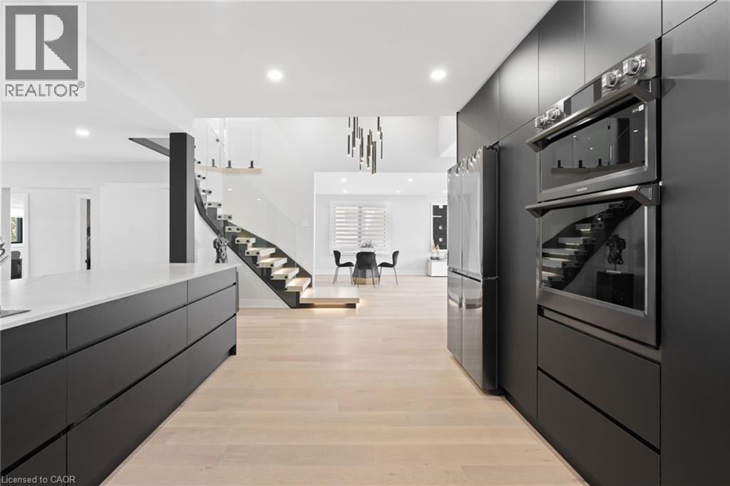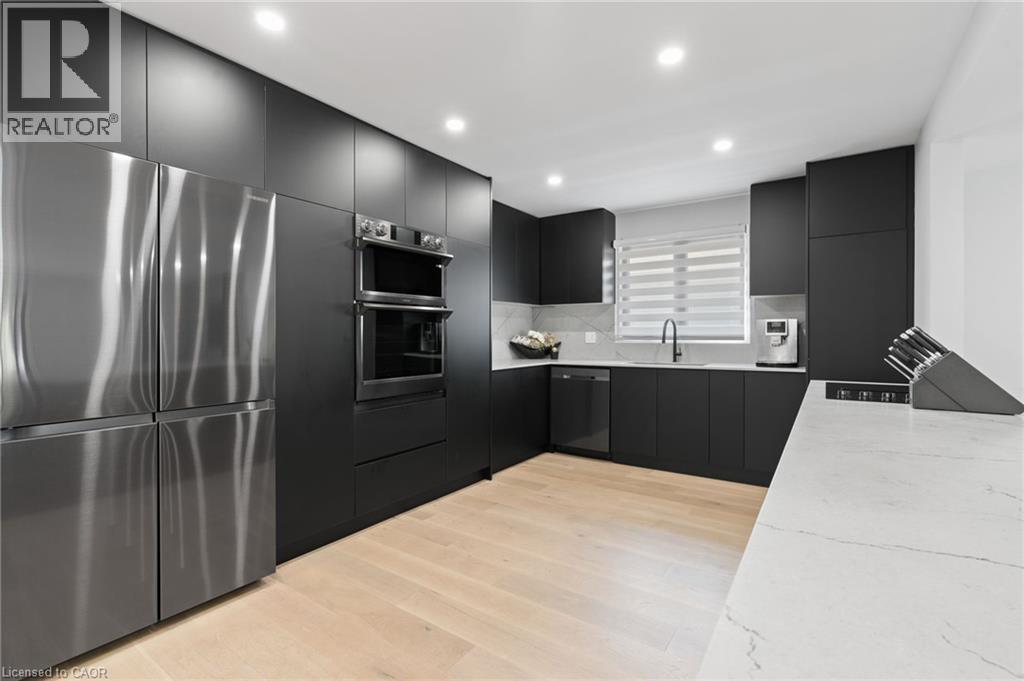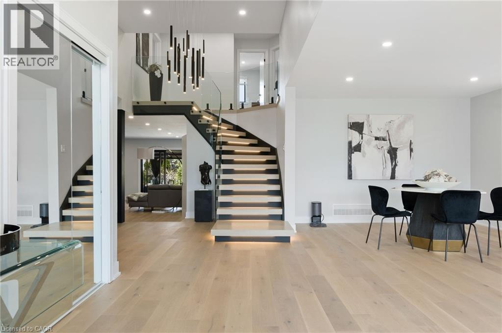 Nestled on a quiet, family-friendly street beneath the Escarpment, this exceptional custom renovated home impresses at every turn. Offering over 4,200 sq. ft. of luxurious living space, it showcases high-end finishes and impeccable design throughout. The thoughtfully designed layout includes 4+2 bedrooms, 4 bathrooms, and a private in-law suite with a separate entrance.From the moment you enter, the stunning foyer and illuminated staircase set the tone, serving as a striking architectural centerpiece. The chef's kitchen is truly a showstopper, featuring custom black cabinetry, leather-finished quartz countertops, an oversized island, and top-of-the-line appliances. The main level also offers an open-concept formal living and dining area, along with a spacious family room anchored by a custom fireplace.Upstairs, you'll find three generously sized bedrooms and two beautifully designed bathrooms, each complete with a freestanding tub and separate shower. The main floor also includes a fourth bedroom or home office, plus an oversized spa-inspired bathroom with conveniently located laundry.The finished basement spans approximately 1,600 sq. ft. and includes a private suite with its own kitchen, bedroom, and bathroom-ideal for in-laws, teenagers, or rental income. An additional area offers endless possibilities, including a home gym, office, or secondary living space.Step outside to a professionally landscaped backyard designed for year-round enjoyment. The 14-ft swim spa features four jacuzzi seats, a swim current, and temperature control-perfect for summer swimming and winter relaxation, with far less maintenance than a traditional pool. Enjoy a turn key home with all the major updates: Engineered hardwood flooring on the main and second levels, European front doors, gemstone stucco façade, new windows (2023), roof (2022), garage doors (2023), security cameras, and Google doorbell. A truly exceptional home-this is a must-see! (id:64974)