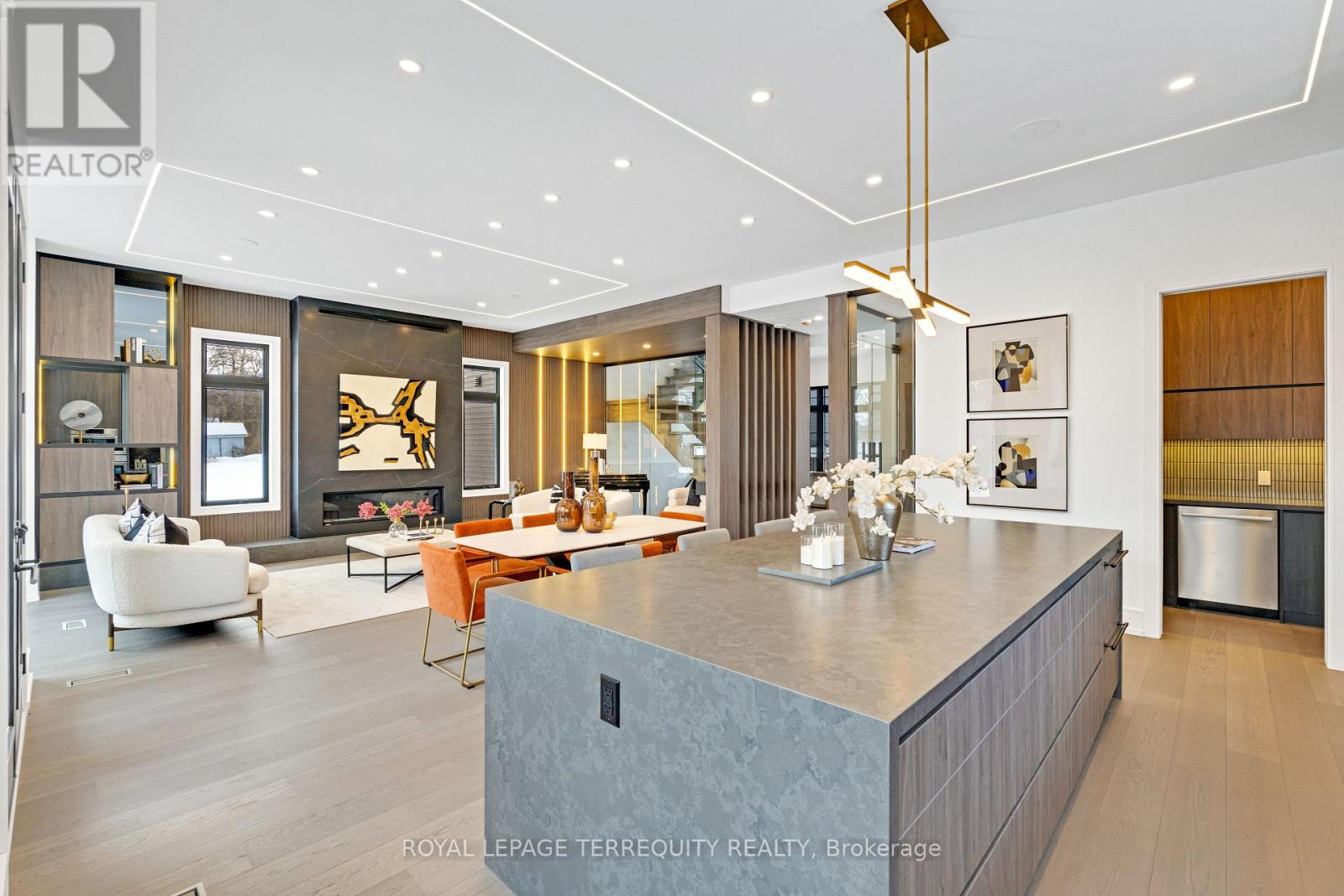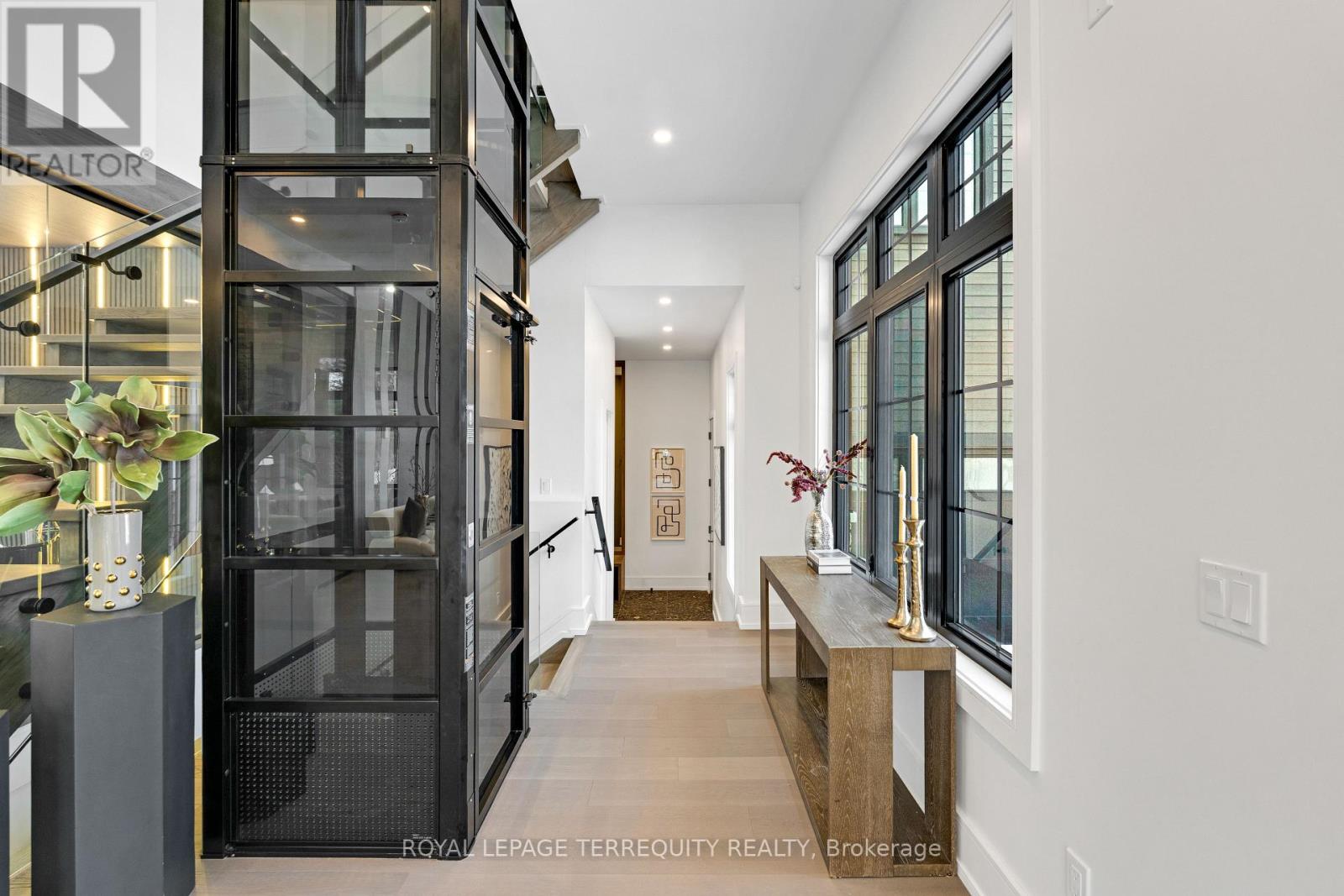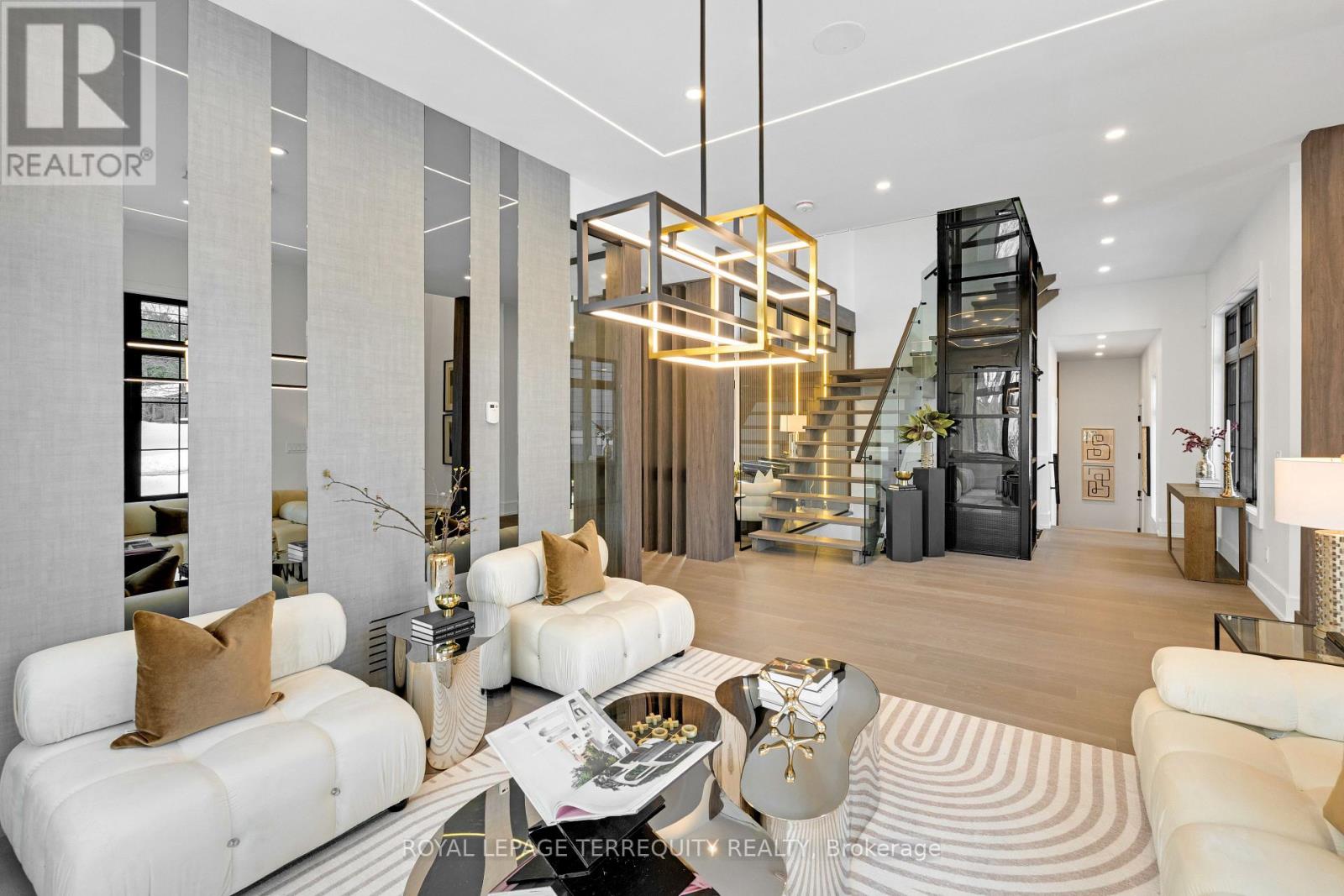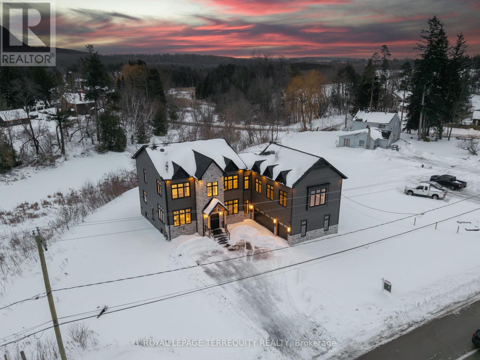 An extraordinary waterfront offering, this residence exemplifies architectural presence and timeless lakeside luxury. Peacefully positioned along 100+ feet of prime shoreline and set on an expansive 214 x 349 ft lot, this one-of-a-kind property blends refined sophistication with serene natural beauty, creating a seamless indoor-outdoor living experience. Thoughtfully designed with wide-plank hardwood flooring, custom millwork, and curated designer finishes, the home features flowing principal spaces enhanced by integrated LED ceiling details and statement lighting. A striking glass elevator adds both convenience and architectural presence, reinforcing the home's elevated design. The open-concept kitchen is a true showpiece, wrapped in premium stone surfaces and bespoke cabinetry, and equipped with top-tier panelled appliances. Designed for effortless entertaining and elevated everyday living, it anchors the home with both function and refined style. Offering 4 spacious bedrooms and 4 beautifully appointed bathrooms, the residence delivers comfort, privacy, and exceptional craftsmanship throughout. The primary suite serves as a private retreat with a generously scaled, spa-inspired ensuite finished with luxurious details and premium fixtures. A large loft above the garage, complete with a rough-in for an additional washroom, provides outstanding flexibility for future expansion-ideal for a guest suite, studio, or multigenerational living. The 3-car garage with car lift further enhances the home's rarity. Beyond its architectural elegance, the property presents significant long-term value with an approved severance application (with conditions), offering the opportunity to build an additional residence. A rare offering defined by scale, craftsmanship, and a level of finish seldom seen on the market. (id:64974)