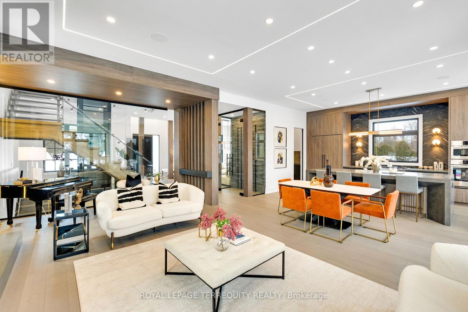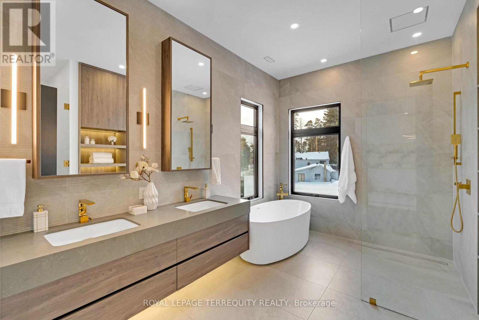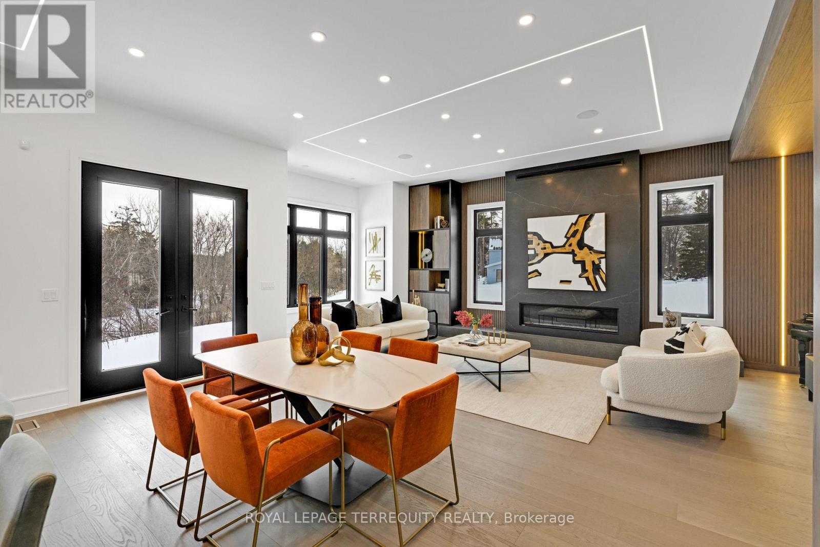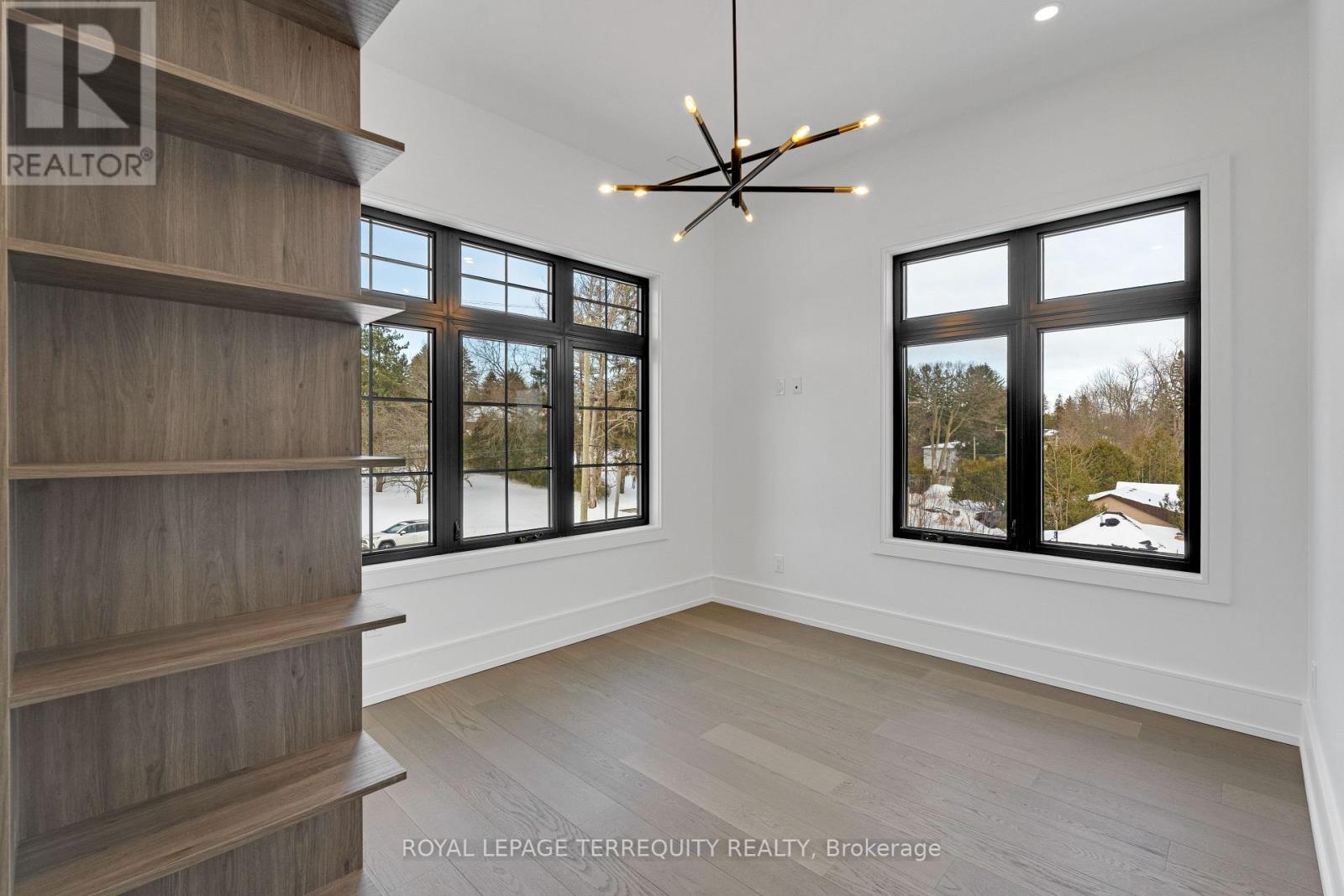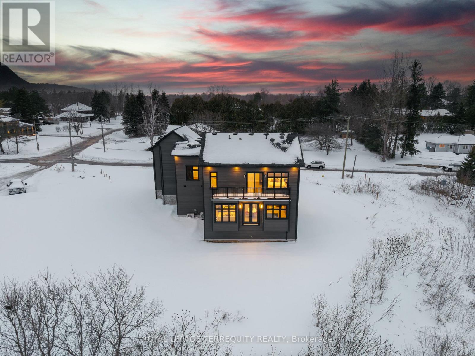 An extraordinary waterfront offering, this residence exemplifies architectural presence and timeless lakeside luxury. Peacefully positioned along 100+ feet of prime shoreline and set on an expansive 214 x 349 ft lot, this one-of-a-kind property blends refined sophistication with serene natural beauty, creating a seamless indoor-outdoor living experience. Thoughtfully designed with wide-plank hardwood flooring, custom millwork, and curated designer finishes, the home features flowing principal spaces enhanced by integrated LED ceiling details and statement lighting. A striking glass elevator adds both convenience and architectural presence, reinforcing the home's elevated design. The open-concept kitchen is a true showpiece, wrapped in premium stone surfaces and bespoke cabinetry, and equipped with top-tier panelled appliances. Designed for effortless entertaining and elevated everyday living, it anchors the home with both function and refined style. Offering 4 spacious bedrooms and 4 beautifully appointed bathrooms, the residence delivers comfort, privacy, and exceptional craftsmanship throughout. The primary suite serves as a private retreat with a generously scaled, spa-inspired ensuite finished with luxurious details and premium fixtures. A large loft above the garage, complete with a rough-in for an additional washroom, provides outstanding flexibility for future expansion-ideal for a guest suite, studio, or multigenerational living. The 3-car garage with car lift further enhances the home's rarity. Beyond its architectural elegance, the property presents significant long-term value with an approved severance application (with conditions), offering the opportunity to build an additional residence. A rare offering defined by scale, craftsmanship, and a level of finish seldom seen on the market. (id:64974)