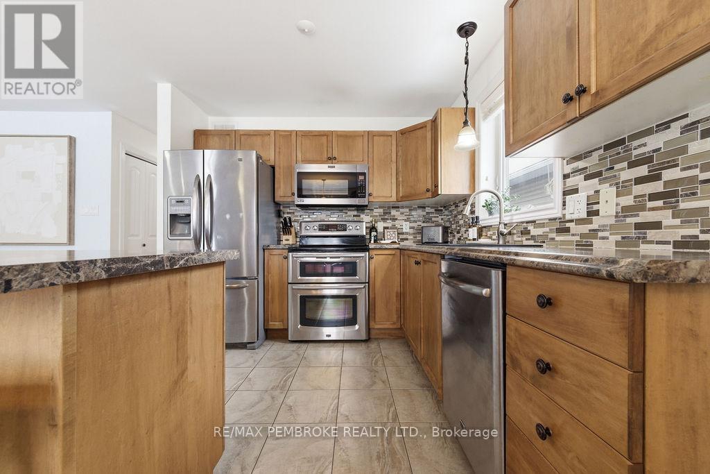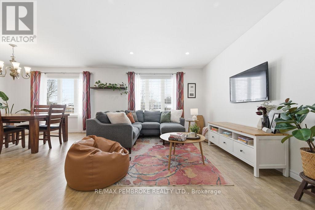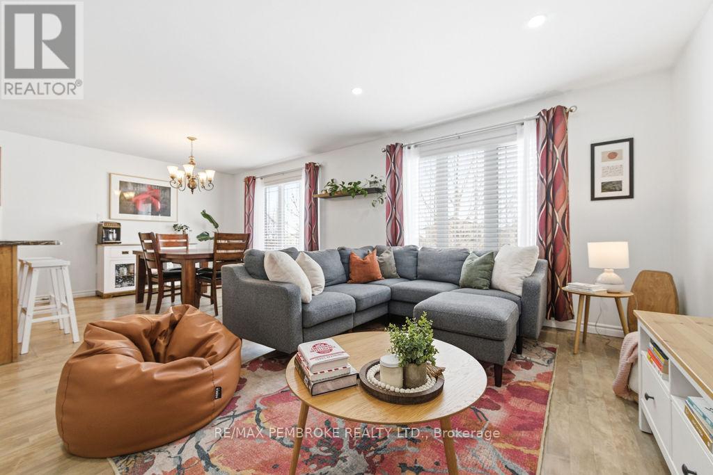 Welcome to this beautifully maintained home offering the perfect blend of space, comfort and functionality in a family friendly neighbourhood. Step inside to an open concept main living area with seamless flow between living room, dining room and kitchen that promotes an ideal setting for everyday living and effortless entertaining. Five generously sized bedrooms for growing families, guests or a home office. Outside, enjoy a fully fenced backyard designed for relaxation and gatherings. The spacious deck is perfect for summer barbecues, morning coffee or an evening to unwind under the umbrella. Located close to parks, schools and CFB Petawawa this home offers the space you need in a setting you'll love. (id:64974)