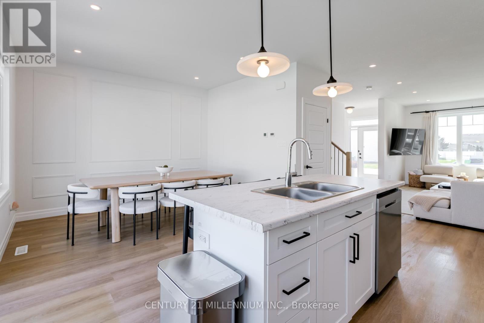 Welcome to the charming town of Belmont, just south of London, where modern design meets small-town living. Situated on a quiet, family-friendly court, this beautifully maintained 4- year-new detached home sits on an impressive 57 x 157 ft lot and offers the perfect blend of style, space, and comfort. The exterior features a double car garage with convenient interior access, a 4-car driveway, and a fully fenced backyard with durable vinyl fencing. Inside, you're greeted by soaring 9-ft ceilings, luxury vinyl flooring, and a bright open-concept main floor designed for both everyday living and entertaining. The spacious living room, highlighted by a large picture window, flows seamlessly into the stunning kitchen featuring white shaker cabinetry, stainless steel appliances, a double sink, and a breakfast bar overlooking the generous dining area with elegant custom wall moulding. Large rear windows and a sliding glass door fill the home with natural light and lead to the impressive concrete patio and oversized pool-sized backyard - perfect for relaxing, entertaining, or creating your dream outdoor retreat. Upstairs, the warm plush carpeting adds comfort throughout. The primary suite offers a true retreat with a king-sized walk-in closet complete with custom organizers and a private spa inspired 3-piece ensuite. Two additional queen-sized bedrooms feature double closets and large windows, and share a well-appointed 4-piece bathroom. The unfinished basement, complete with large above-grade windows, offers excellent potential for additional living space tailored to your needs. A fantastic opportunity to own a stylish newer home on a premium lot in one of Belmont's most desirable family settings. Families will appreciate Belmont's small-town charm with convenient access to the Belmont Arena & Community Centre, sports fields, library, parks, playgrounds, trails, and a growing school community. (id:64974)
